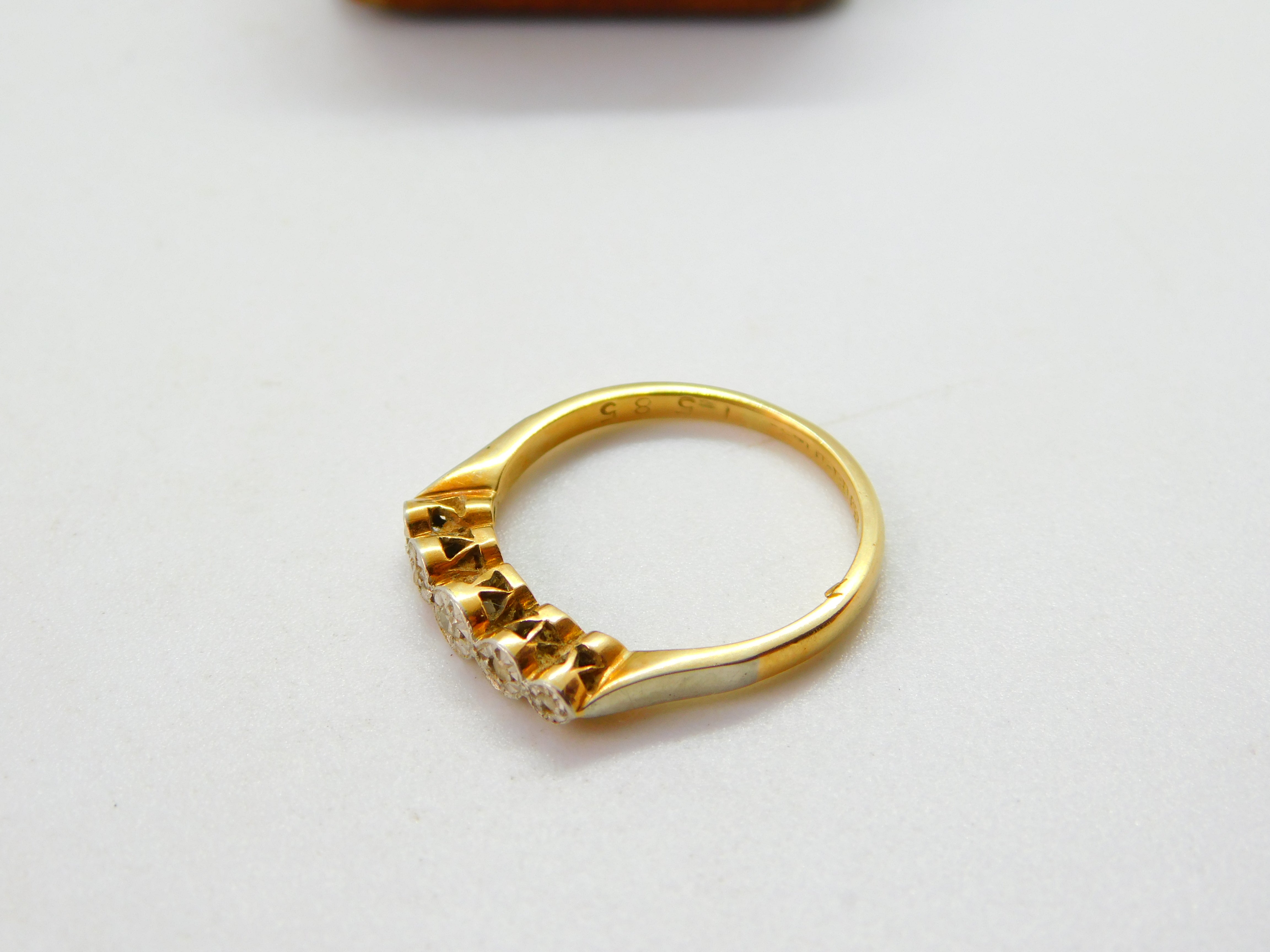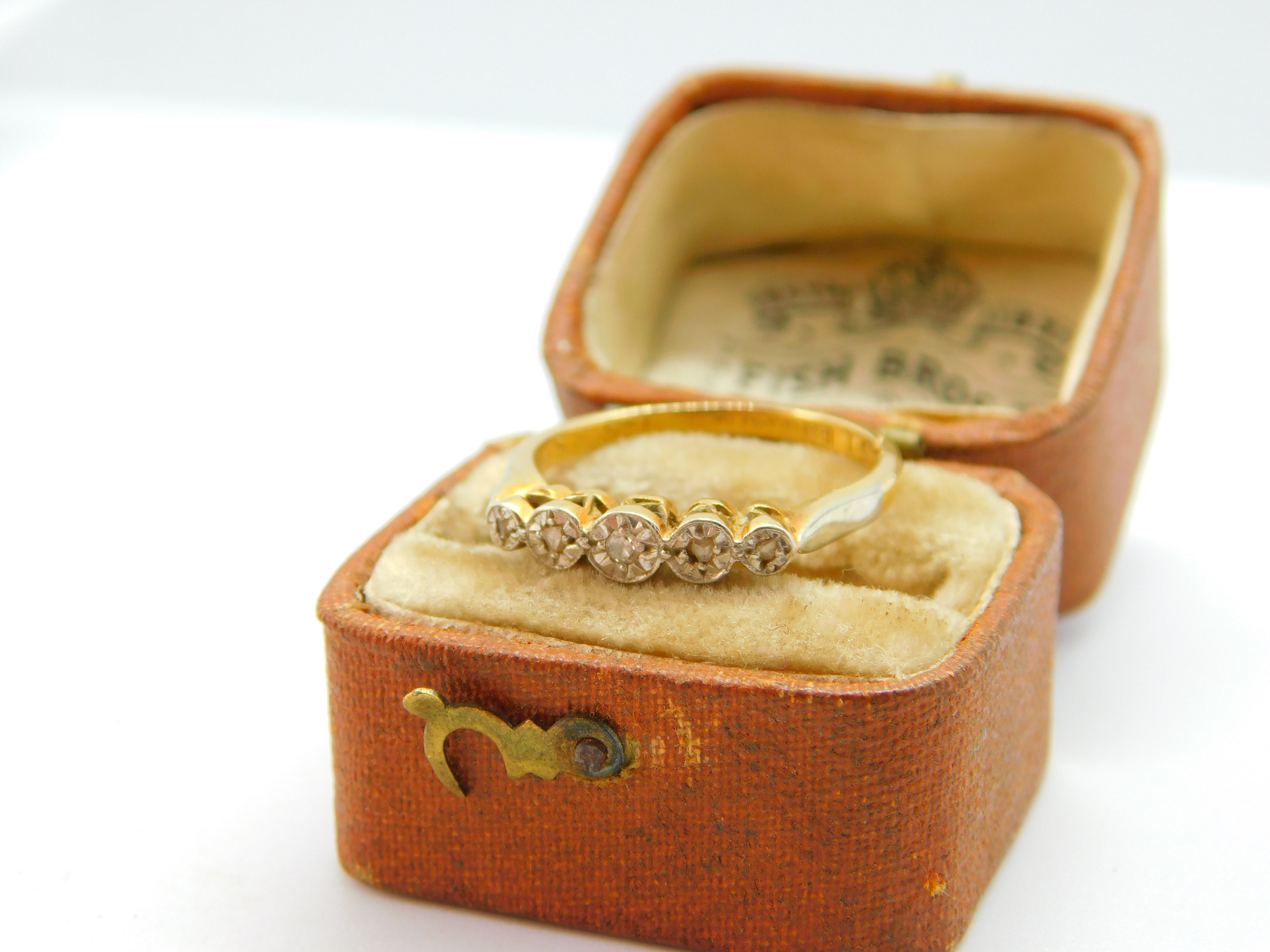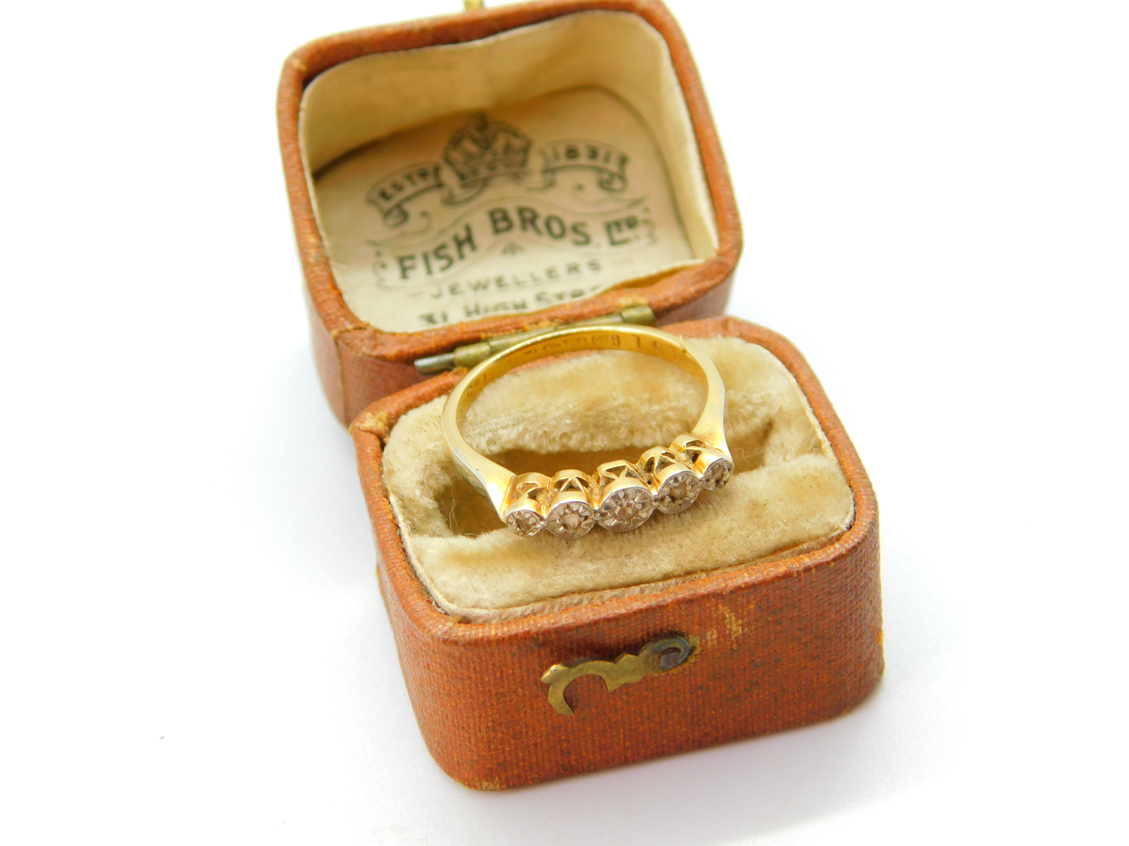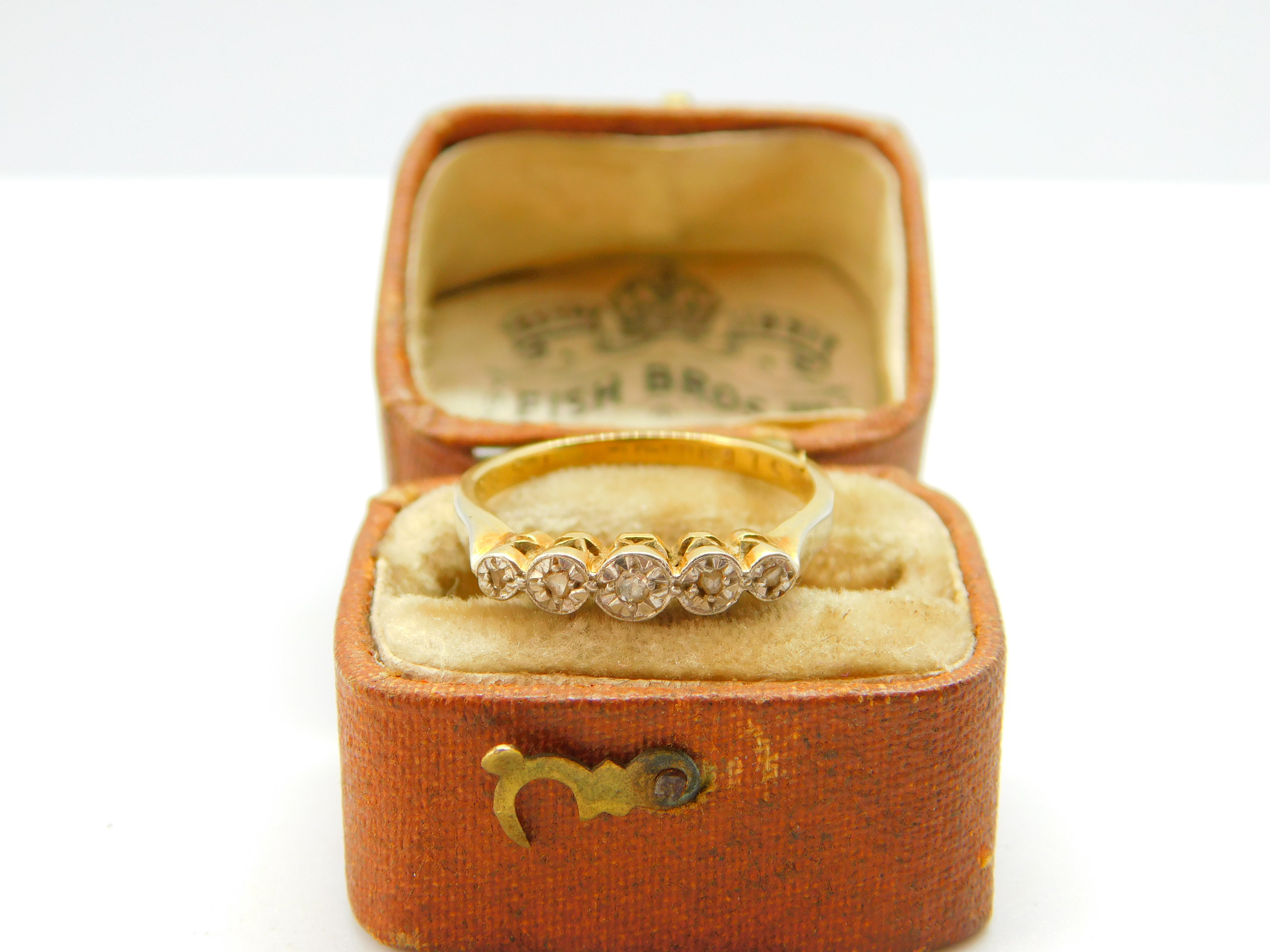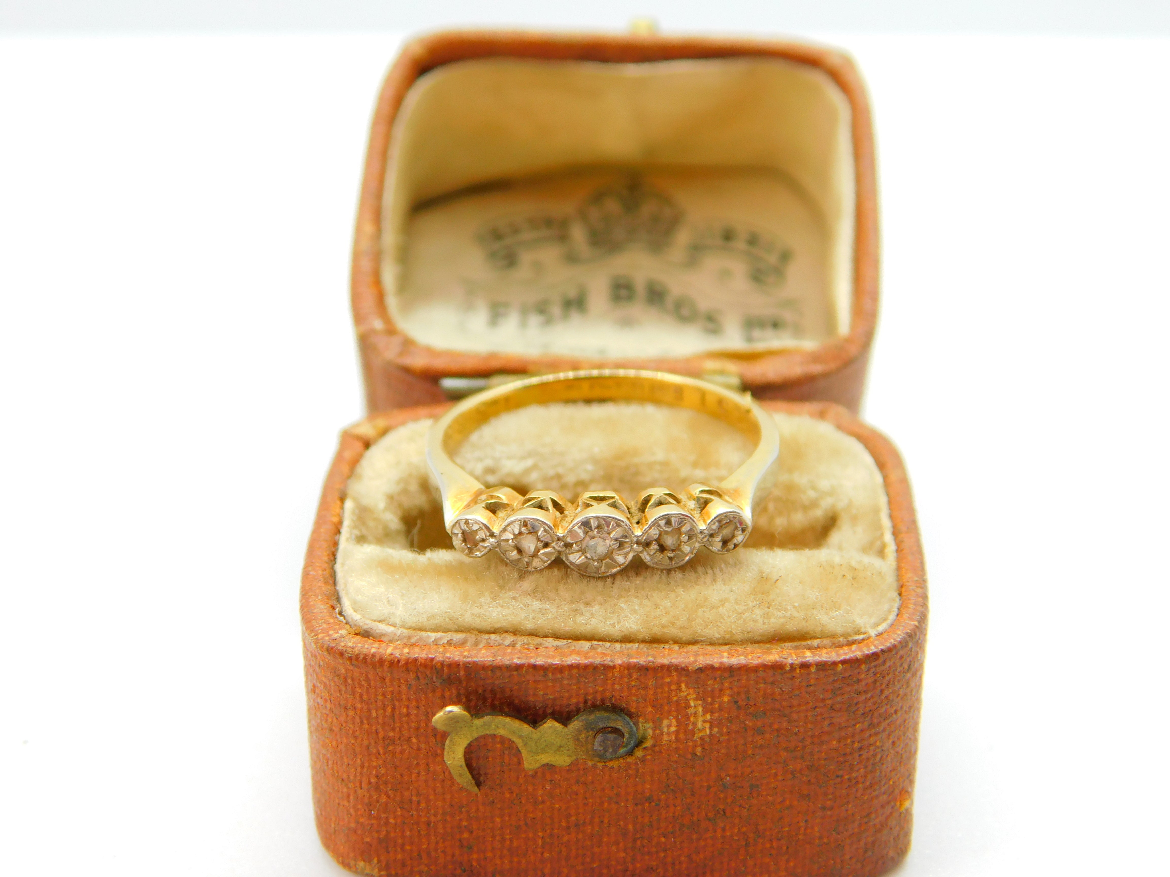 Victorian 18ct Yellow Gold & Five Stone Illusion Set Diamond Ring Antique c1880