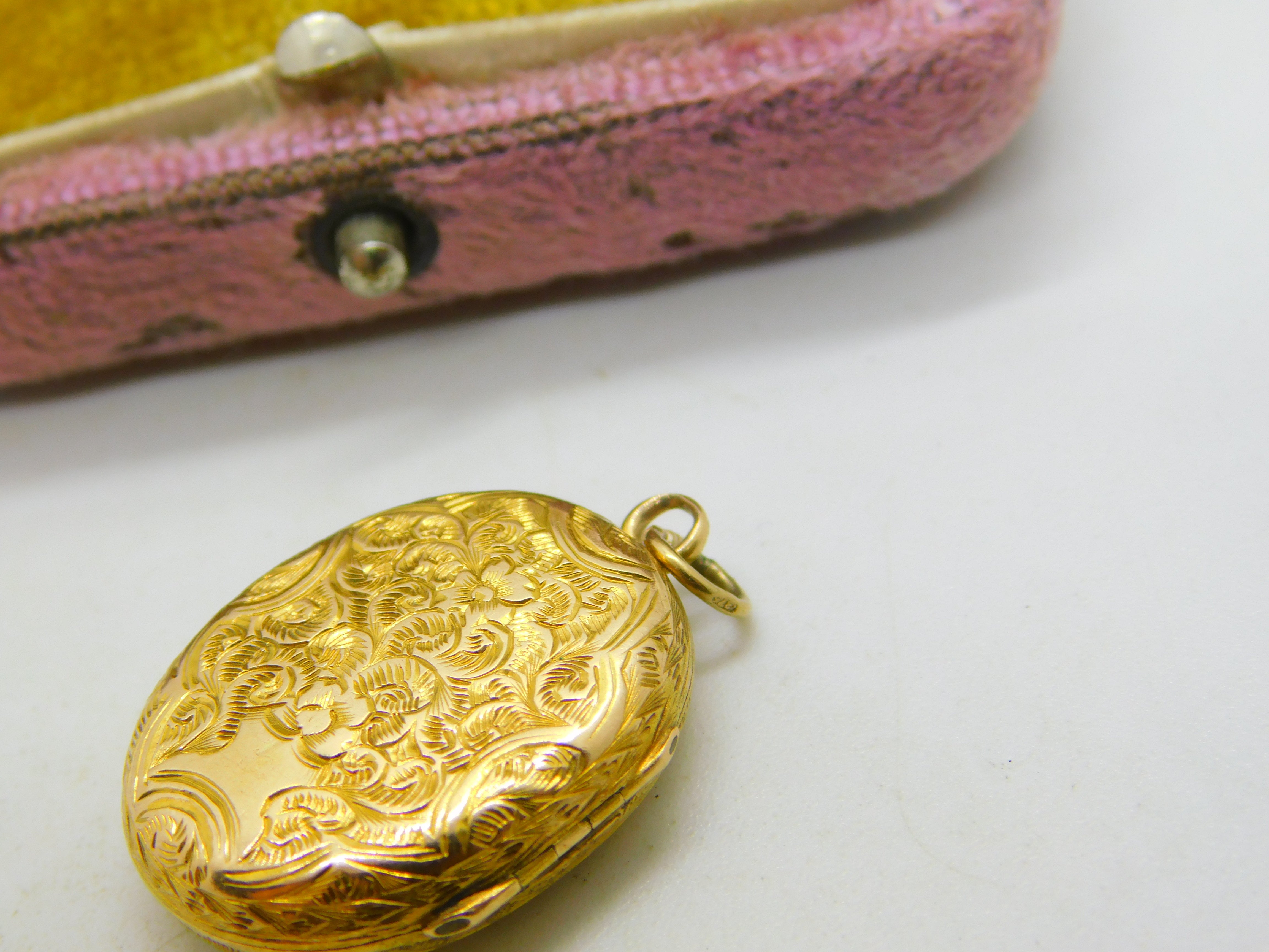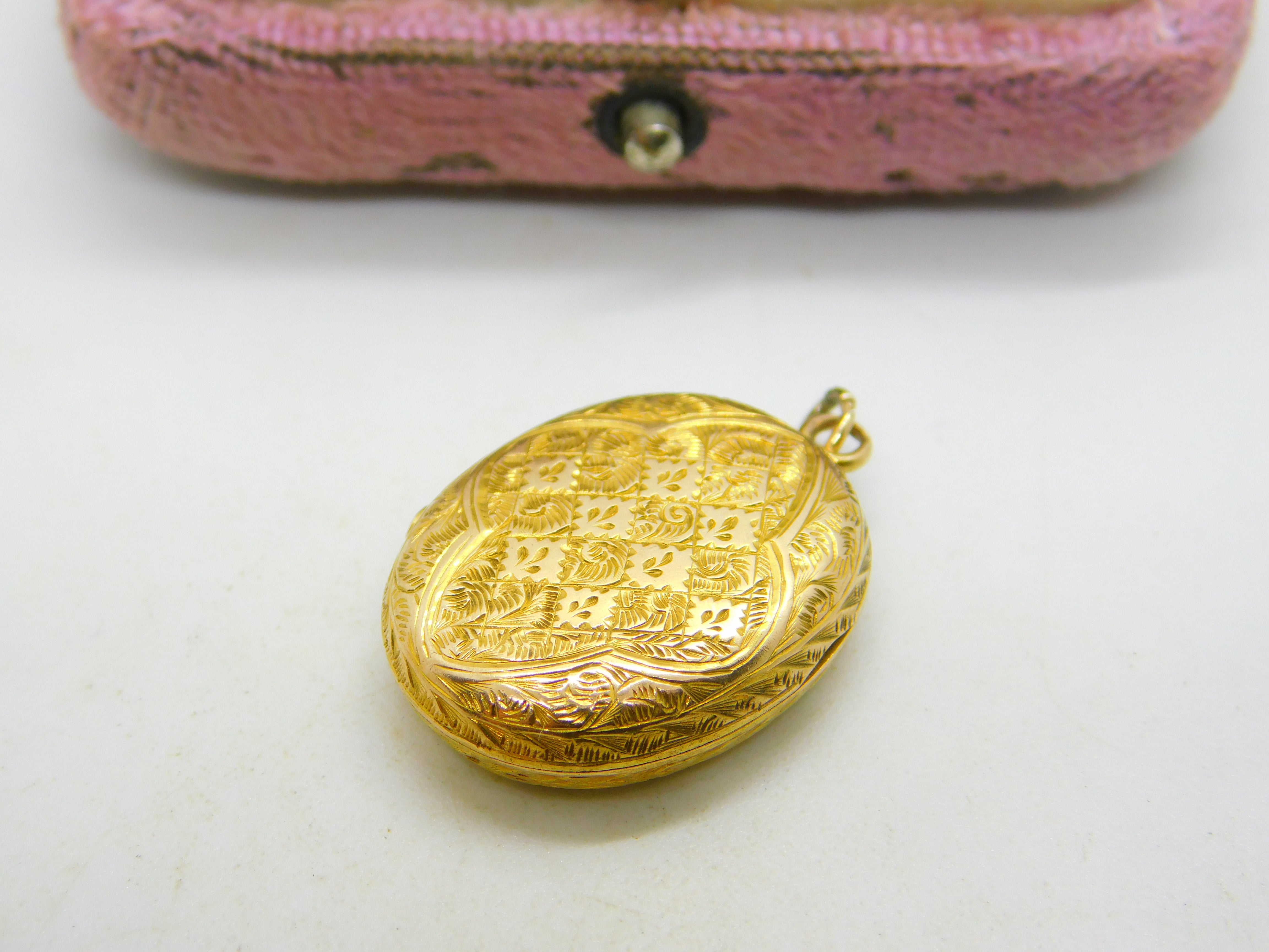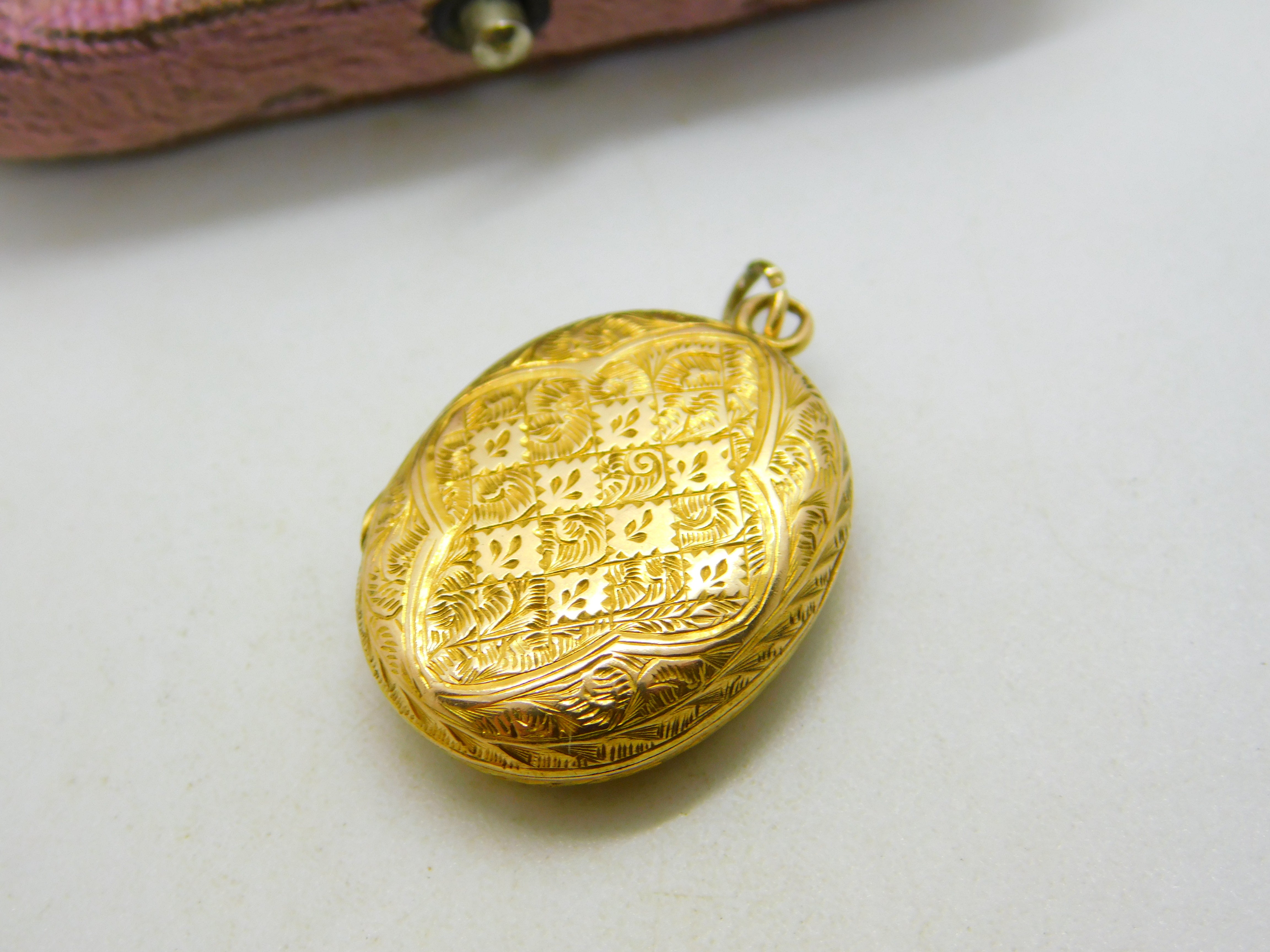 Victorian 18ct Yellow Gold Floral Pattern Sweetheart Locket Antique c1860