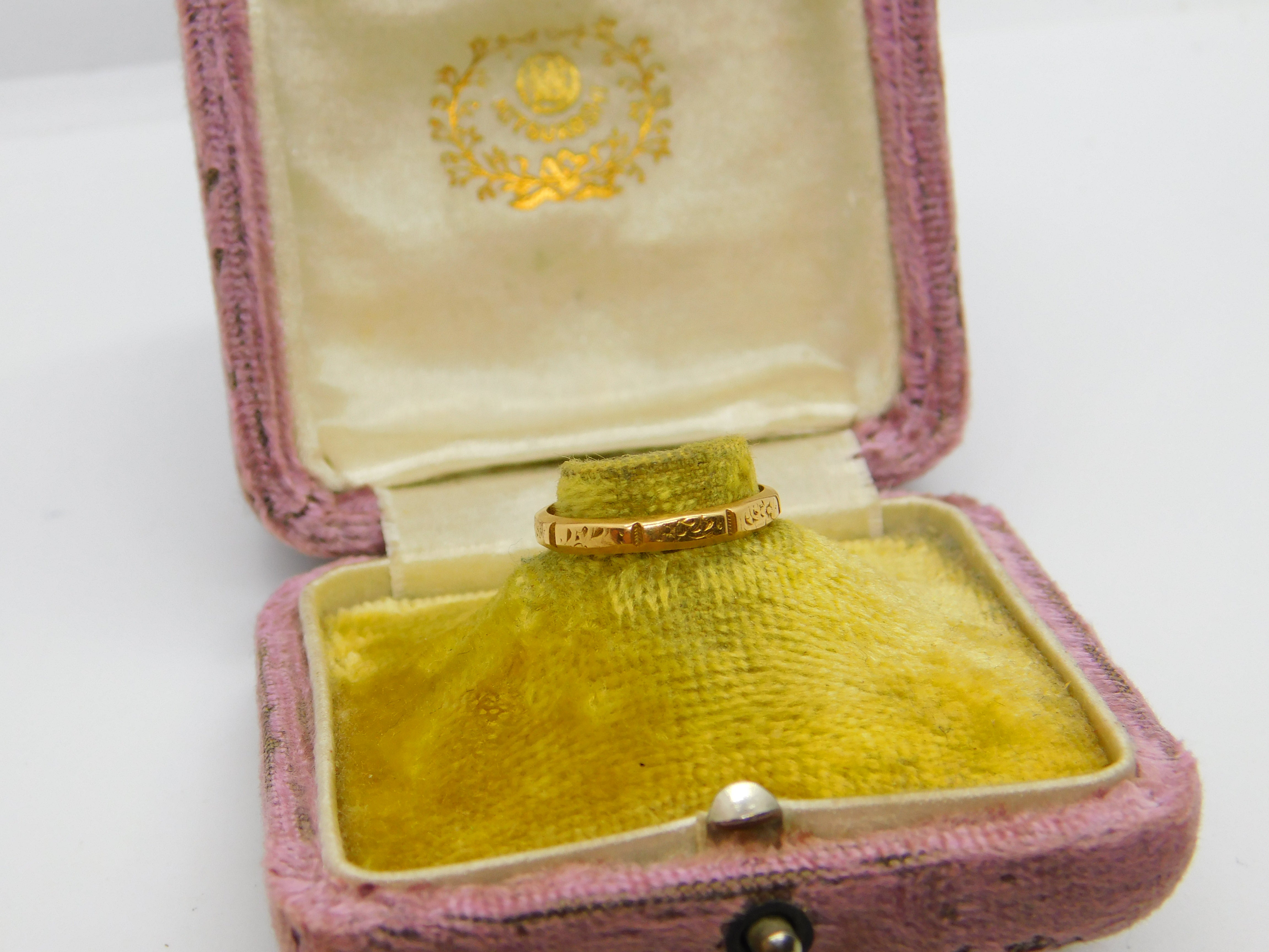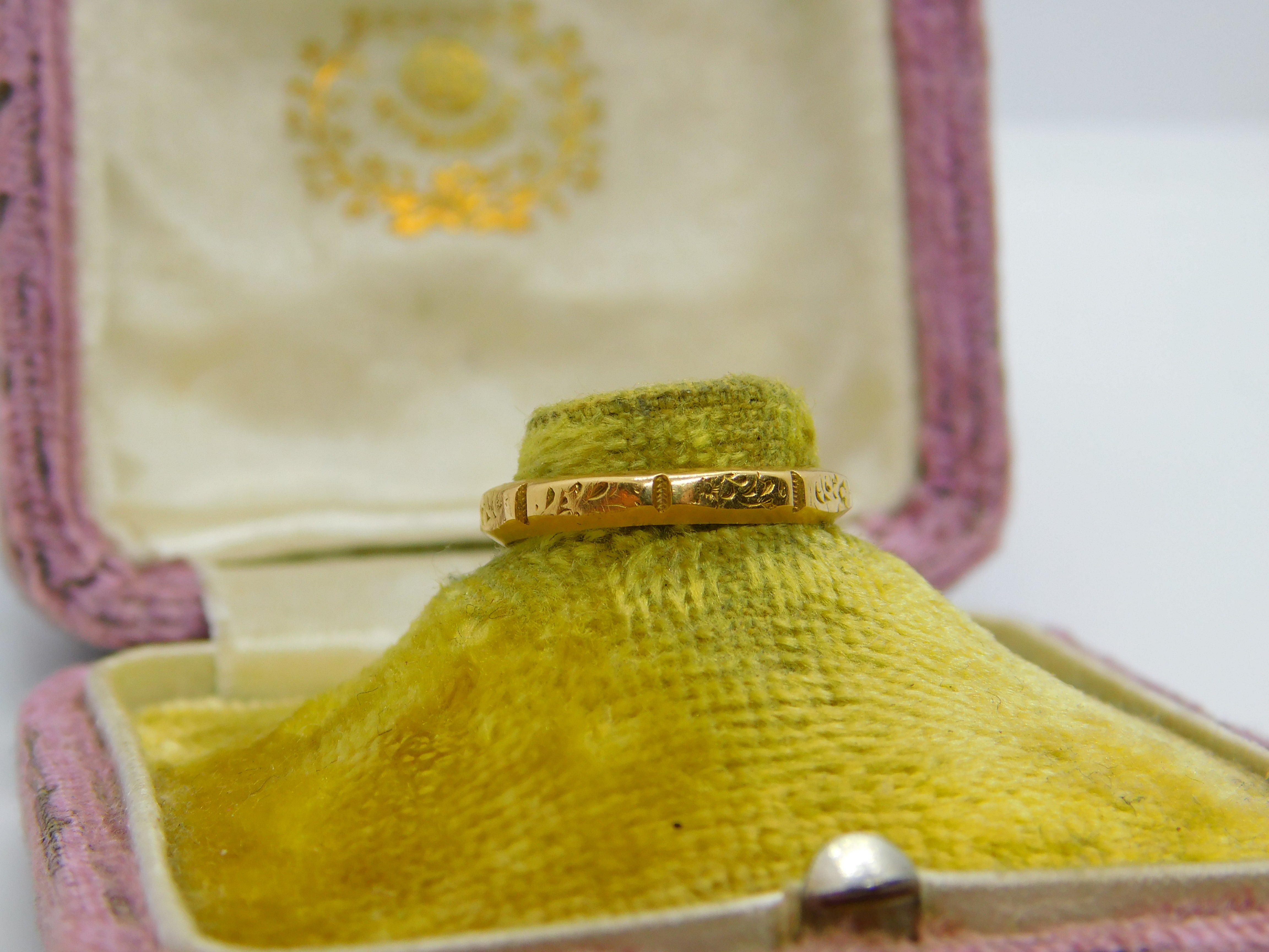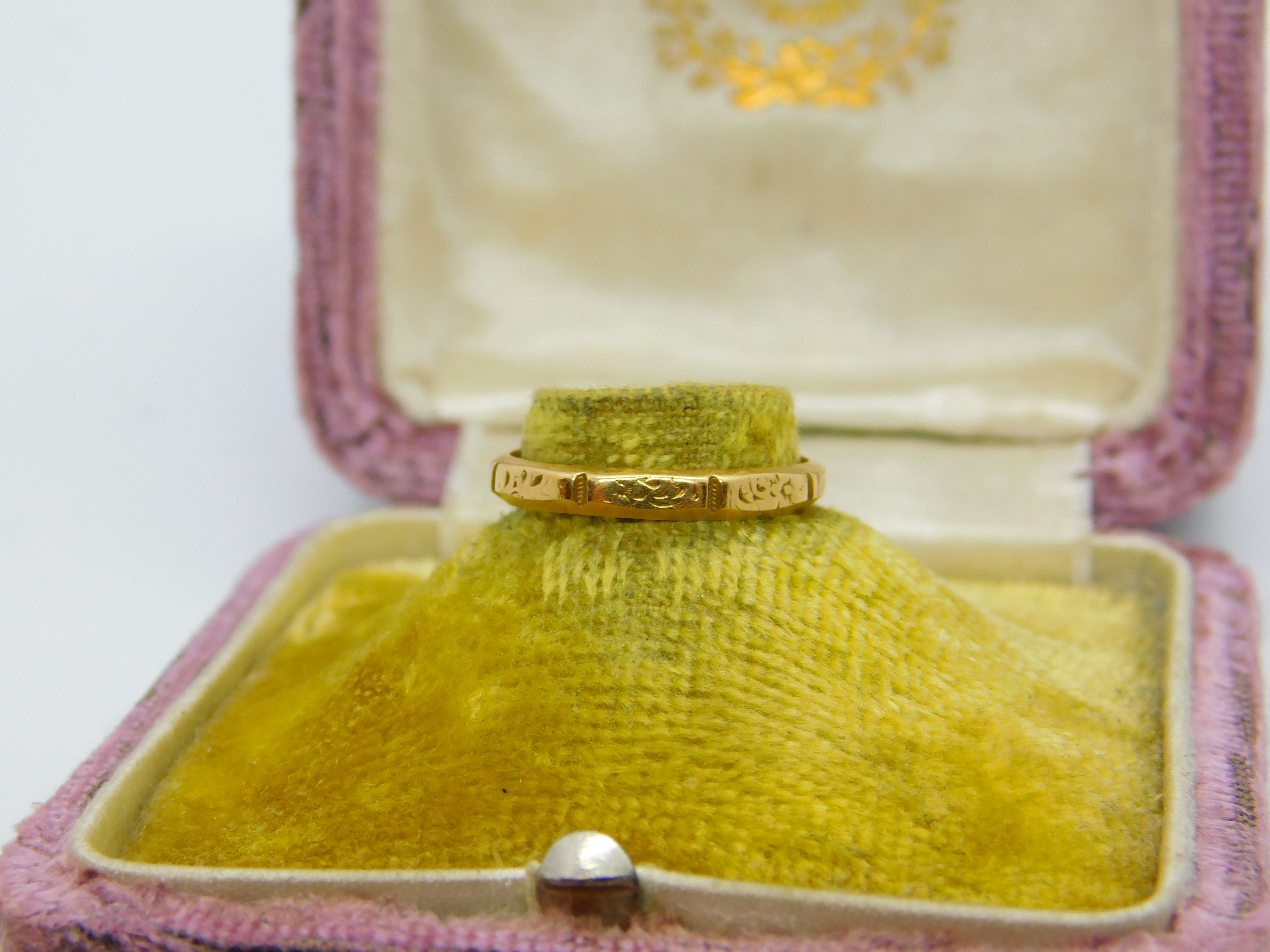 Victorian 18ct Yellow Gold Floral Pattern Wedding Band 1881 Chester Antique