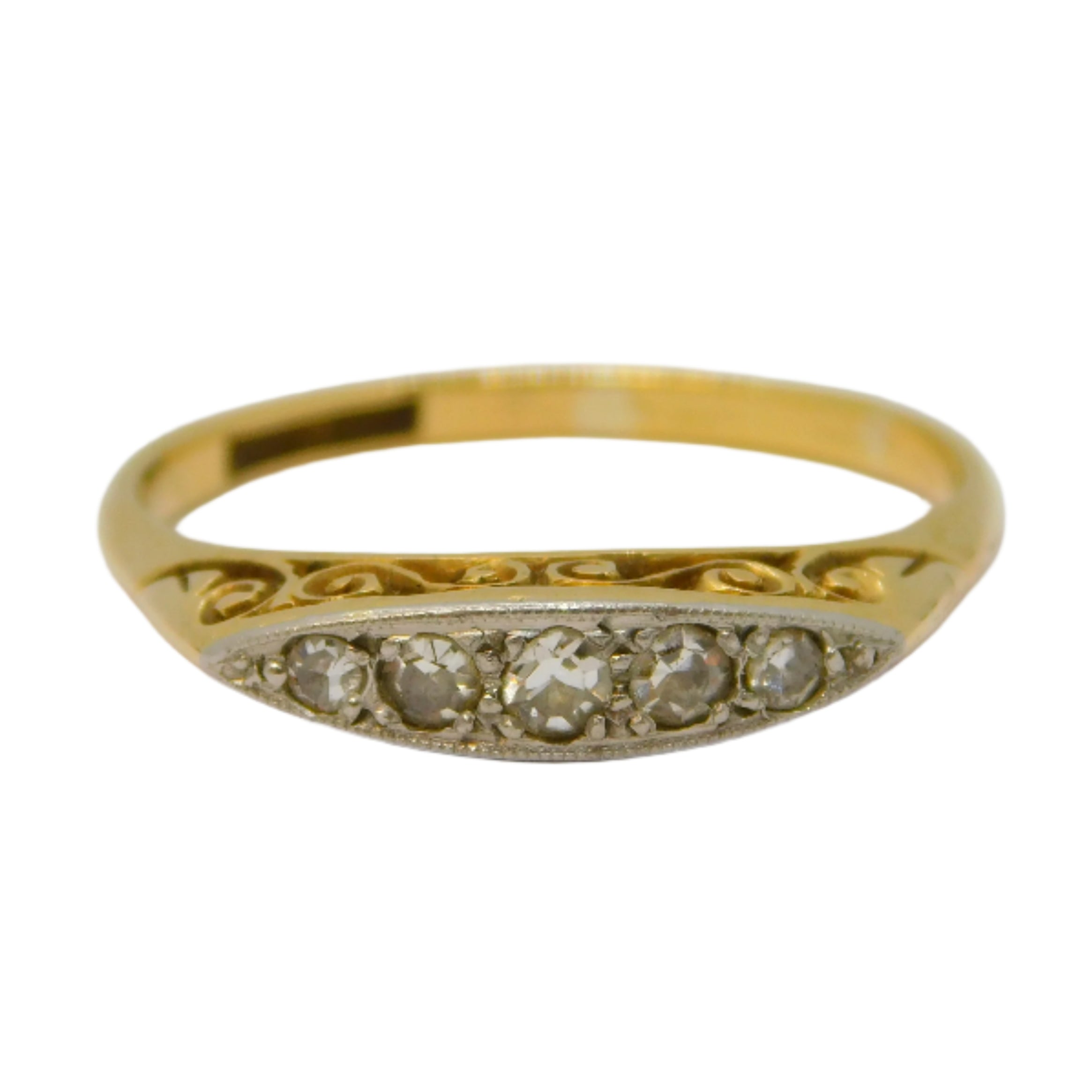 Victorian 18ct Yellow Gold Graduated Five-Stone Boat Ring Antique c1890