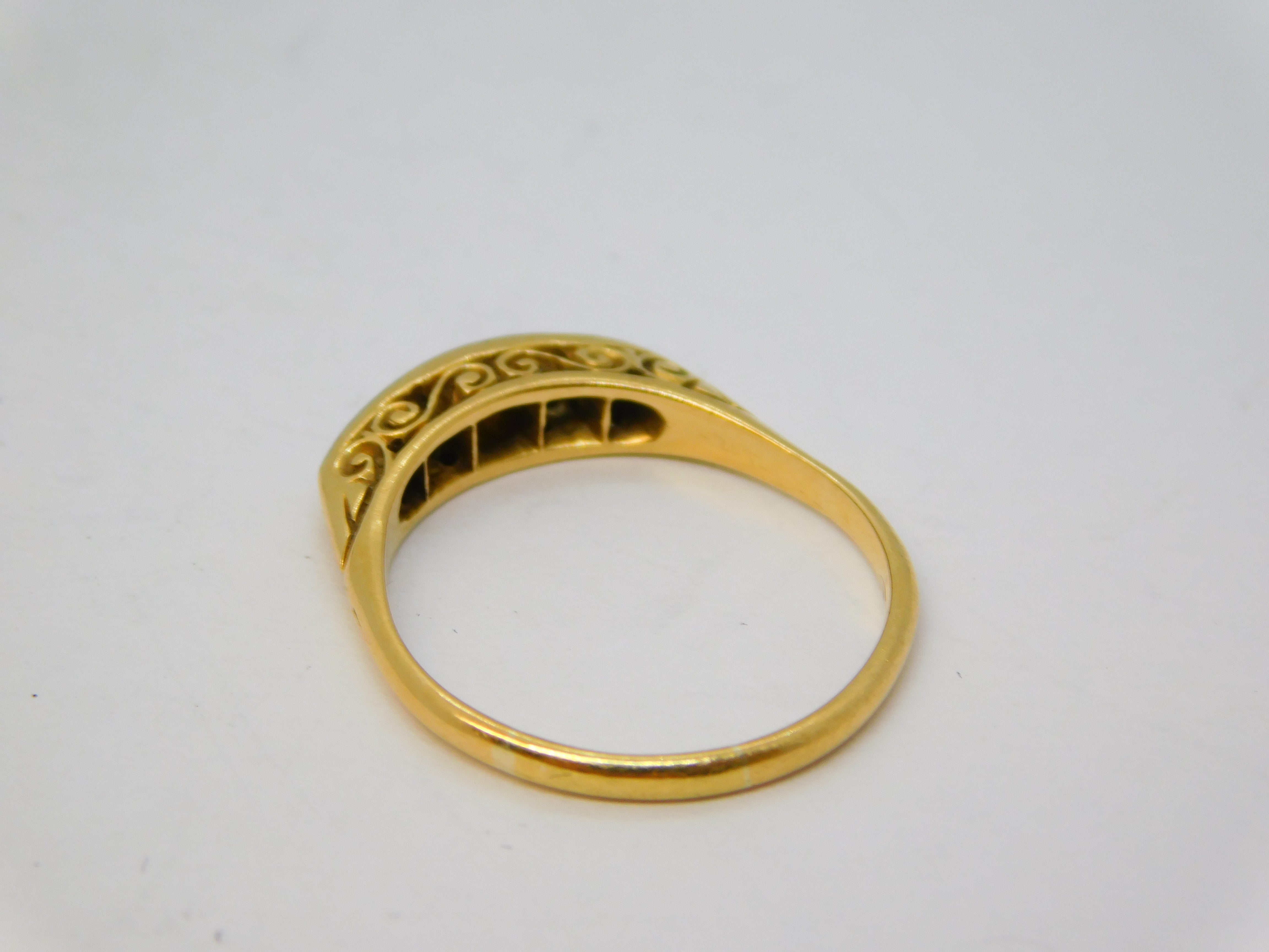 Details: A fantastic and wonderfully designed antique Victorian 18ct yellow gold boat ring set with graduating diamonds hallmarked to the interior c1890, the diamonds have been tested, approximately 0.25ct weight. This is a wonderful item that would make a perfect gift or addition to any collection.