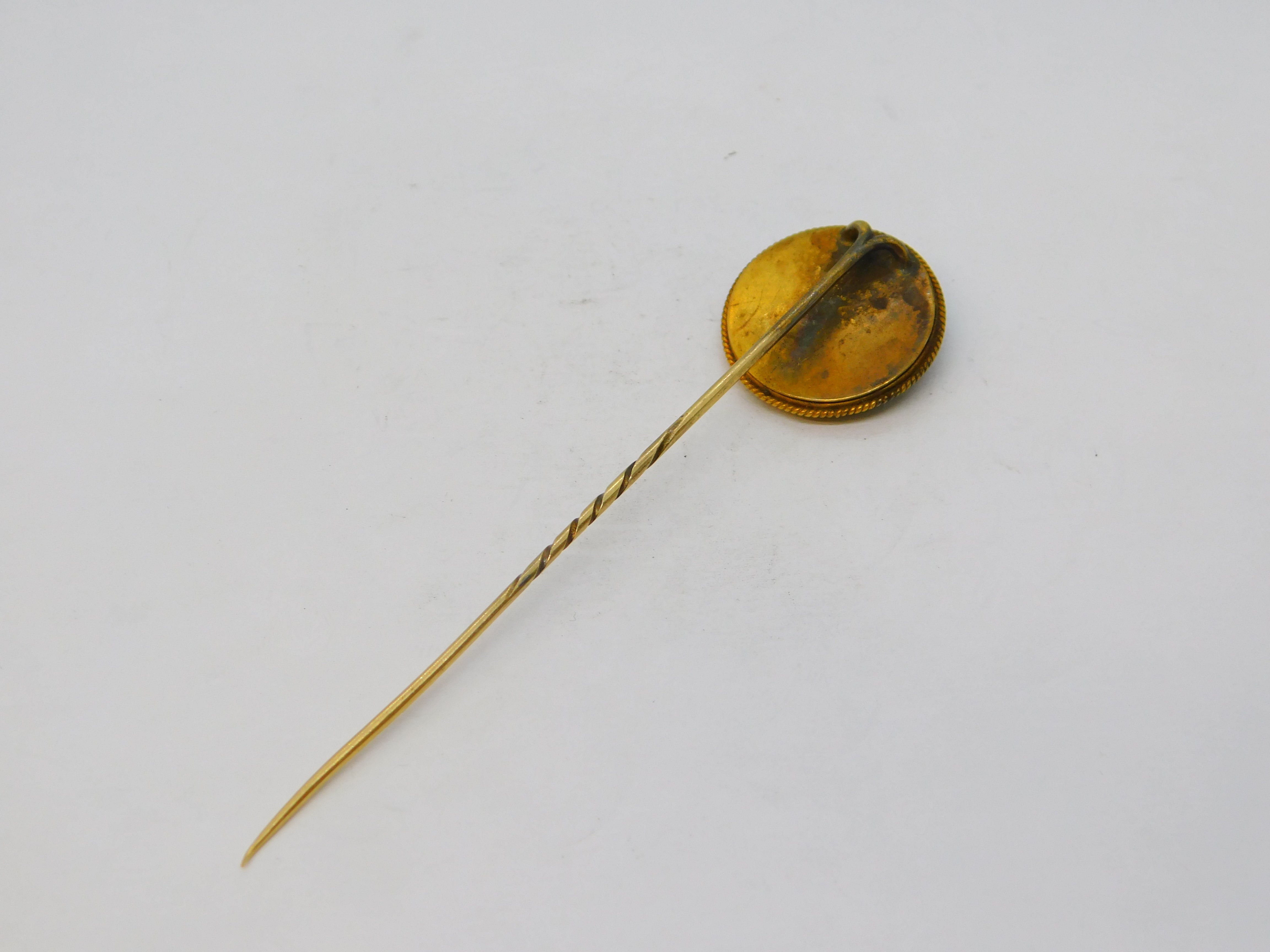 Victorian 18ct Yellow Gold Mounted Enamel Fox Mask Stick Pin Antique c1860