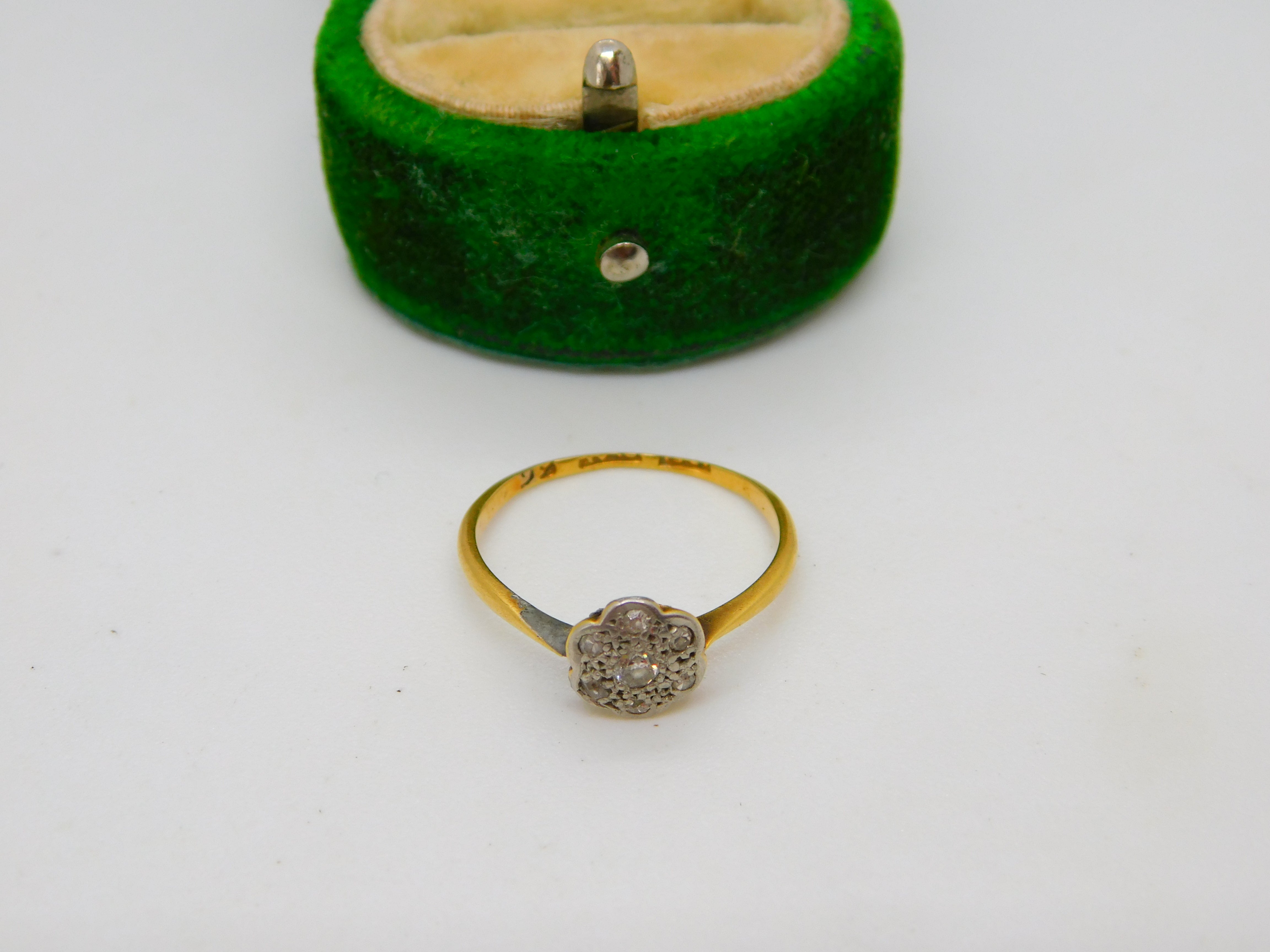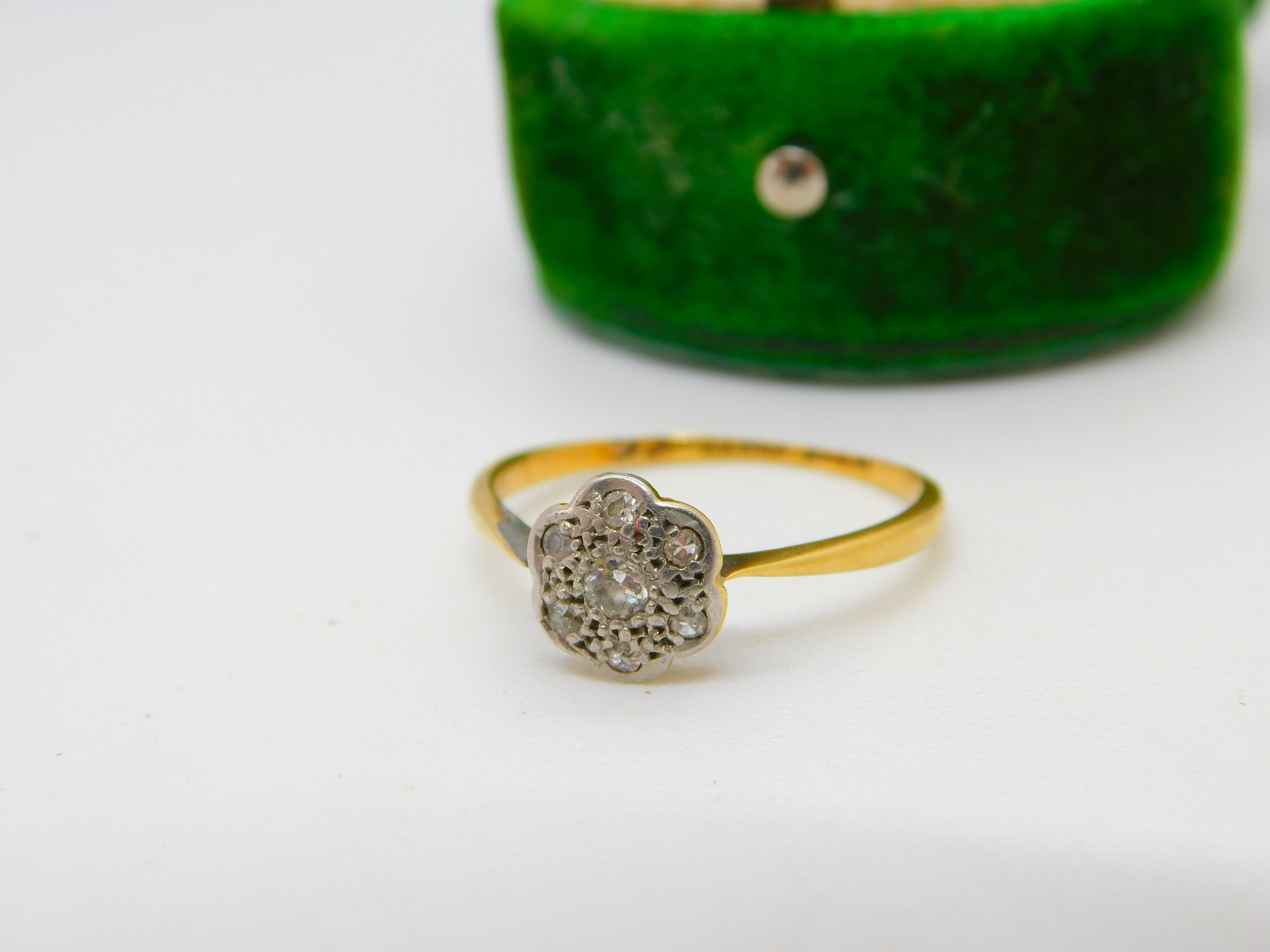 Details: A fantastic and wonderfully designed antique Victorian 18ct yellow gold diamond set daisy cluster ring with lovely detailing hallmarked to the interior c1880. Solder repair to the right shoulder please study pictures. The diamonds have all been tested. This is a wonderful item that would make a perfect gift or addition to any collection. The BOX pictured is for PRESENTATION ONLY and is NOT included in the listings but used to frame the pictures unless specifically stated otherwise.