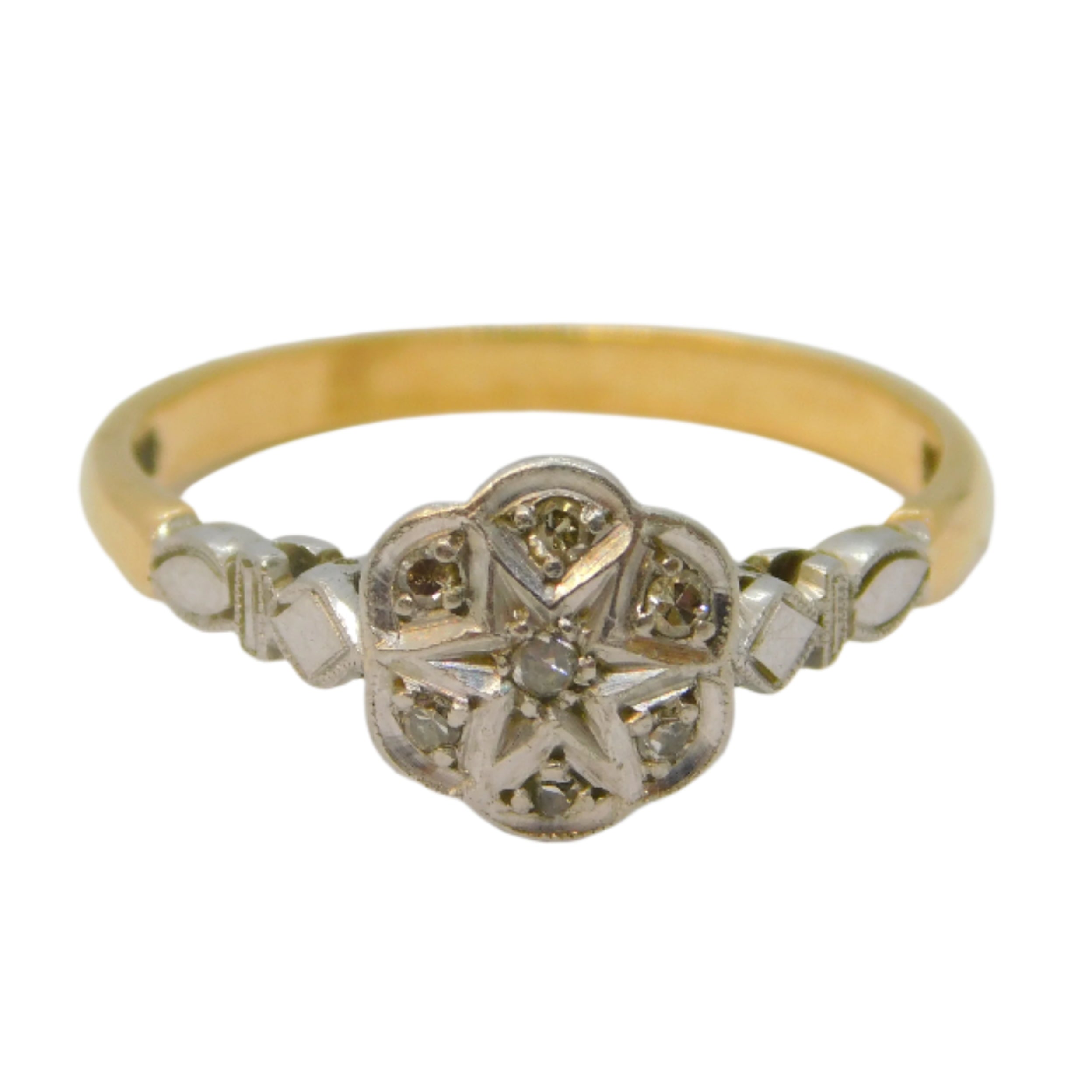 Victorian 18ct Yellow Gold Old-Cut Diamond Set Starburst Ring Antique c1890