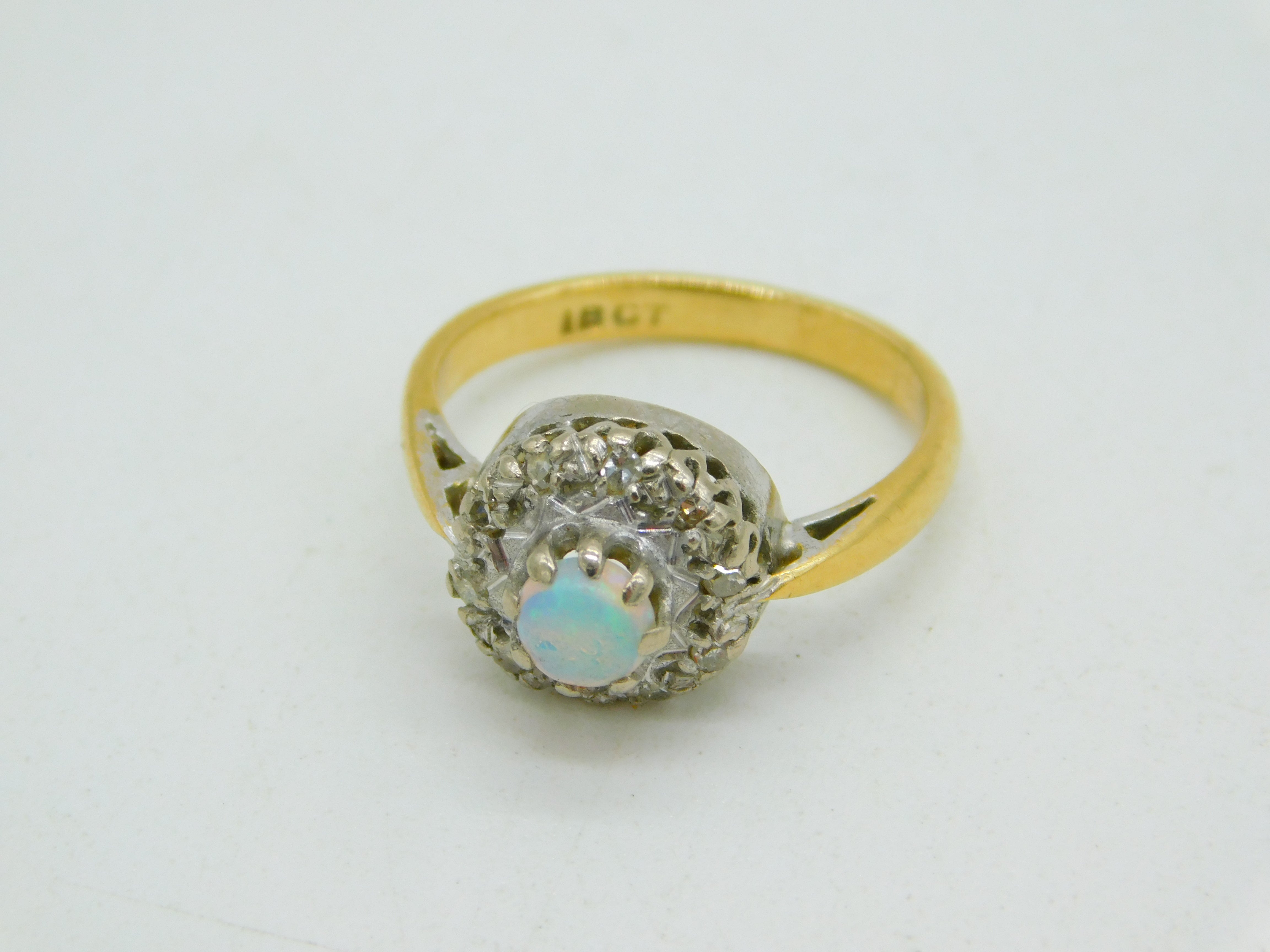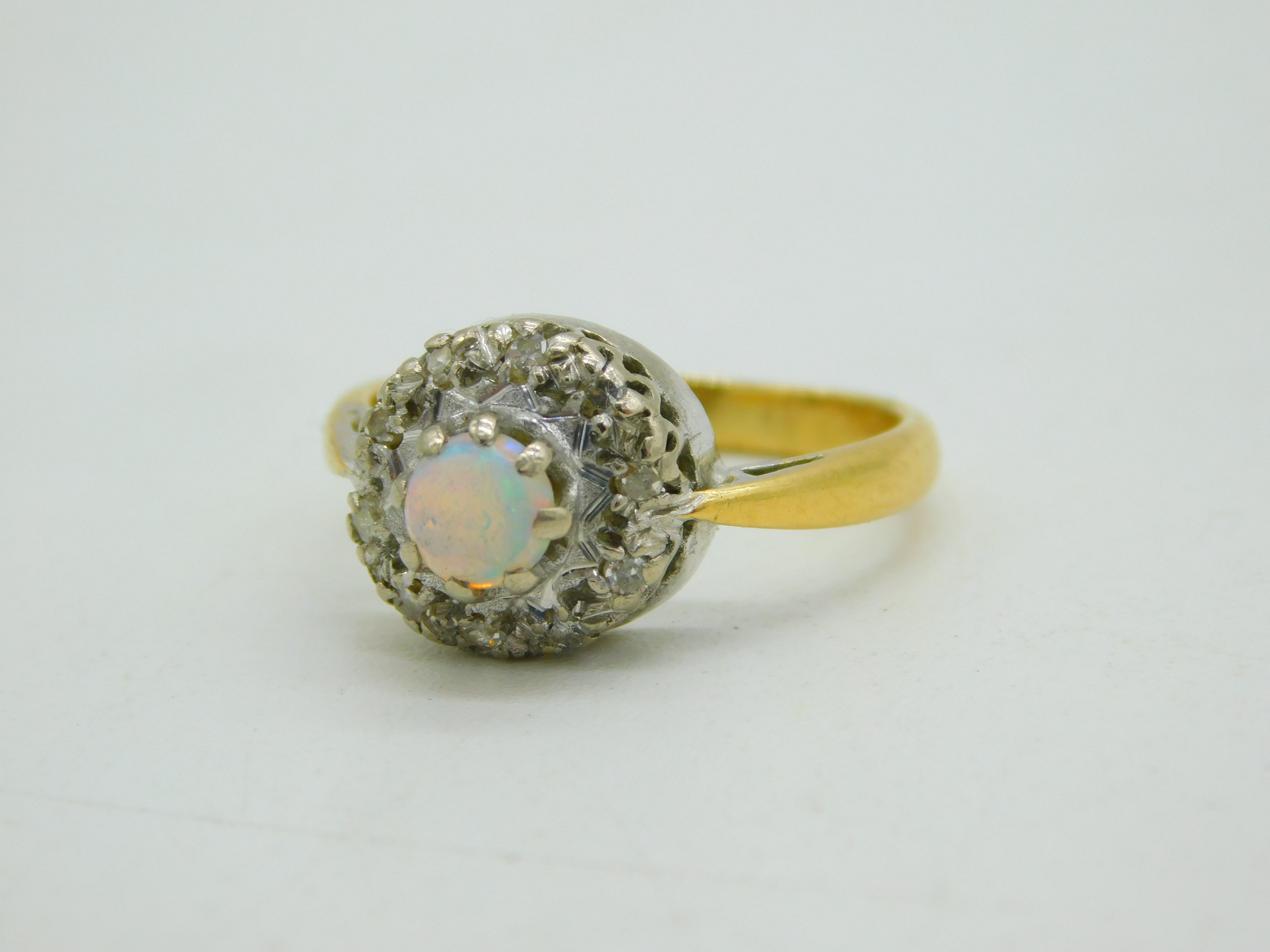 Victorian 18ct Yellow Gold, Opal & Diamond Floral Cluster Ring Antique c1890