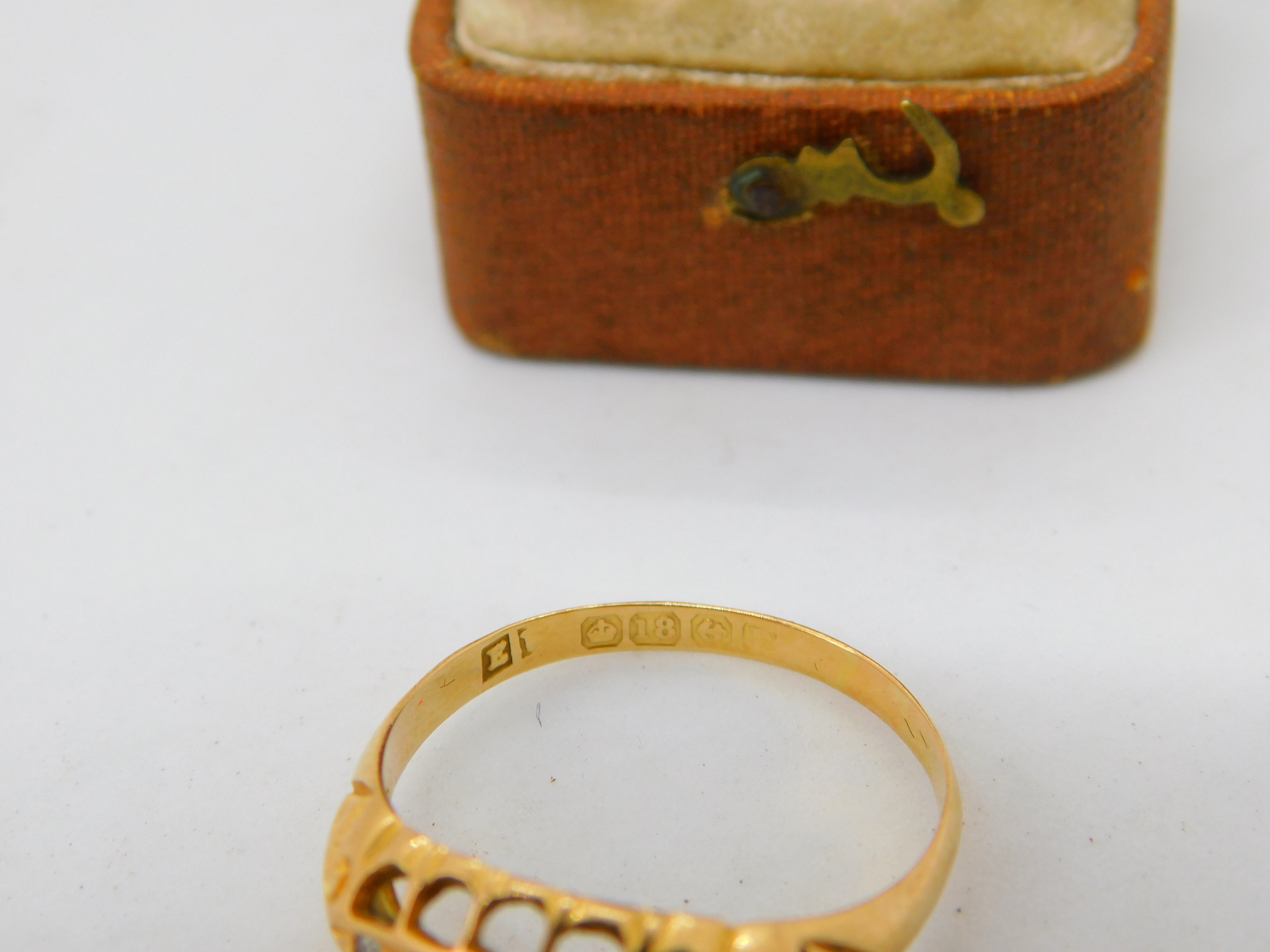 Victorian 18ct Yellow Gold, Sapphire & Diamond Boat Ring Antique 1864 Birmingham