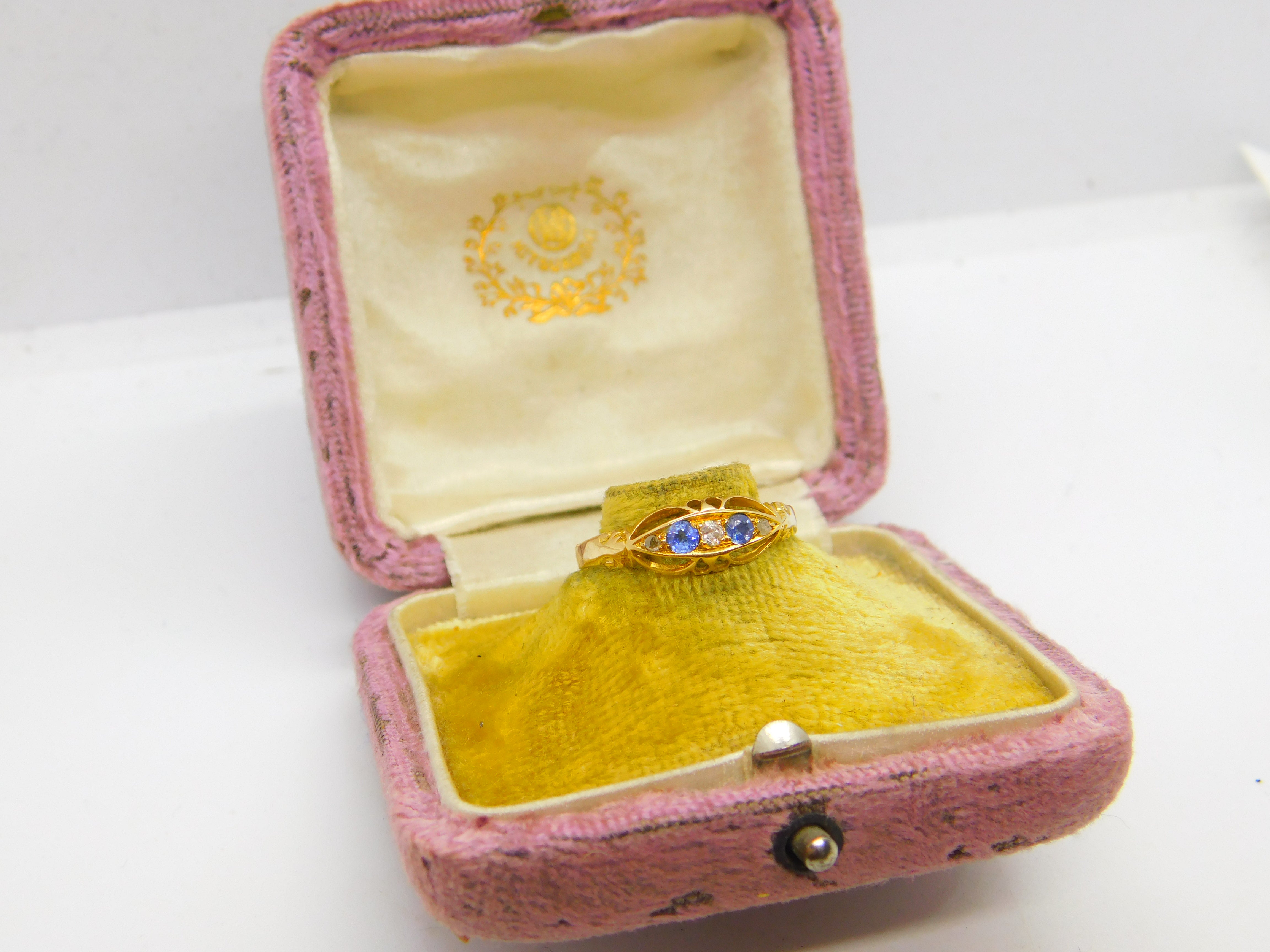 Victorian 18ct Yellow Gold, Sapphire & Diamond Boat Ring Antique c1890
