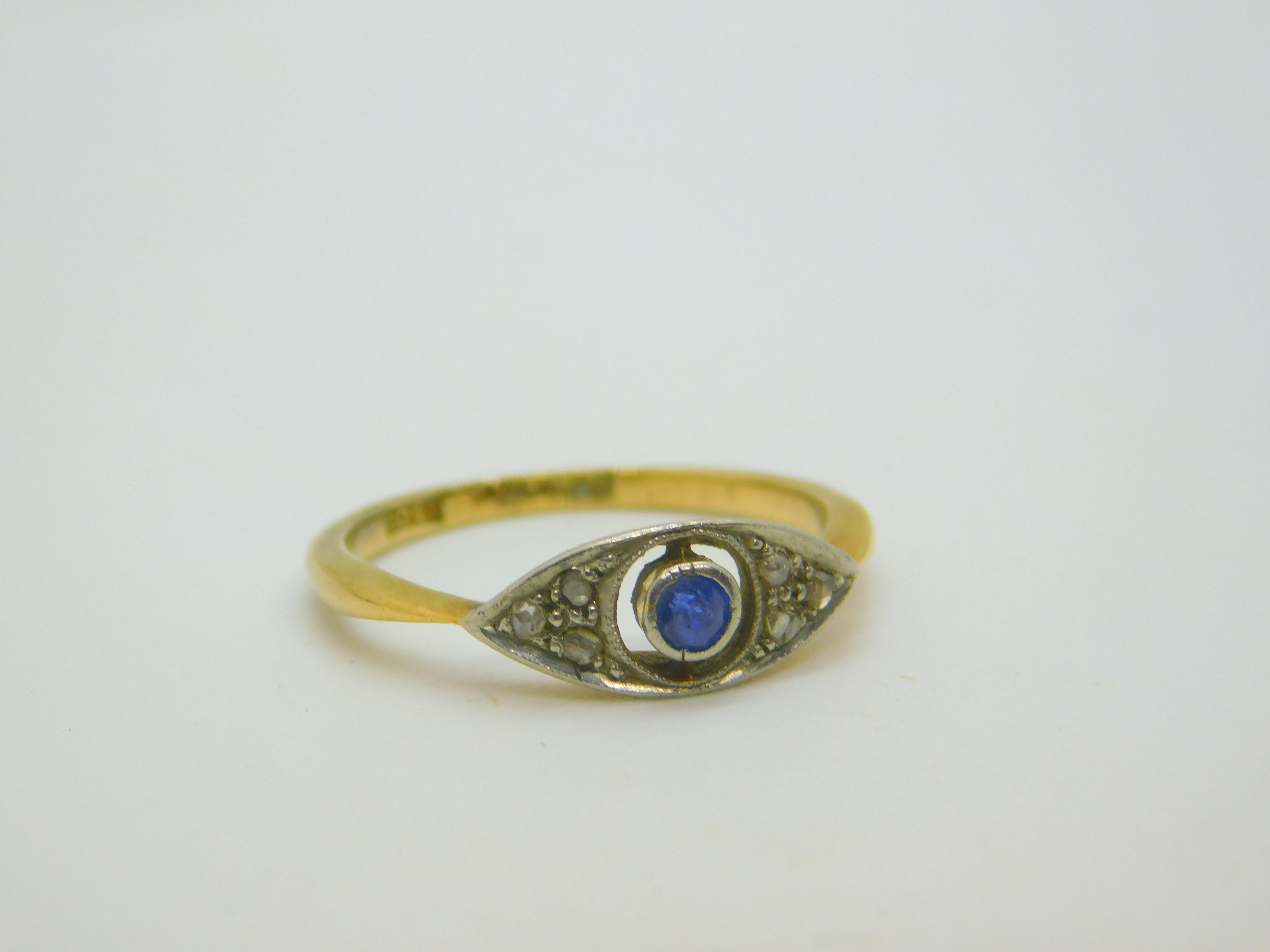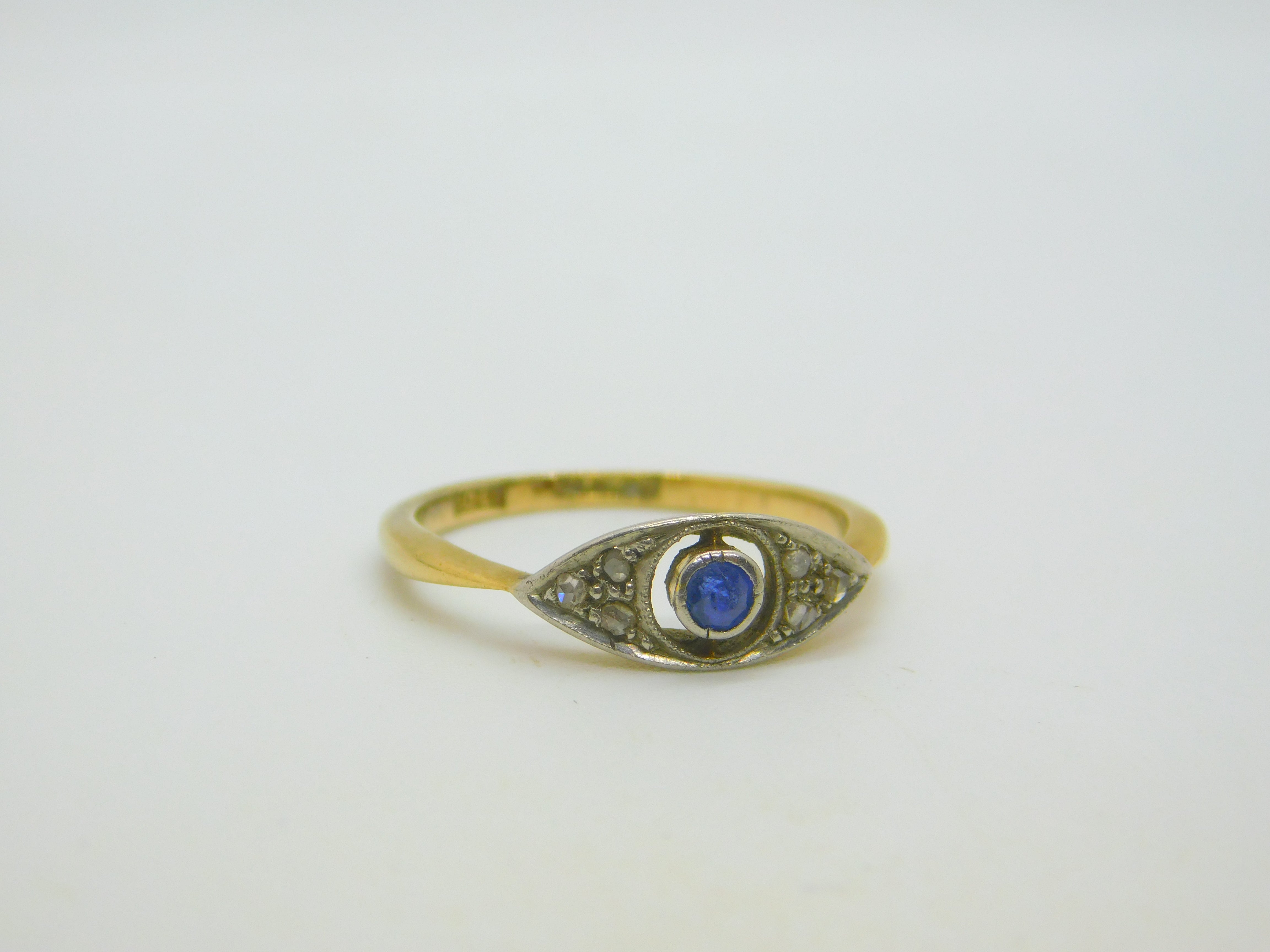Details: A fantastic and wonderfully designed antique Victorian 18ct yellow gold dress ring set with central sapphire flanked with small diamonds hallmarked to the interior c1890, the stones have been tested. This is a wonderful item that would make a perfect gift or addition to any collection. The BOX pictured is for PRESENTATION ONLY and is NOT included in the listings but used to frame the pictures unless specifically stated otherwise.