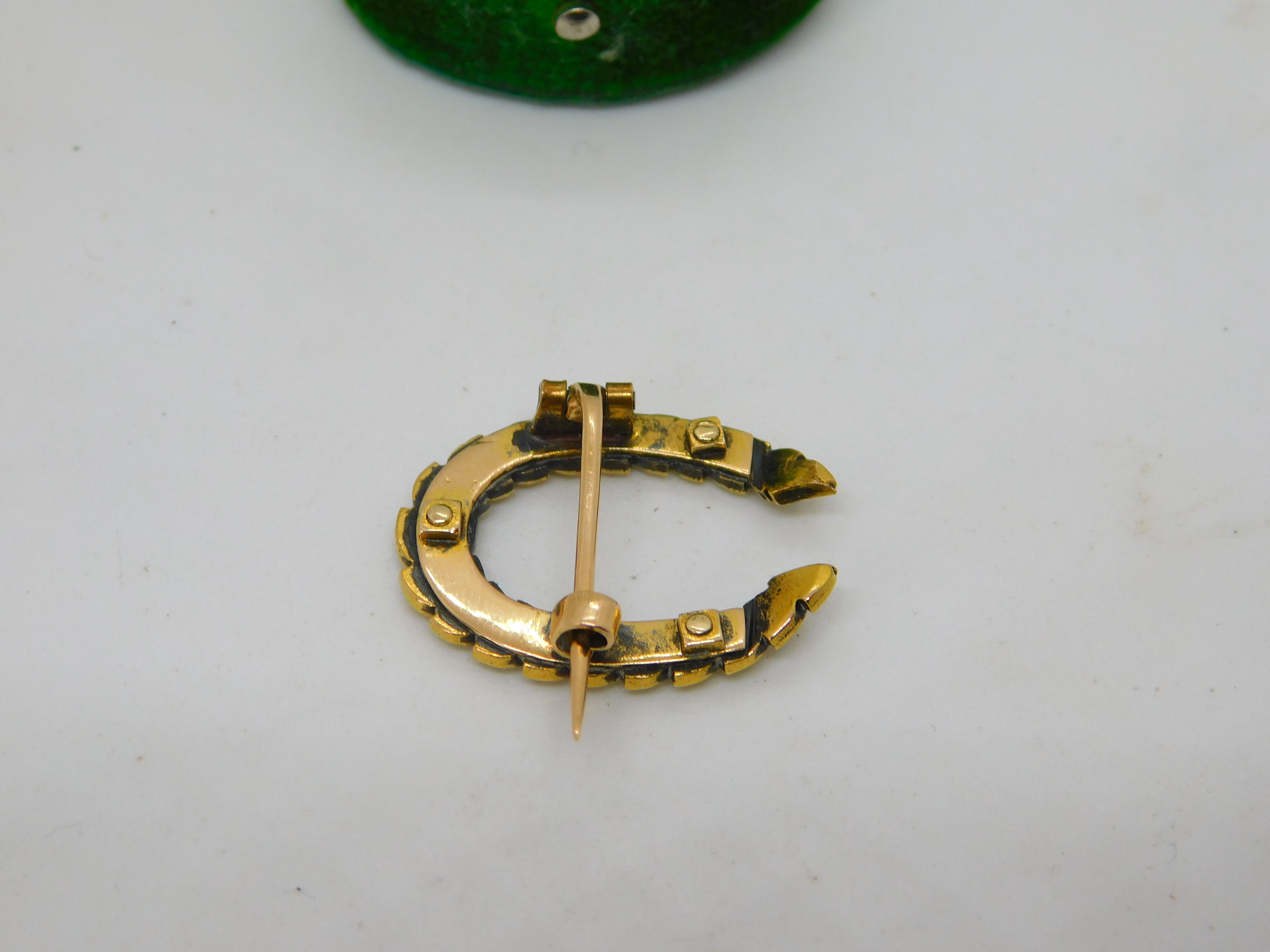 Victorian 18ct Yellow Gold & Seed Pearl Set Horseshoe Brooch Antique c1860