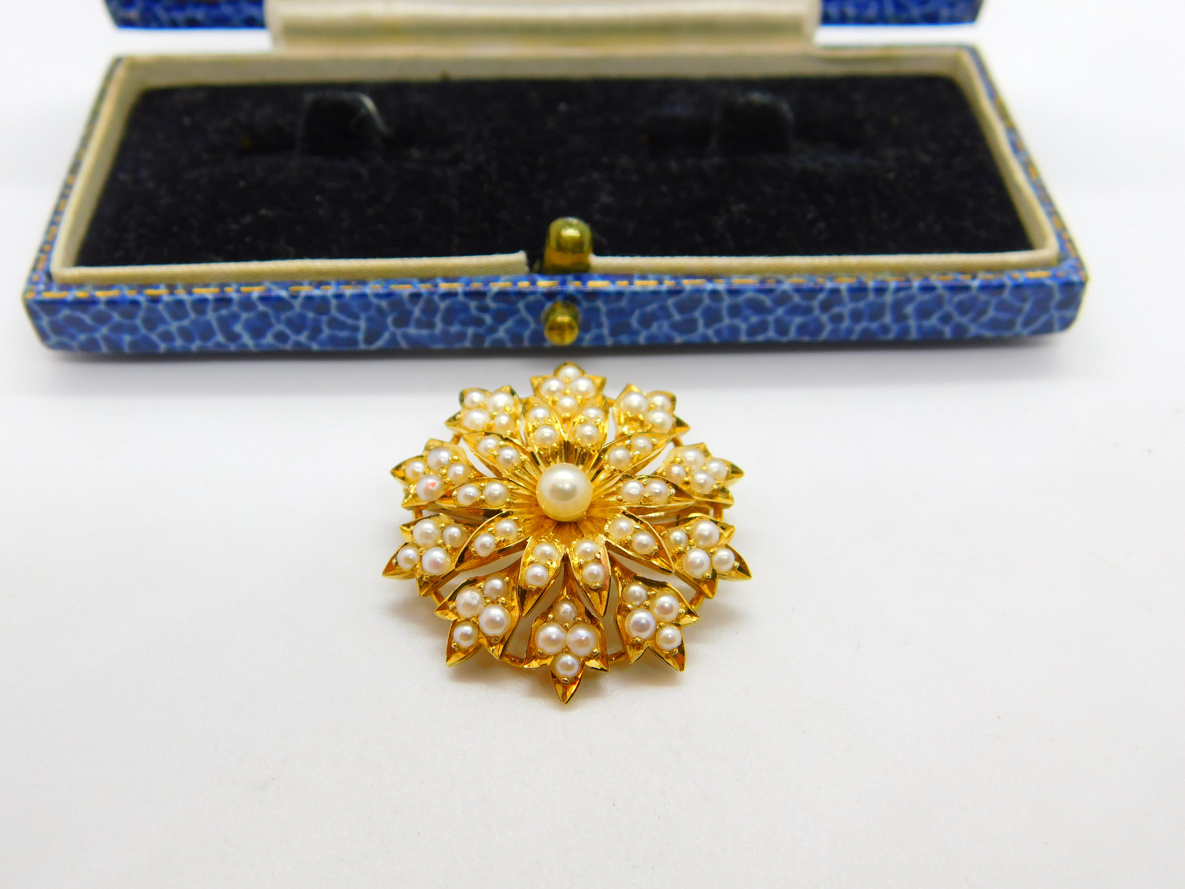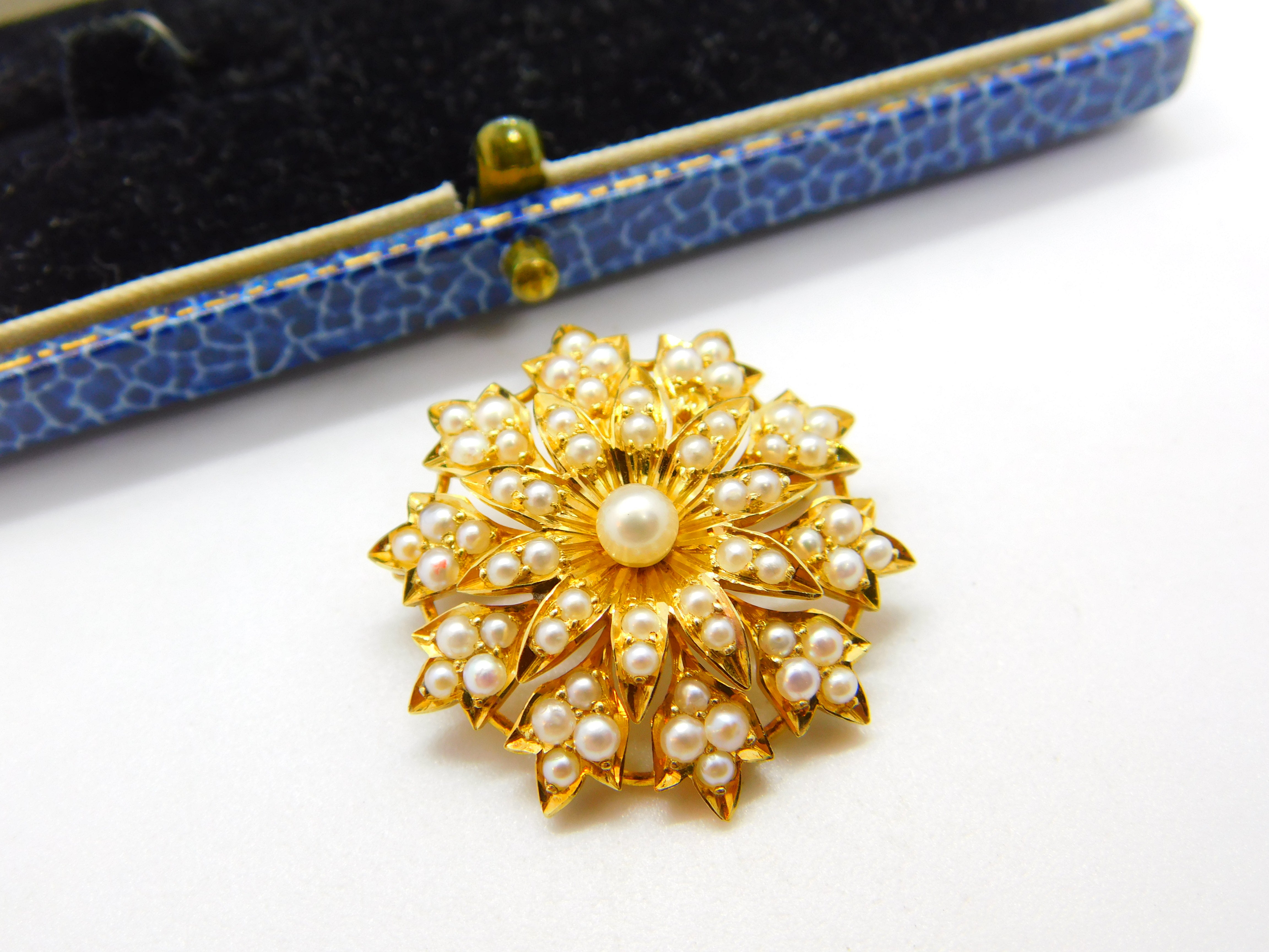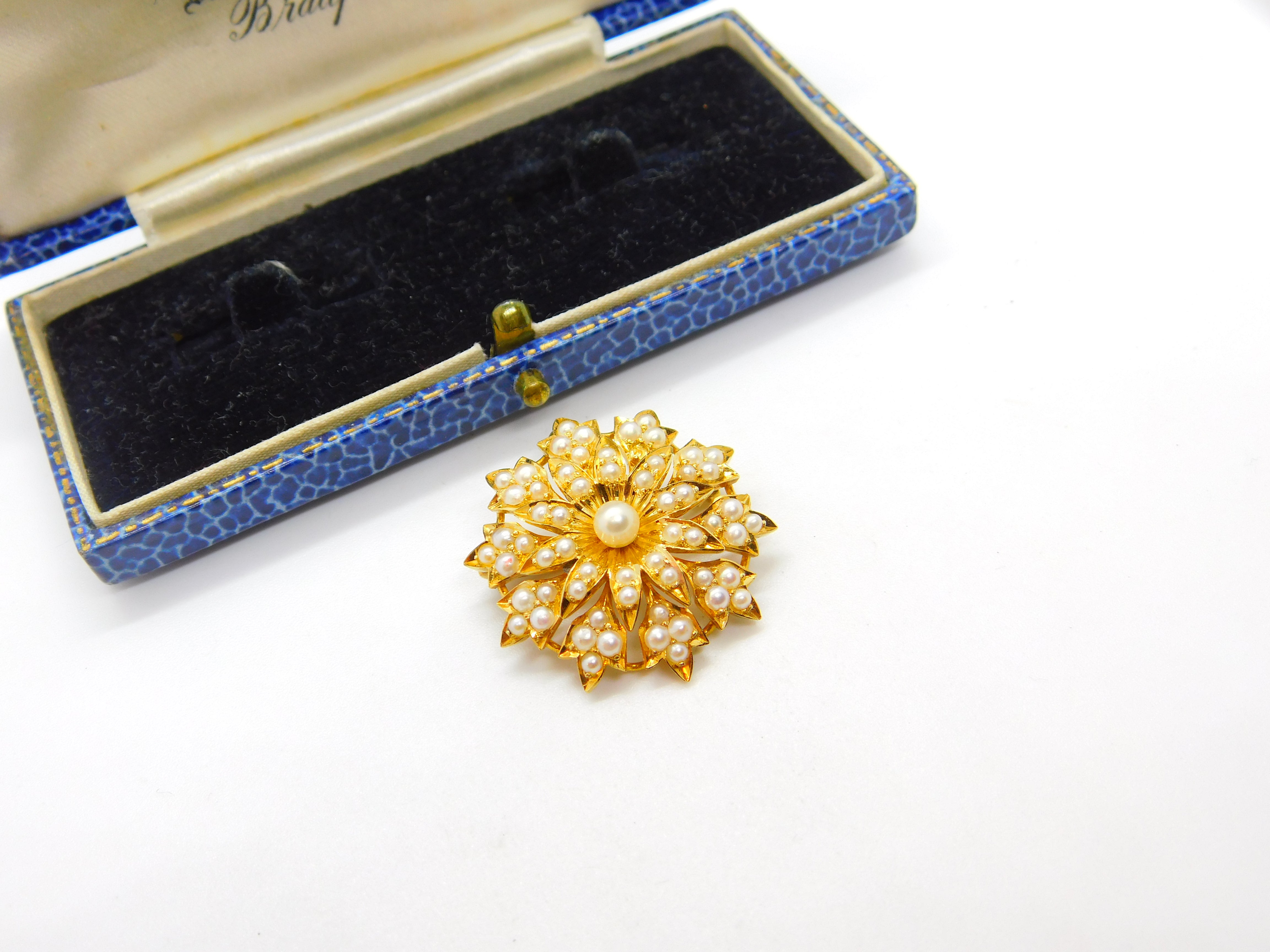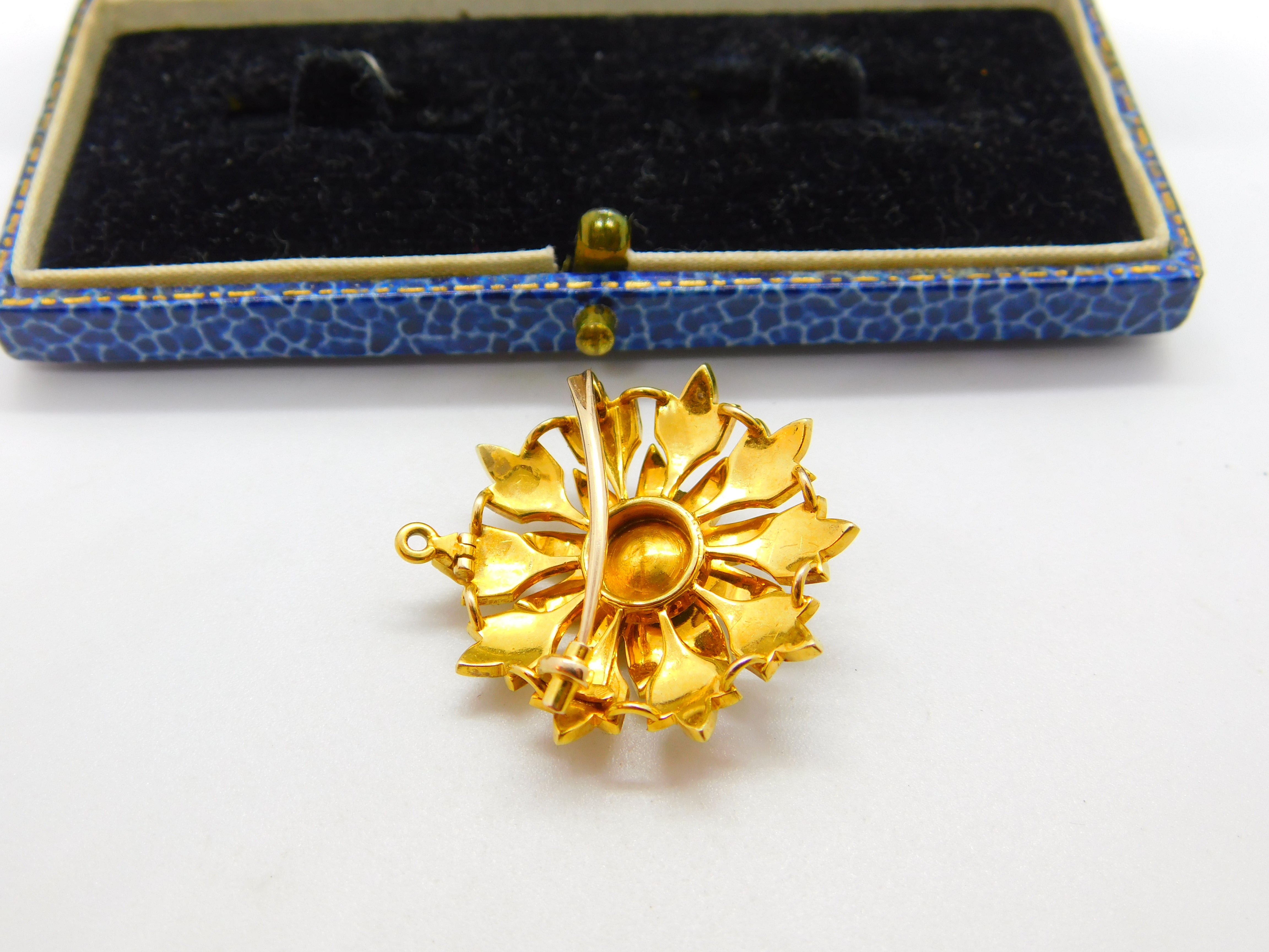 Victorian 18ct Yellow Gold & Seed Pearl Spring Flower Pendant or Brooch Antique c1880