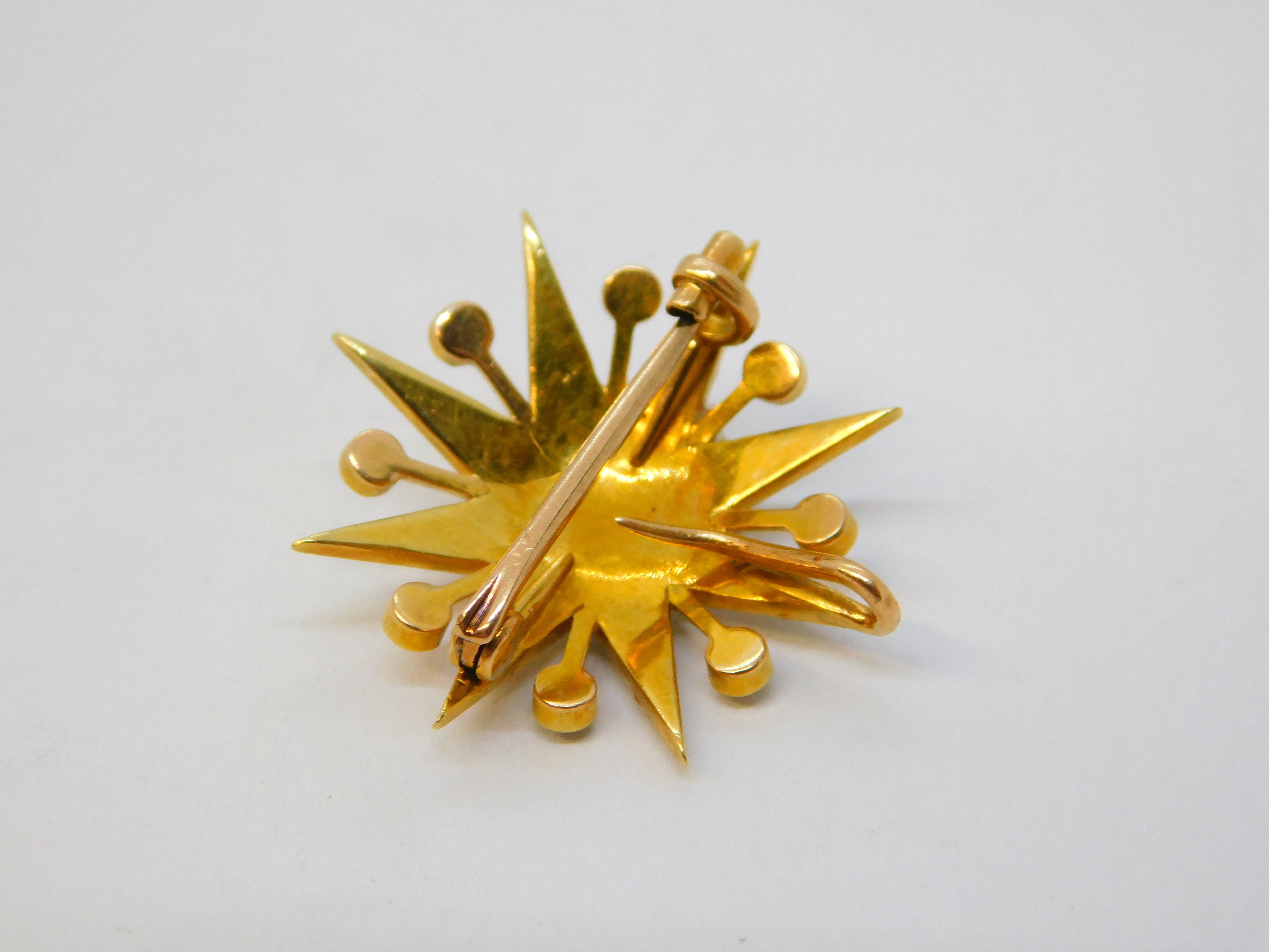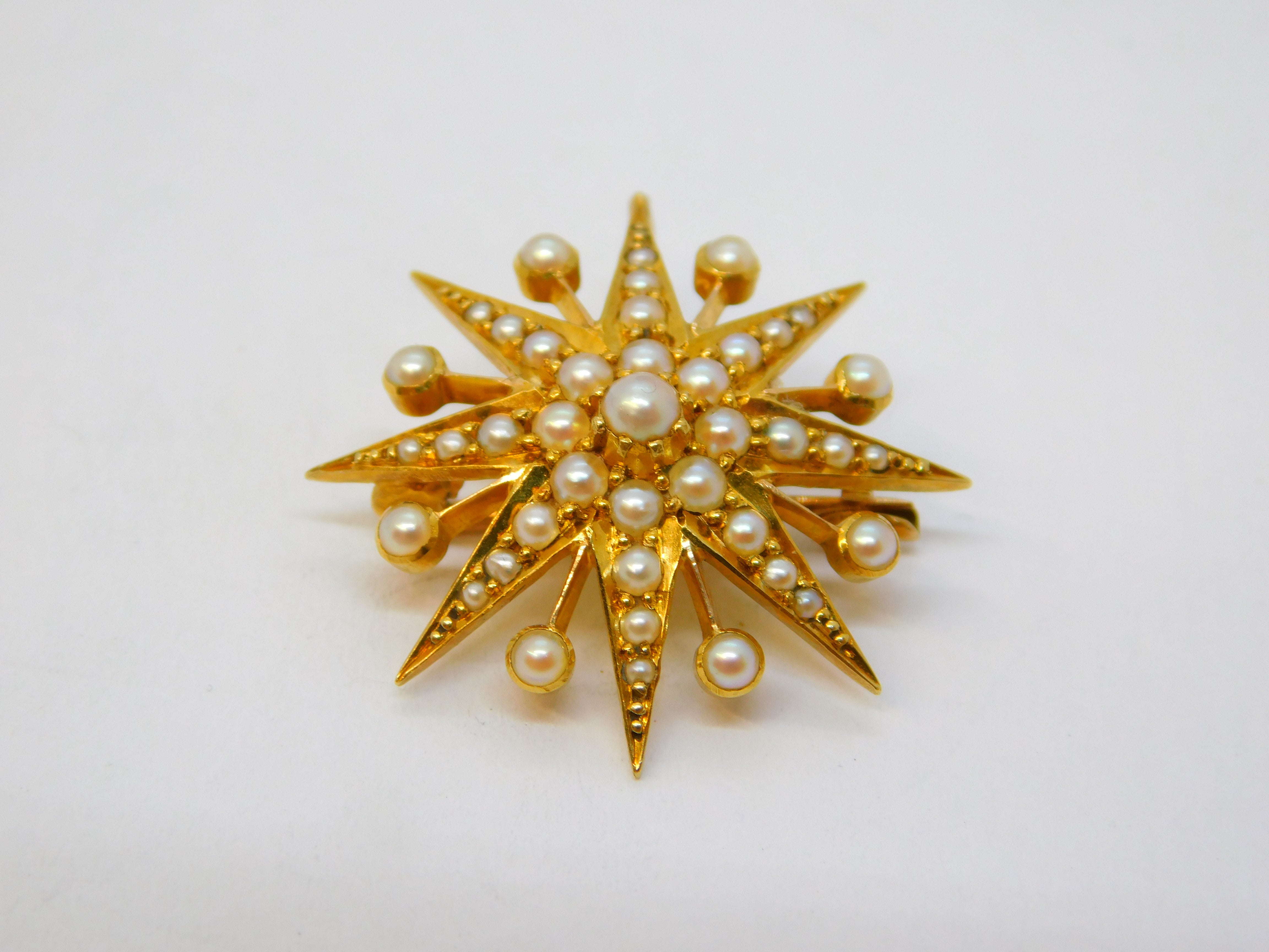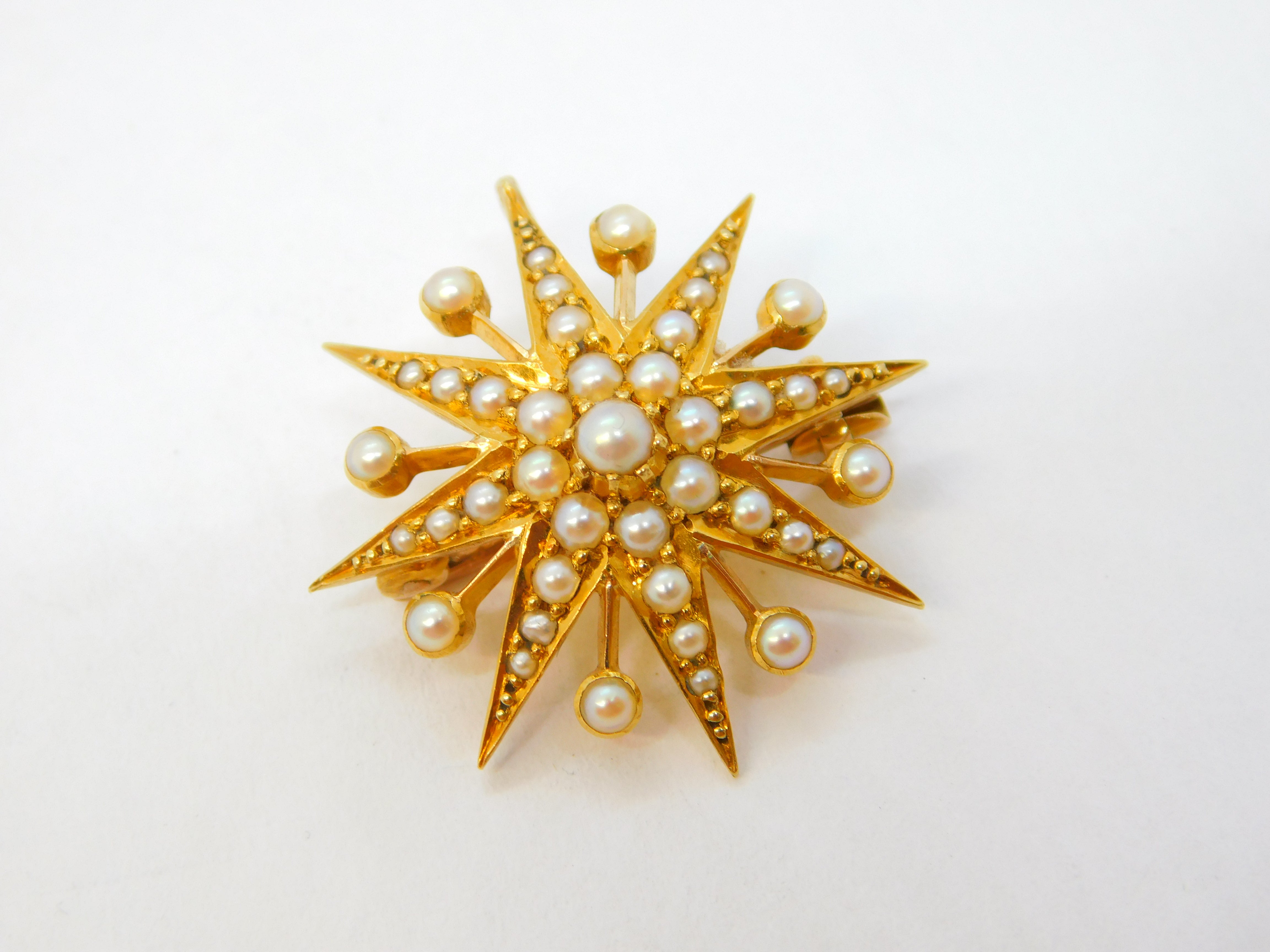Victorian 18ct Yellow Gold Seed Pearl Starburst Pendant Brooch Antique c1880