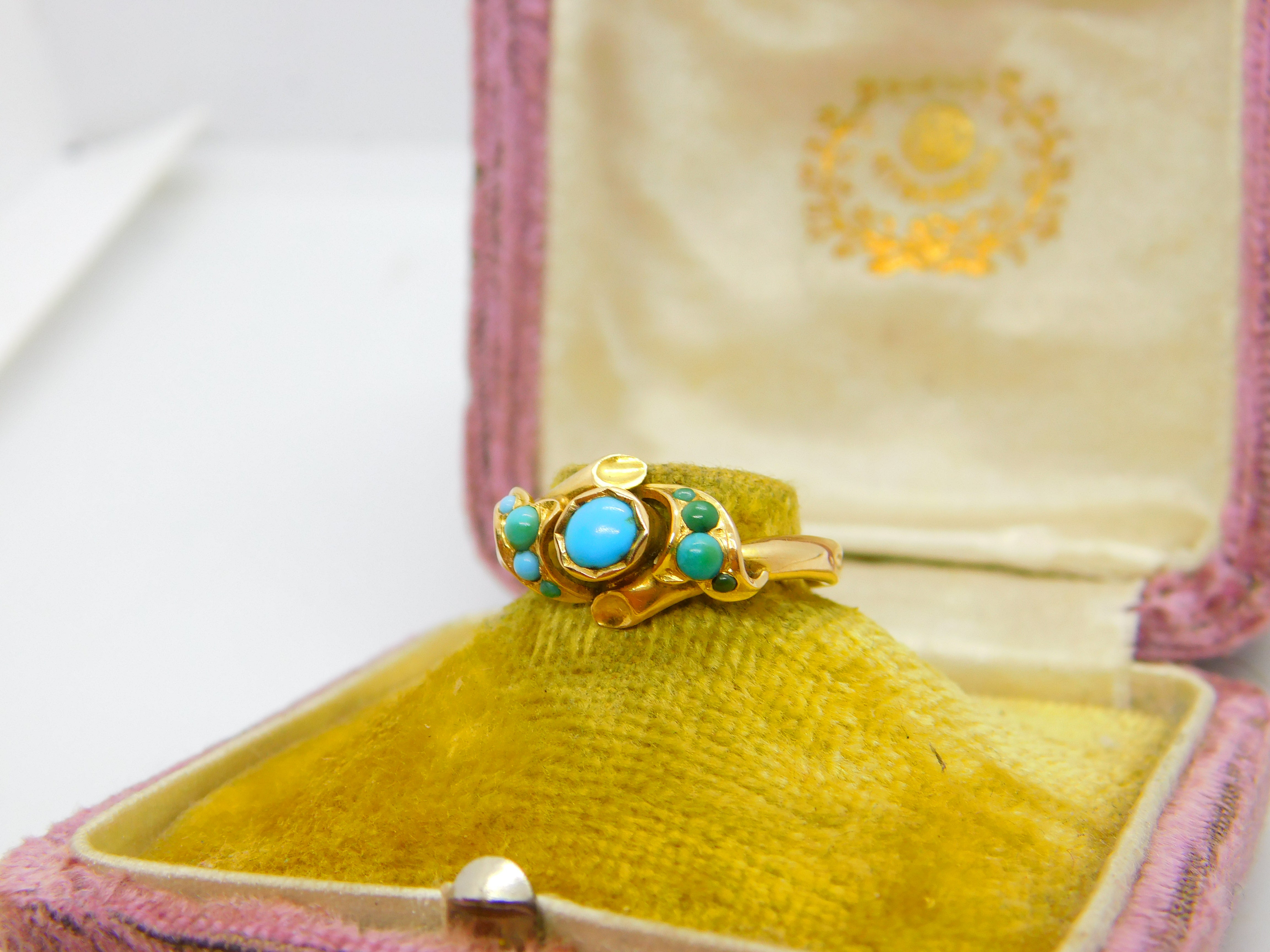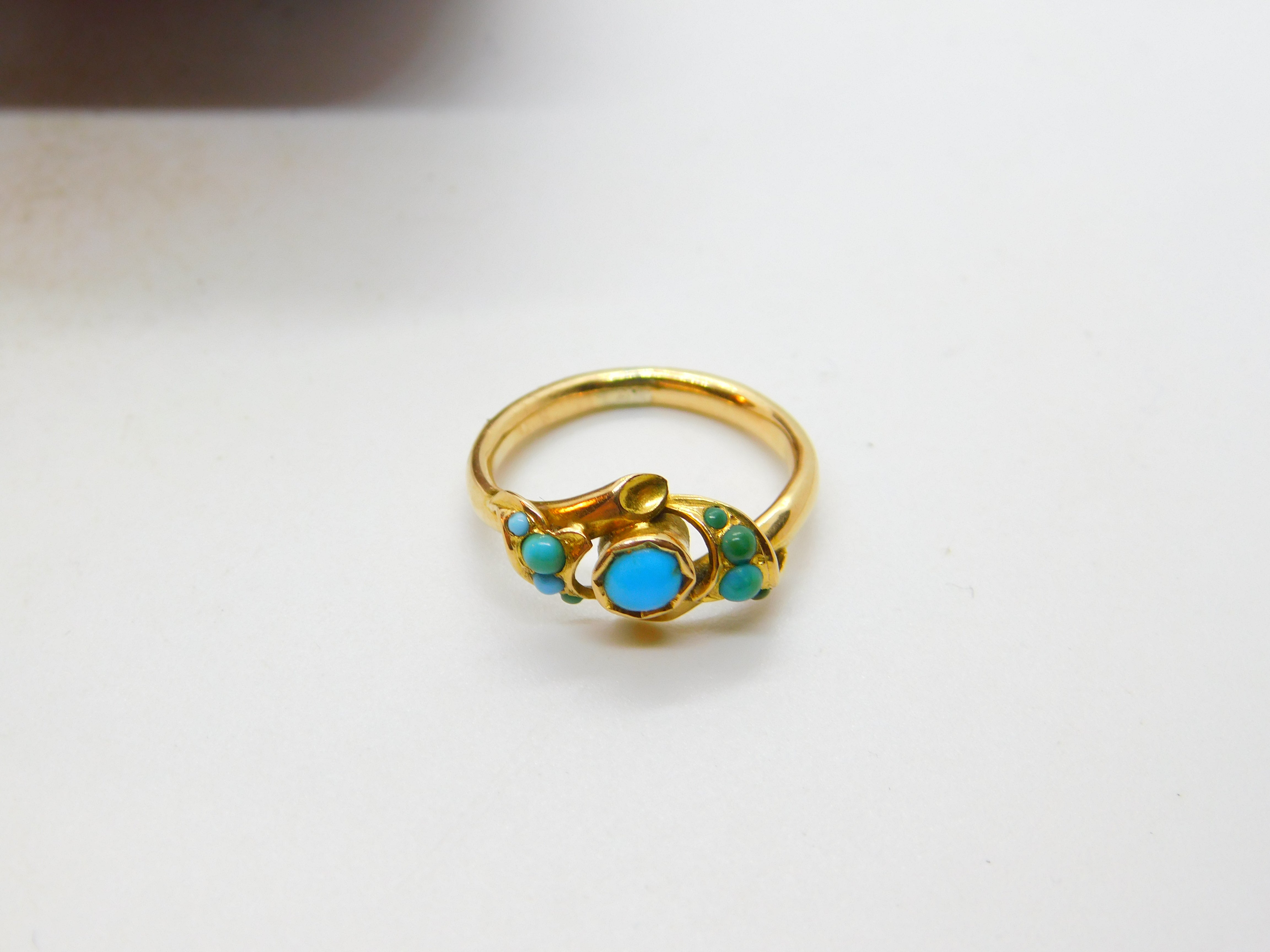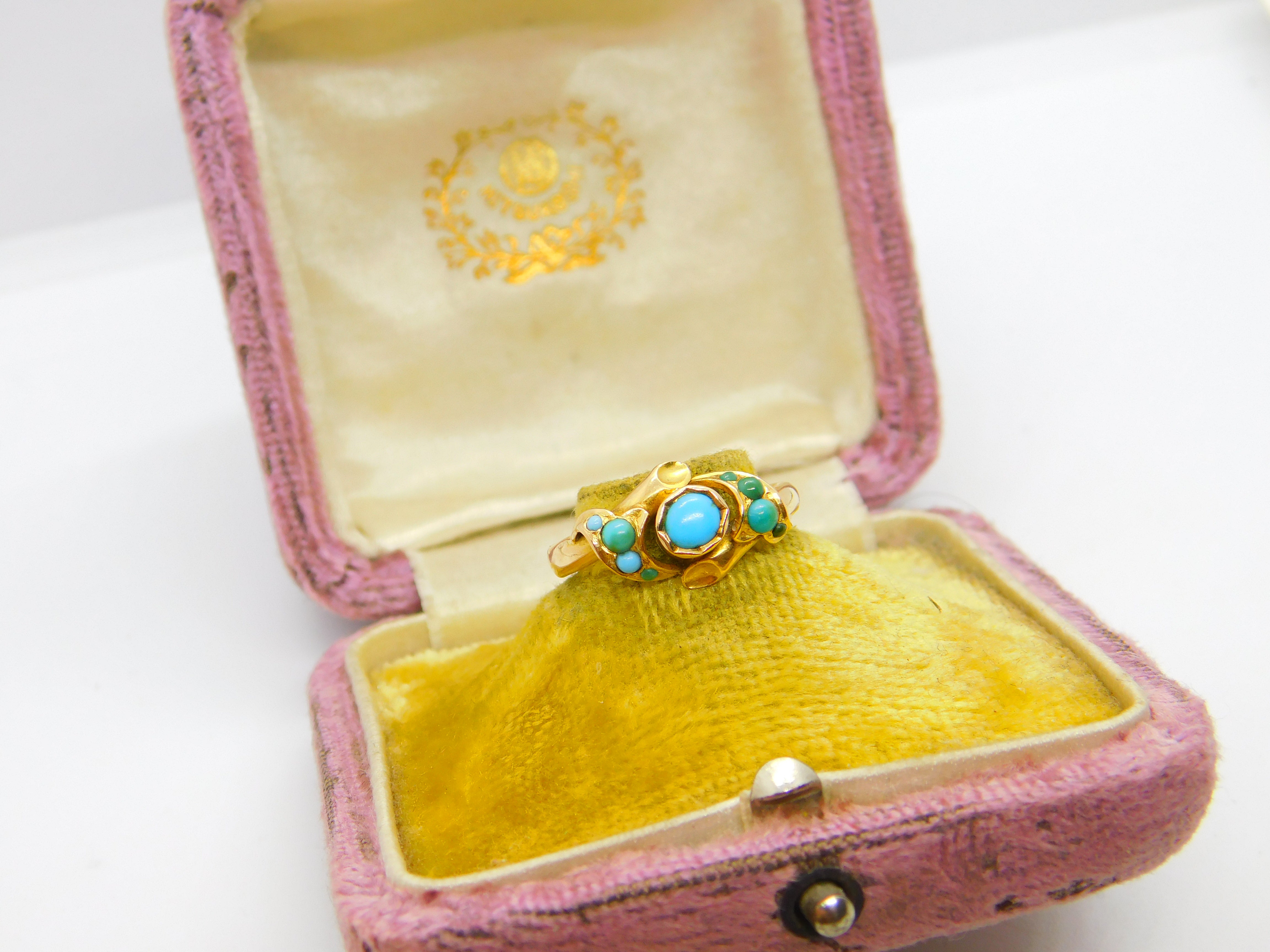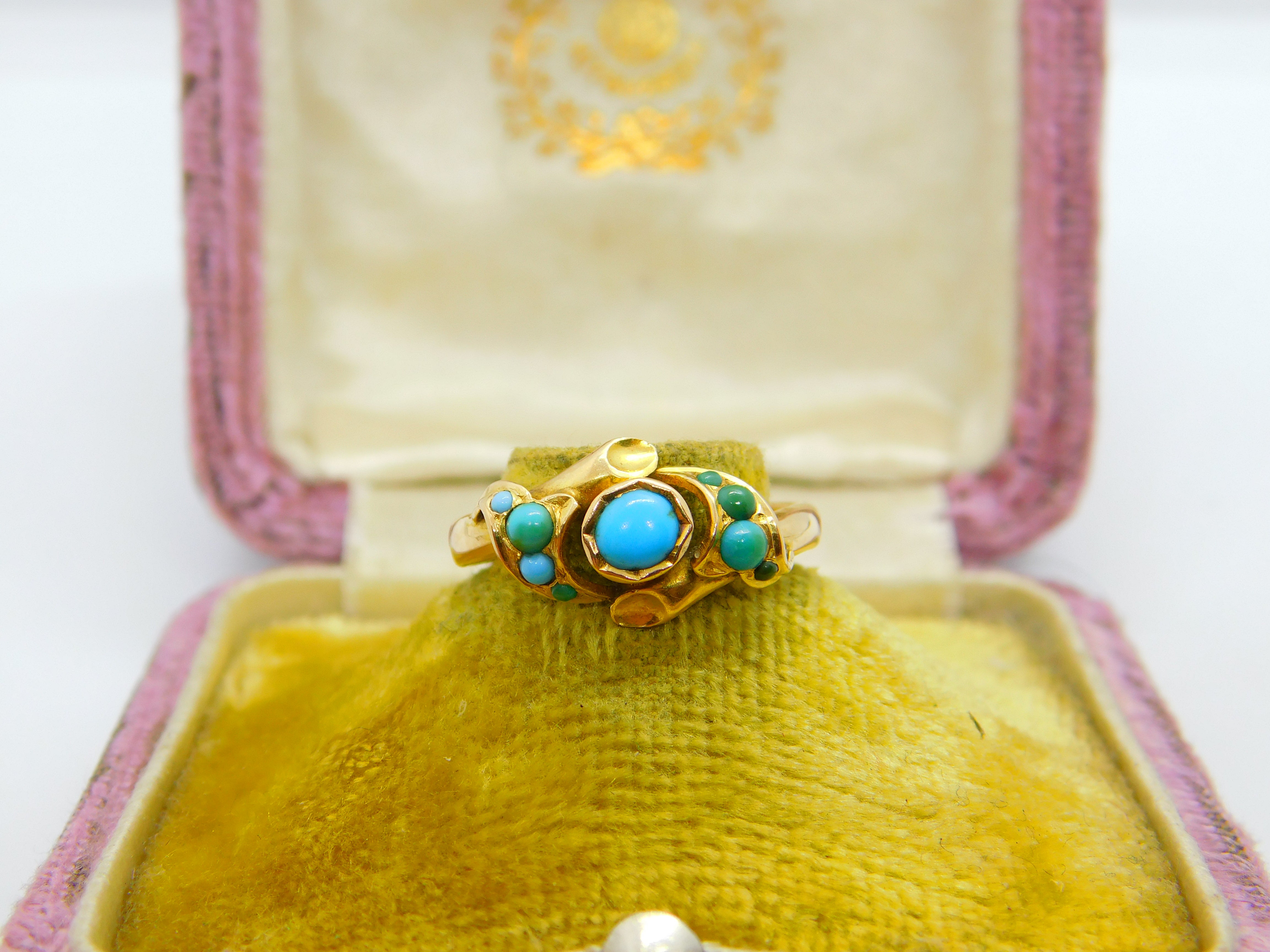 Victorian 18ct Yellow Gold & Turquoise Set Sweetheart Band Ring c1860 Antique