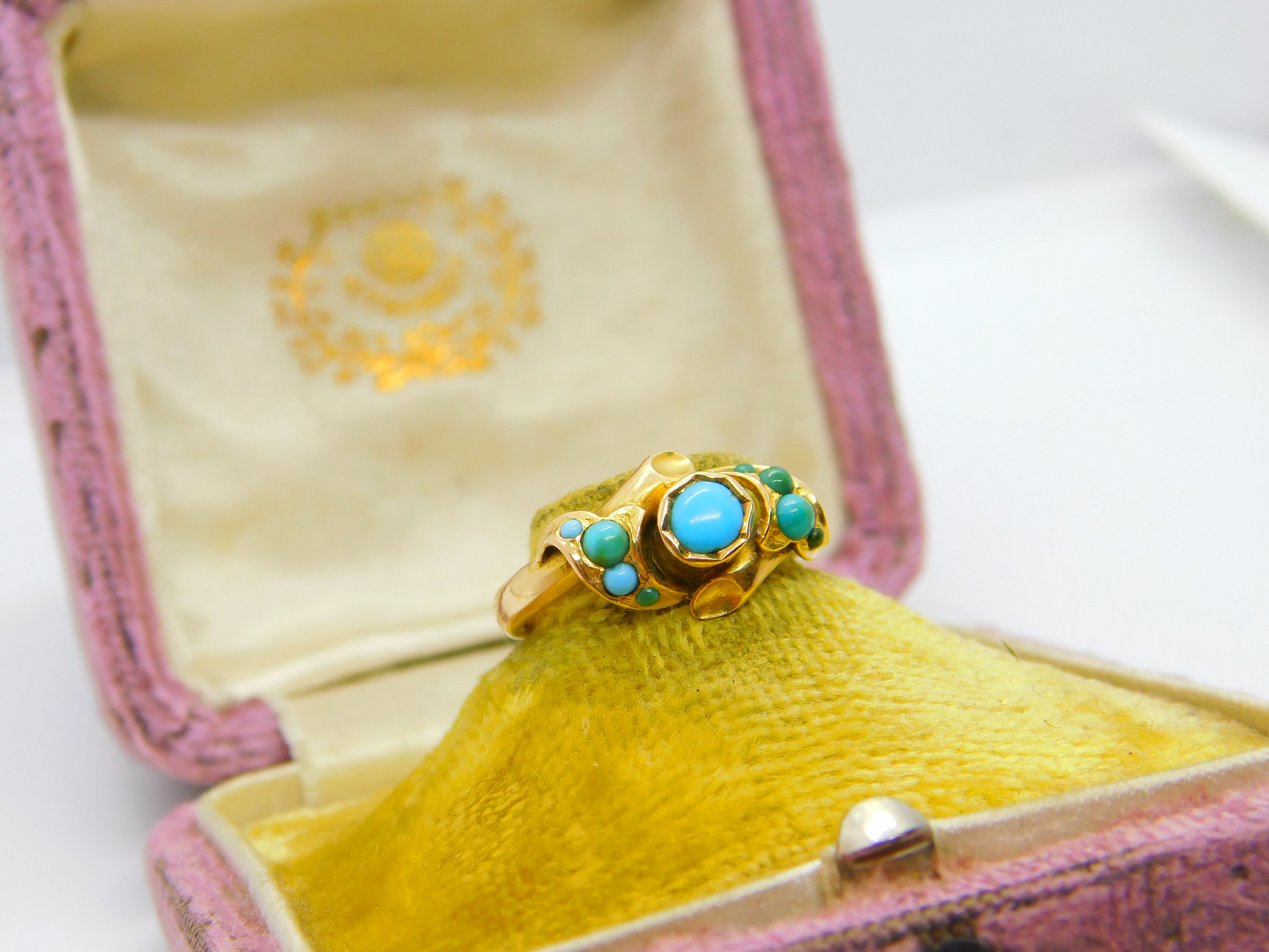 Details: A fantastic and wonderfully designed antique Victorian 18ct yellow gold sweetheart floral band ring set with natural turquoise c1860, the gold has been XRF tested. Minor dents to the reverse of the band please note. This is a wonderful item that would make a perfect gift or addition to any collection. The BOX pictured is for PRESENTATION ONLY and is NOT included in the listings but used to frame the pictures unless specifically stated otherwise.