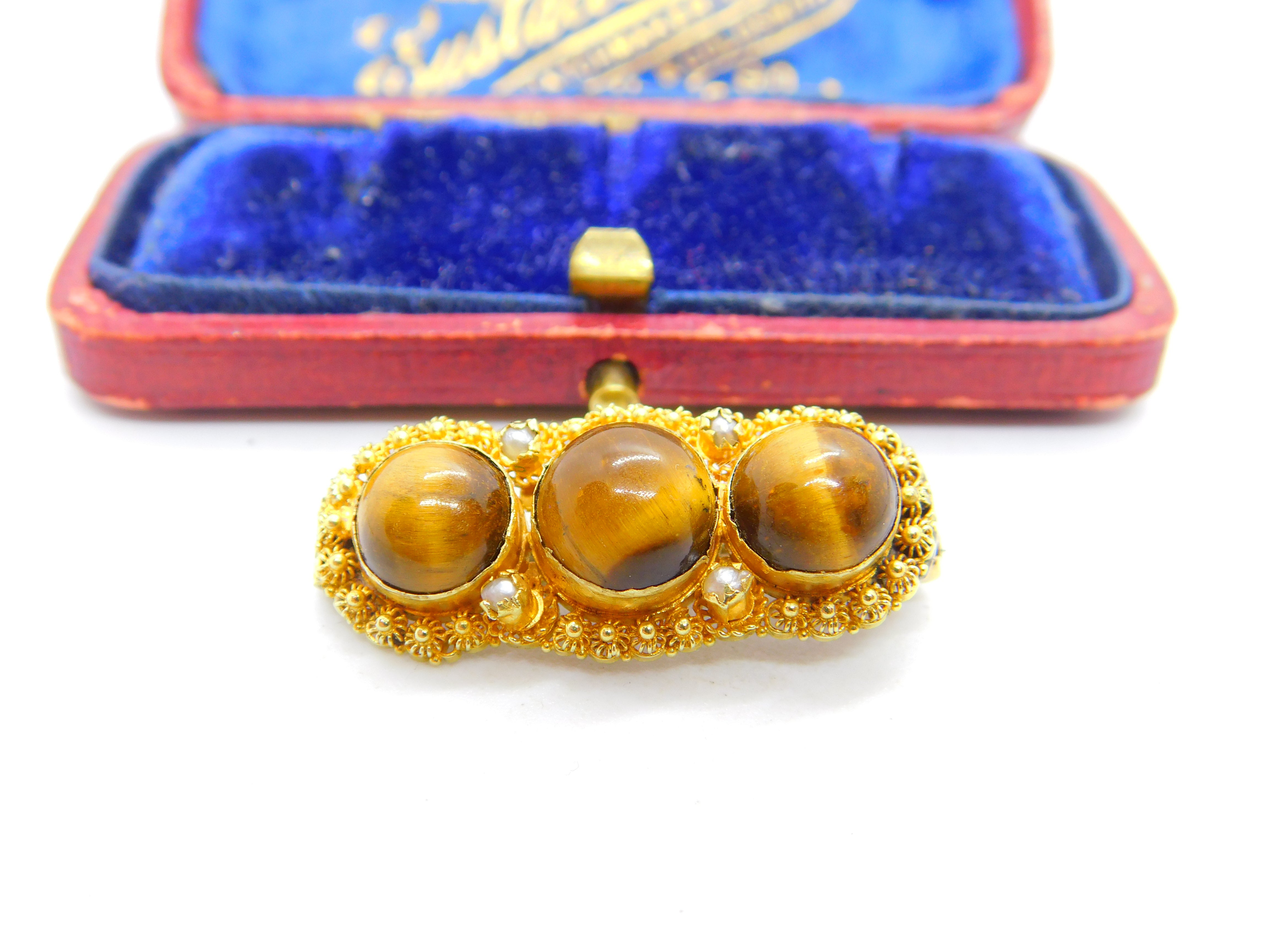 Details: A fantastic and wonderfully designed antique Victorian cannetille form 22ct yellow gold sweetheart brooch set with seed pearl & tiger's eye stones c1840, the gold has been XRF tested. This is a wonderful item that would make a perfect gift or addition to any collection. The BOX pictured is for PRESENTATION ONLY and is NOT included in the listings but used to frame the pictures unless specifically stated otherwise.