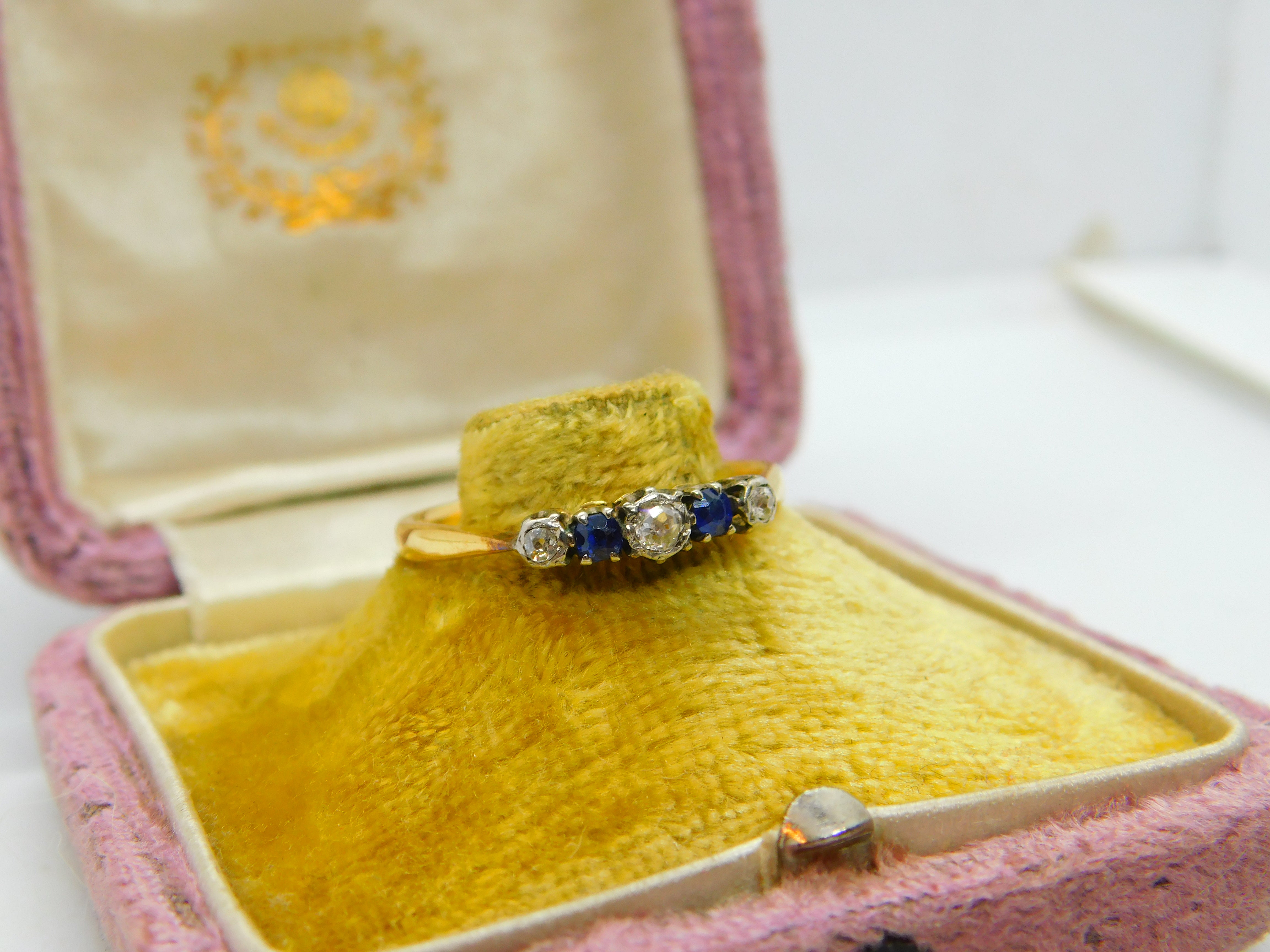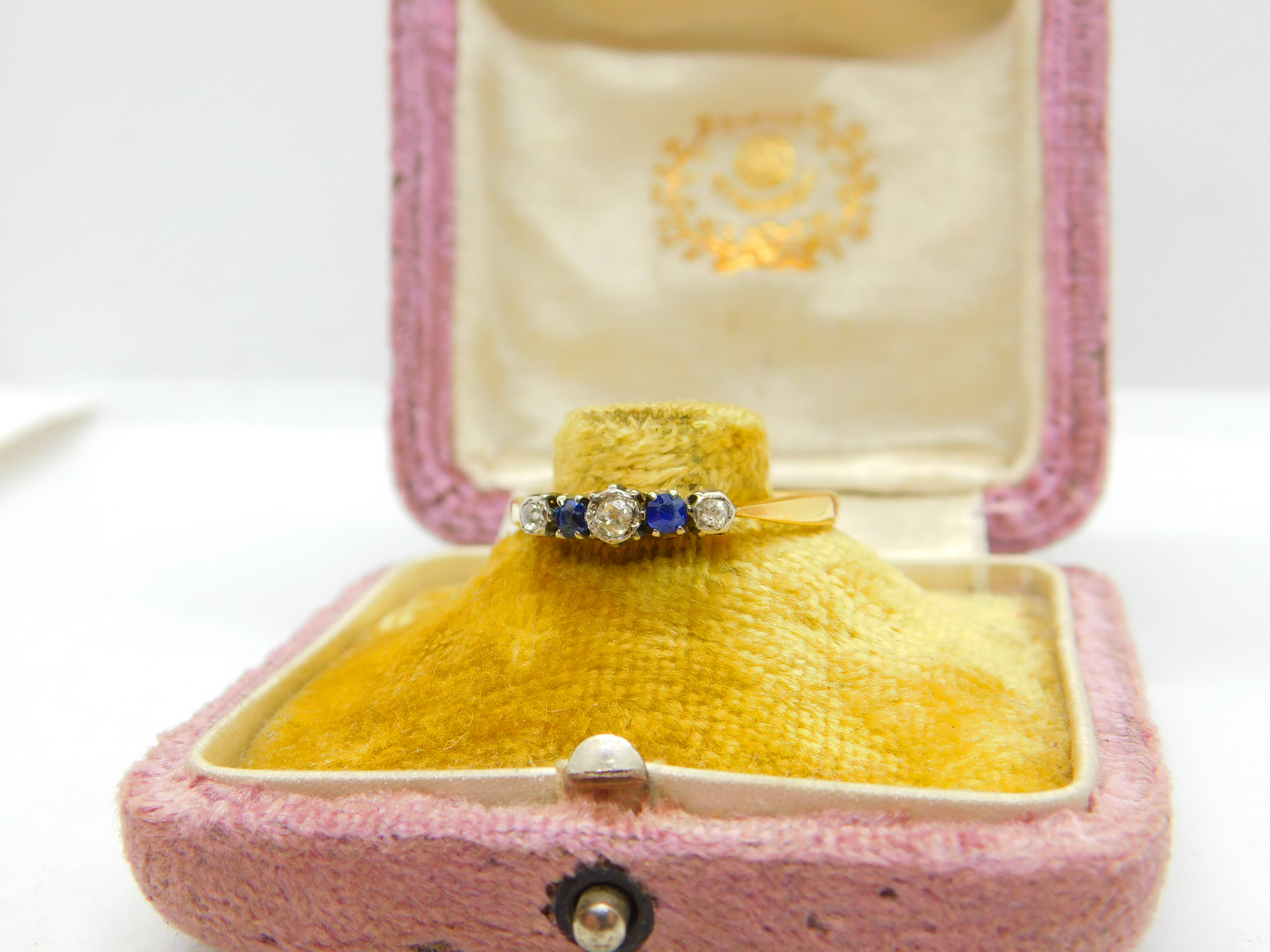 Victorian 22ct Yellow Gold, Diamond & Sapphire Engagement Ring Antique 1888