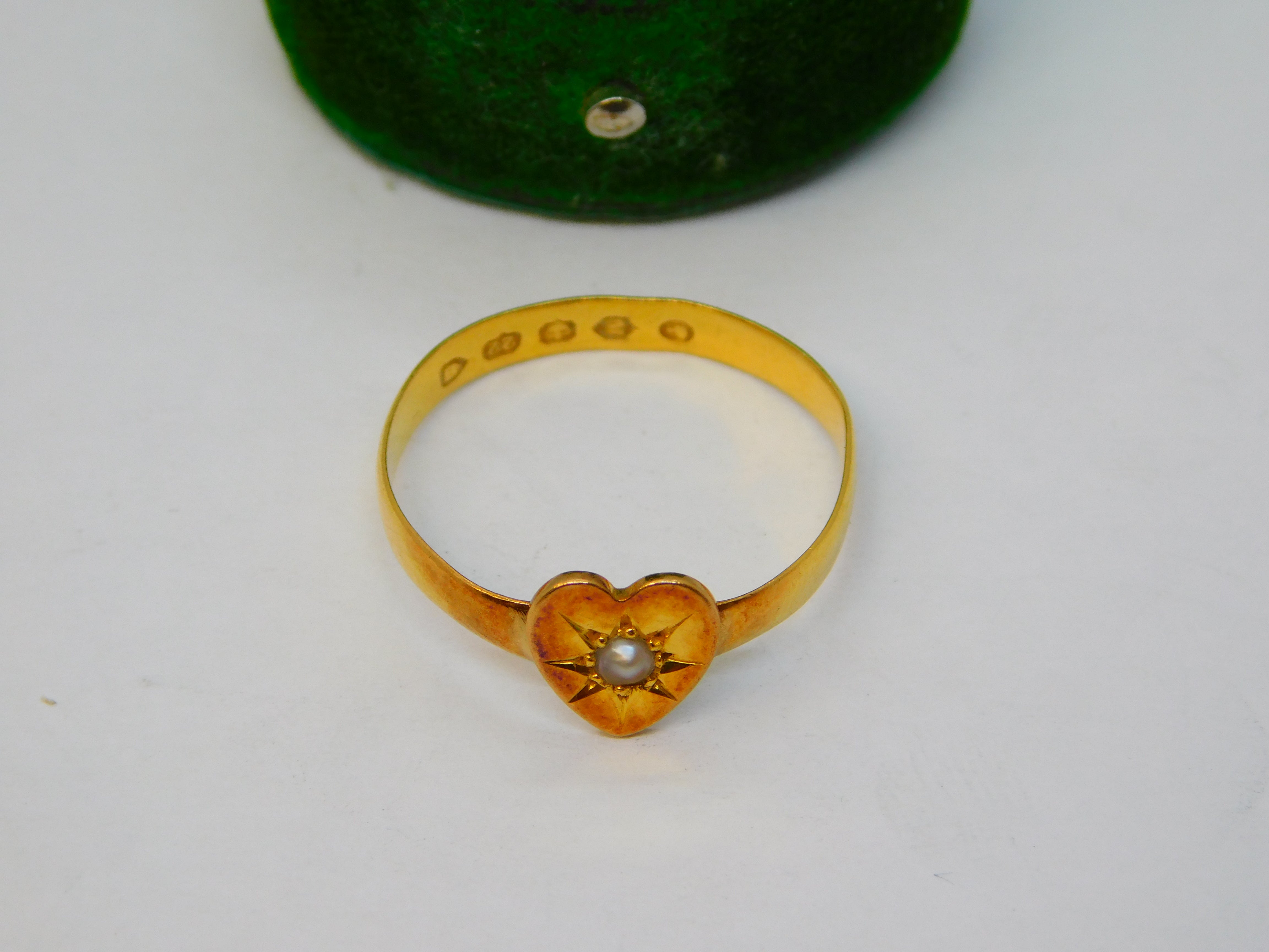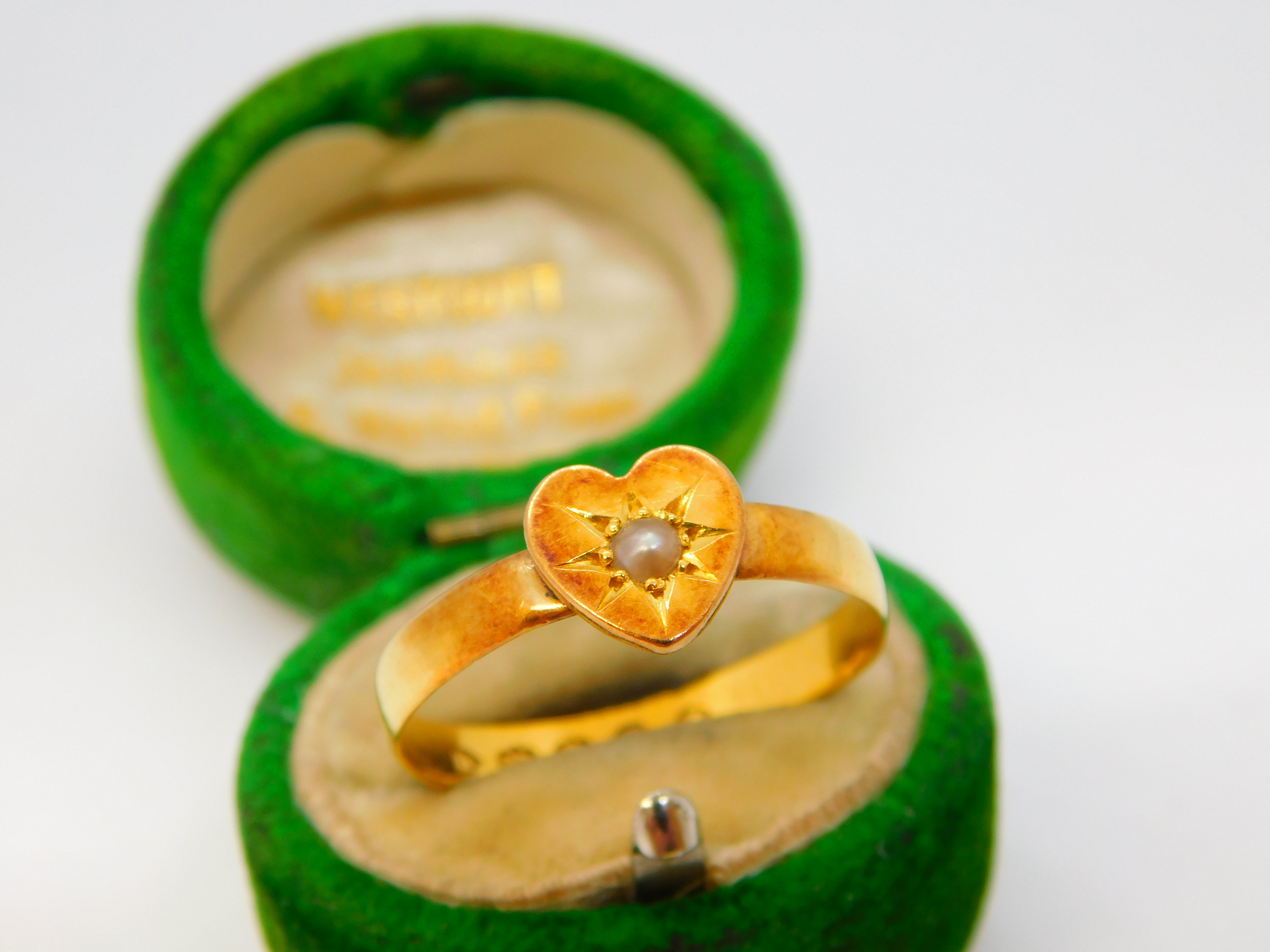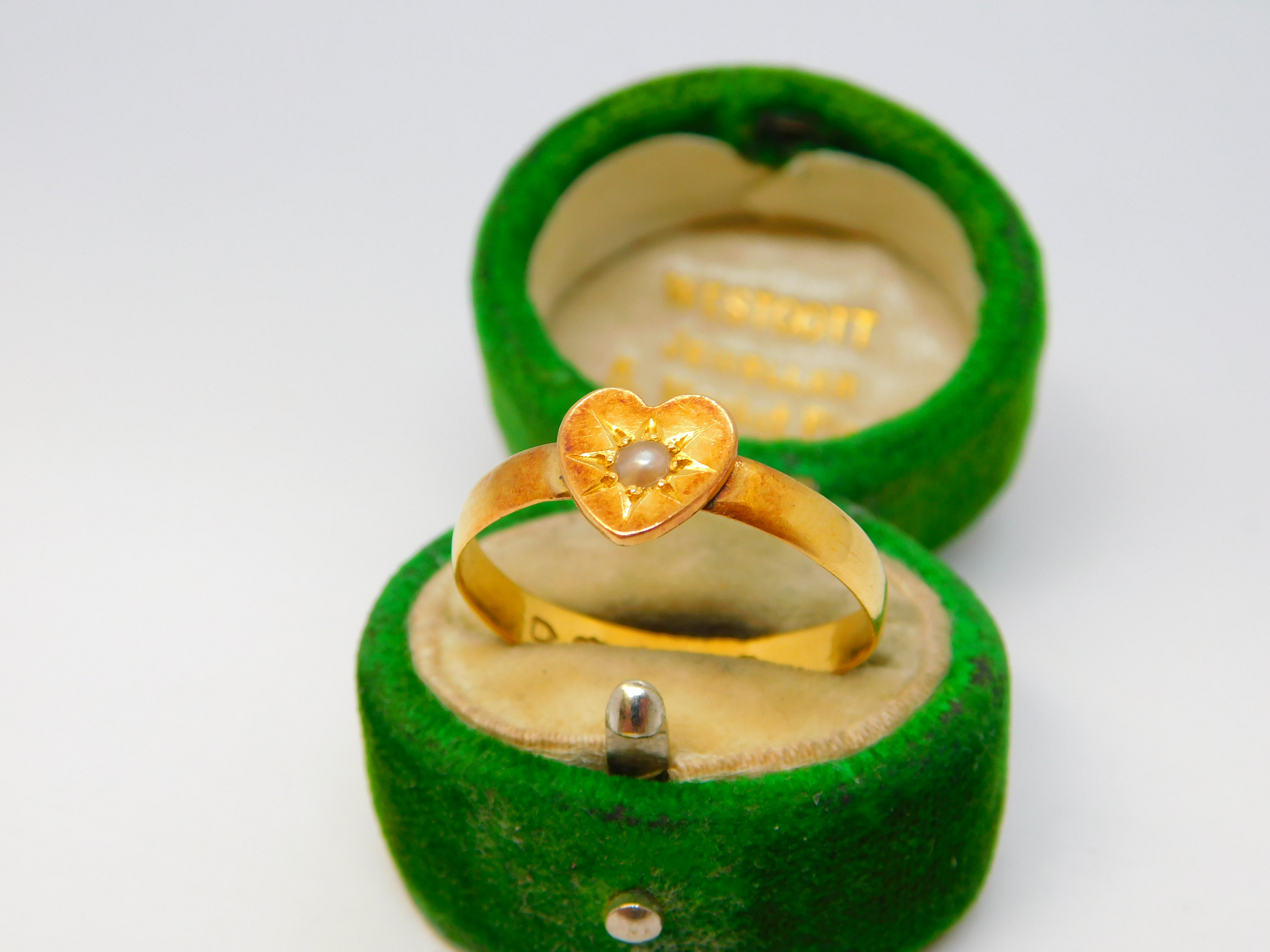 Victorian 22ct Yellow Gold Seed Pearl Set Sweetheart Ring Antique 1887 London