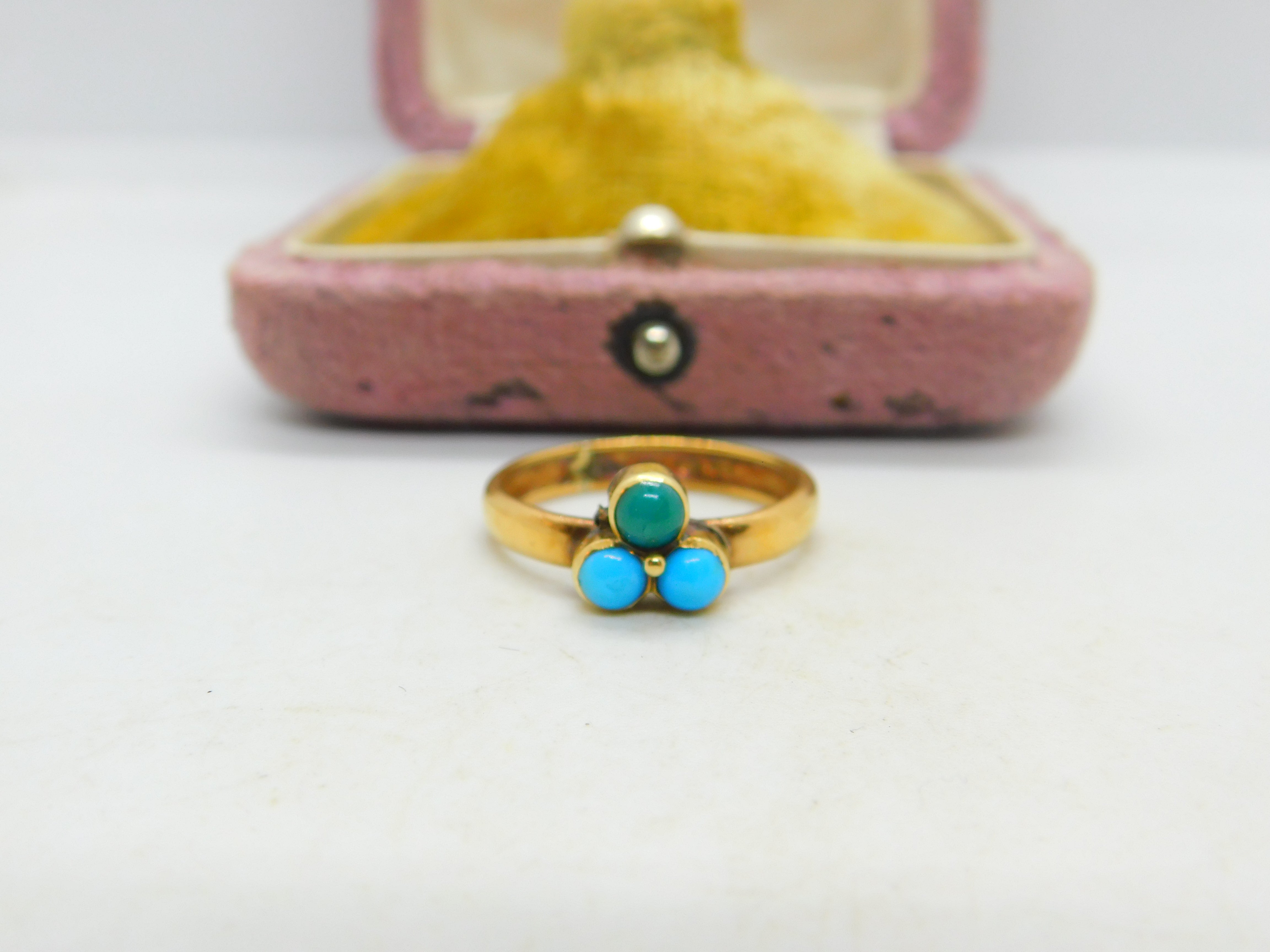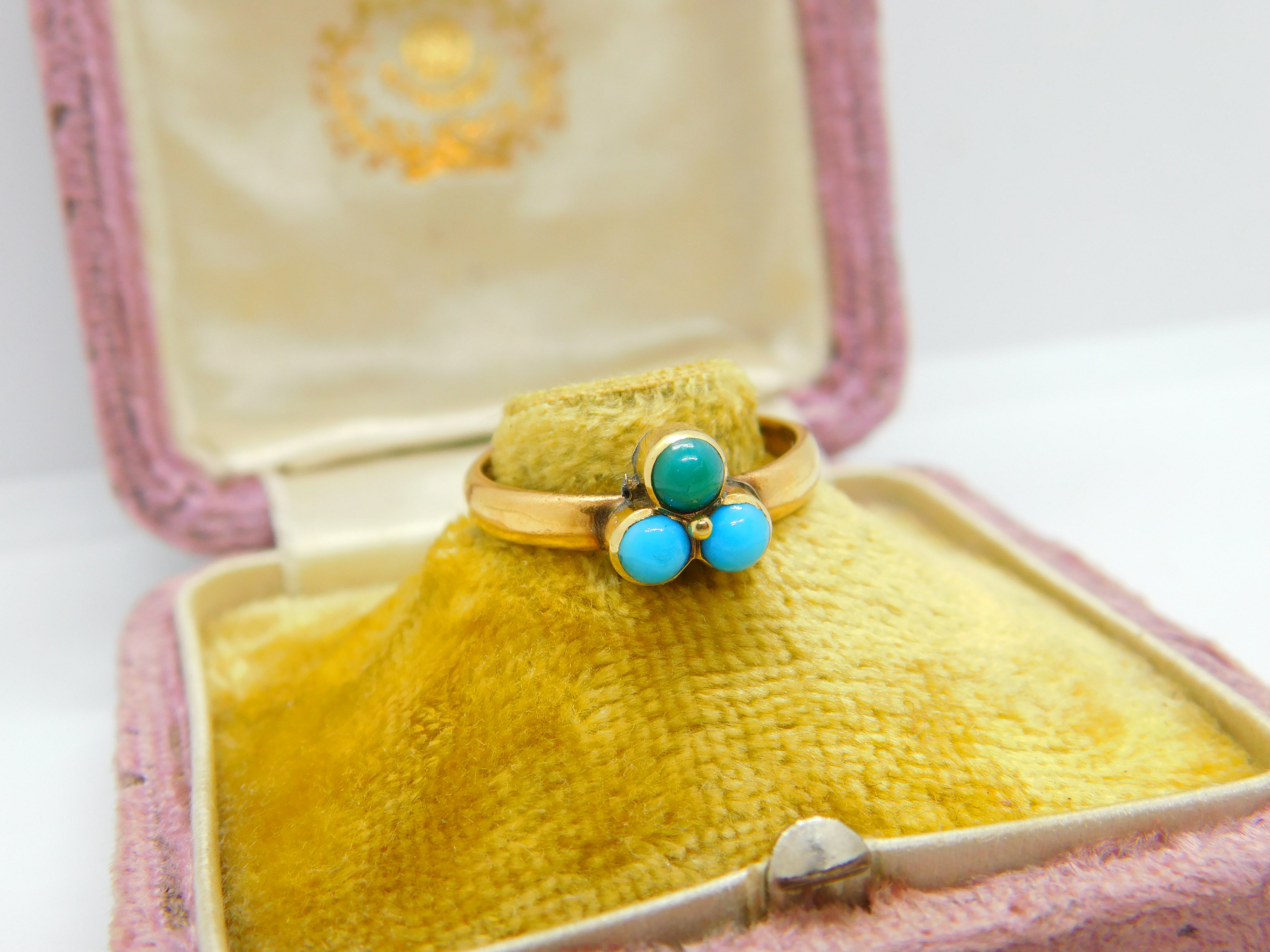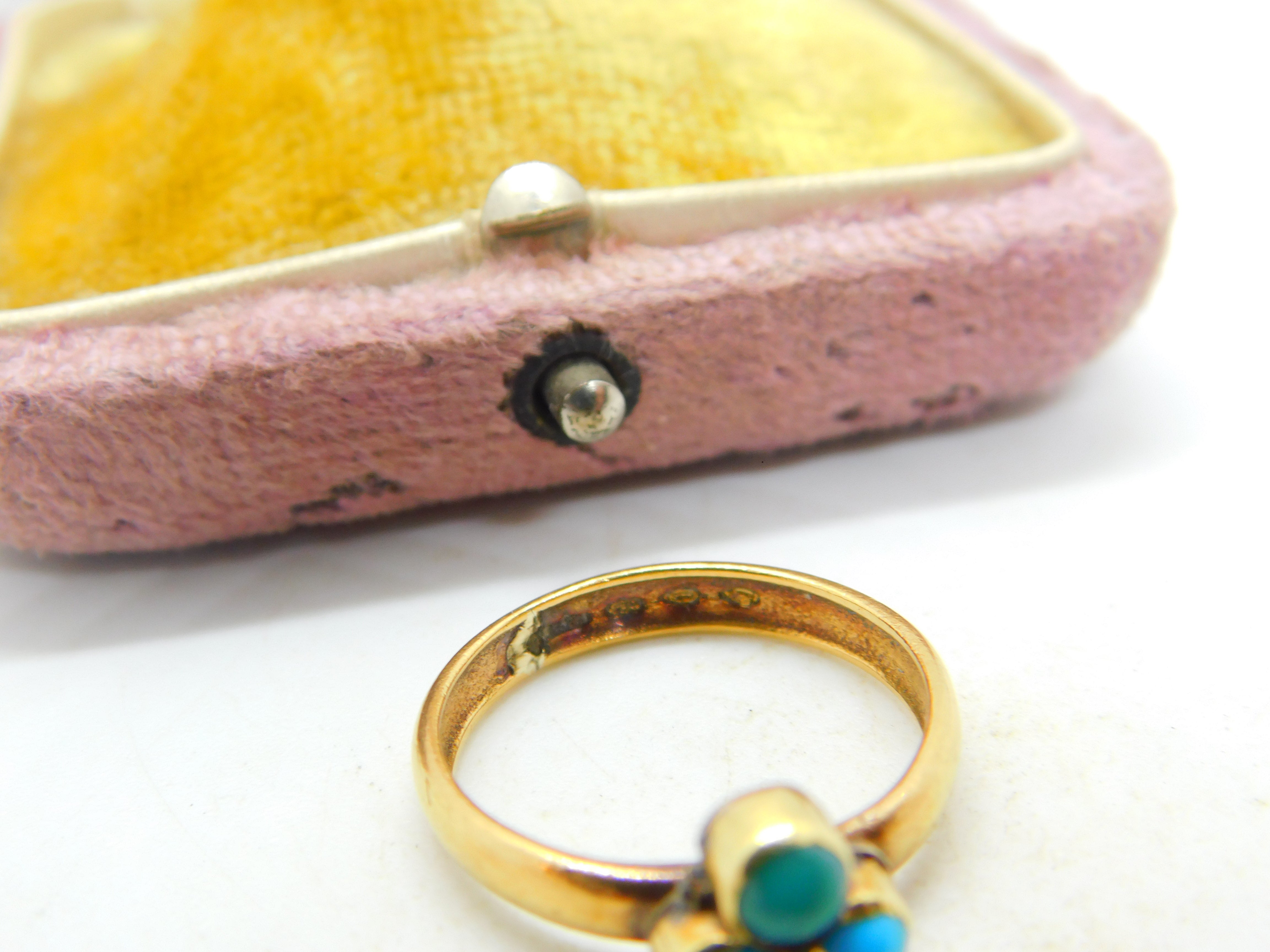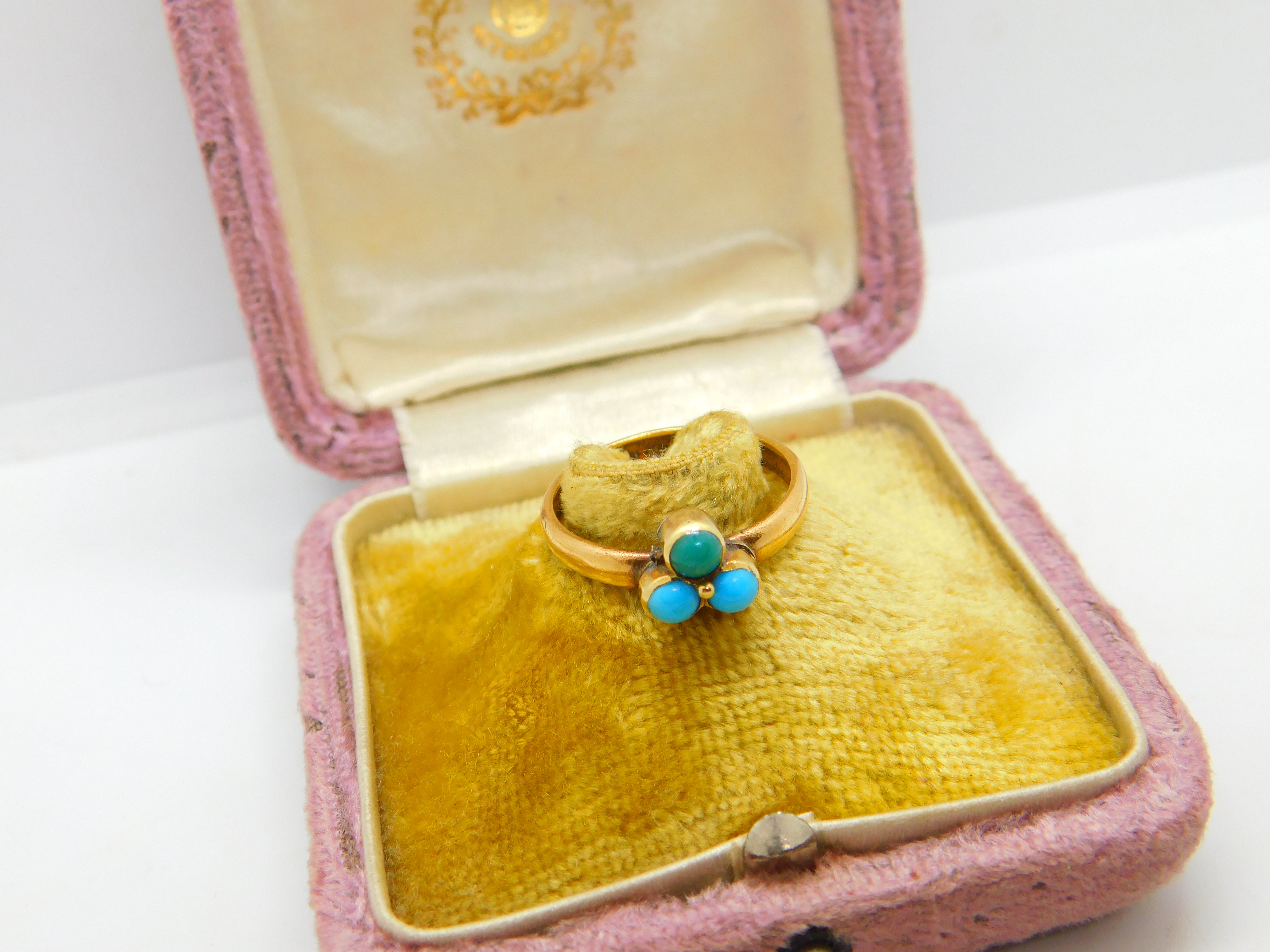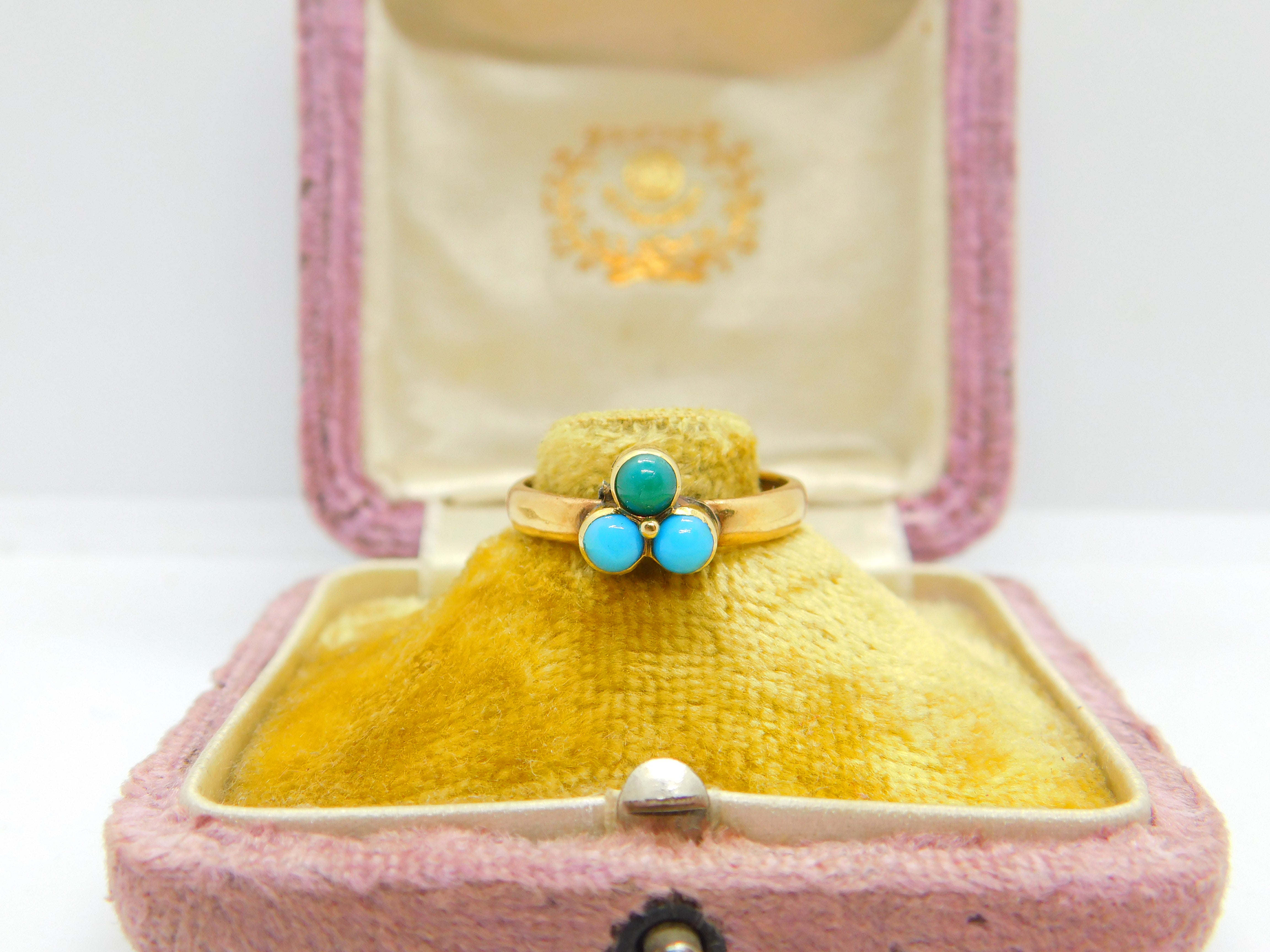 Victorian 22ct Yellow Gold & Turquoise Lucky Clover Ring Antique c1880 Sheffield
