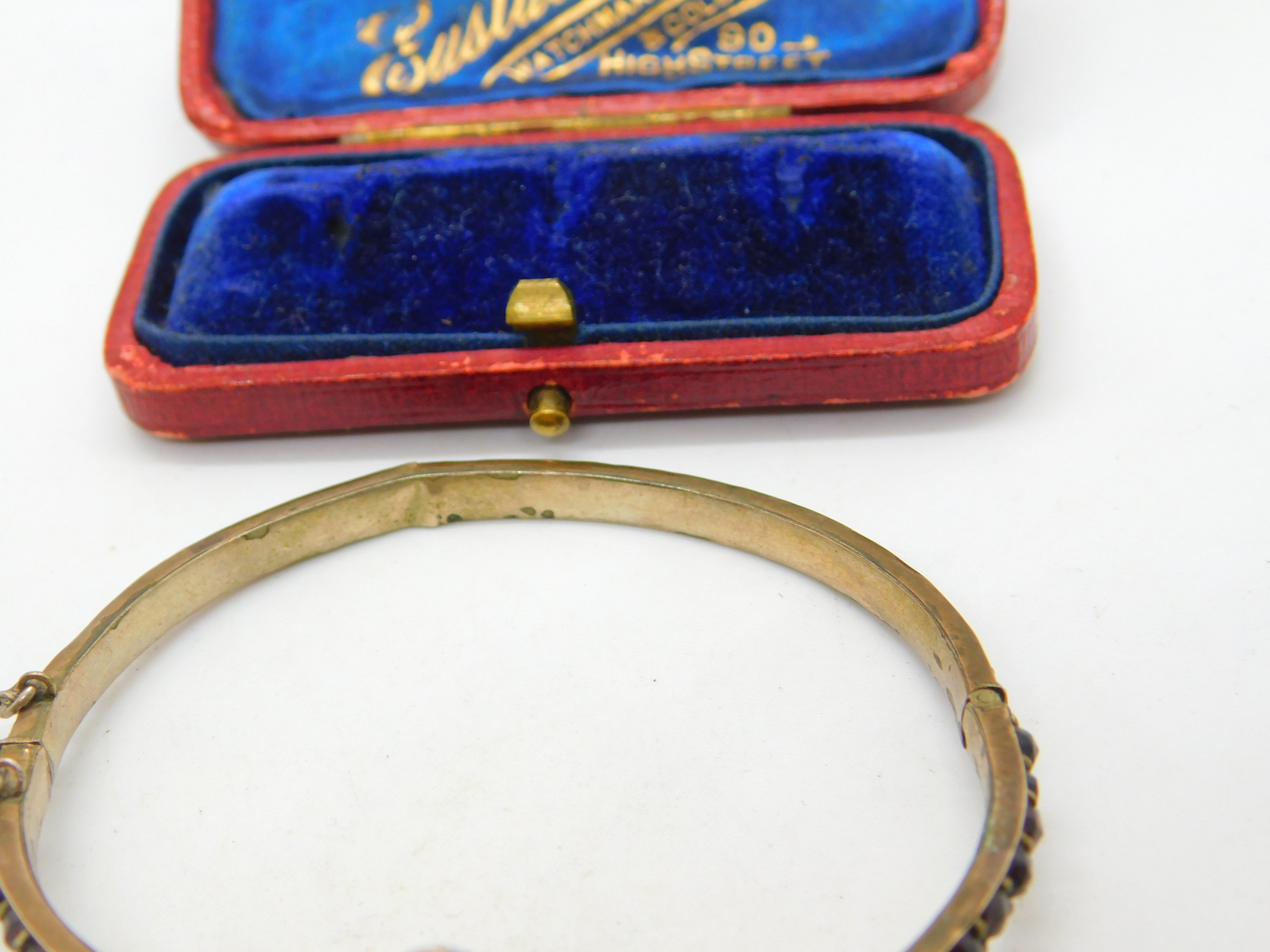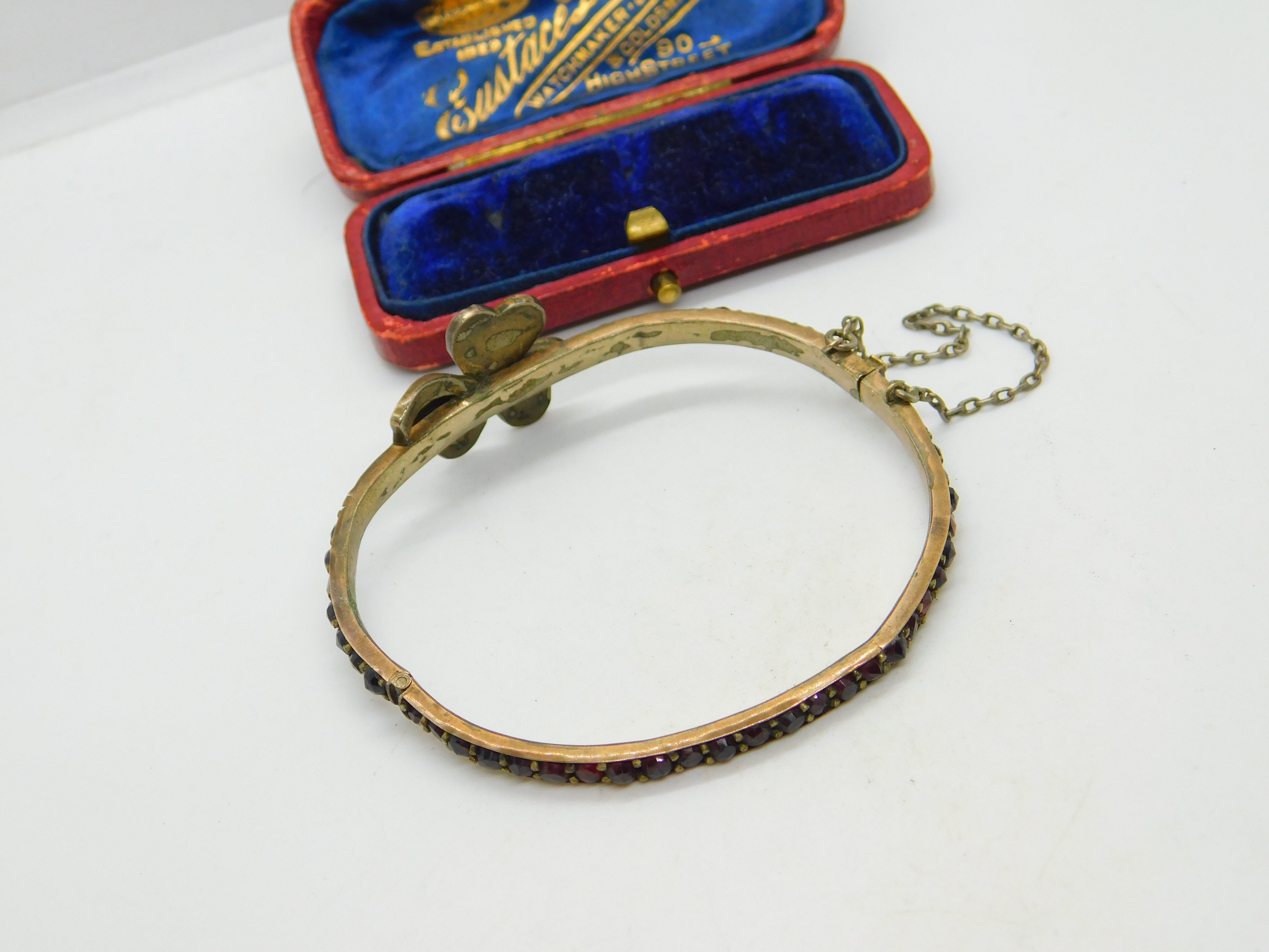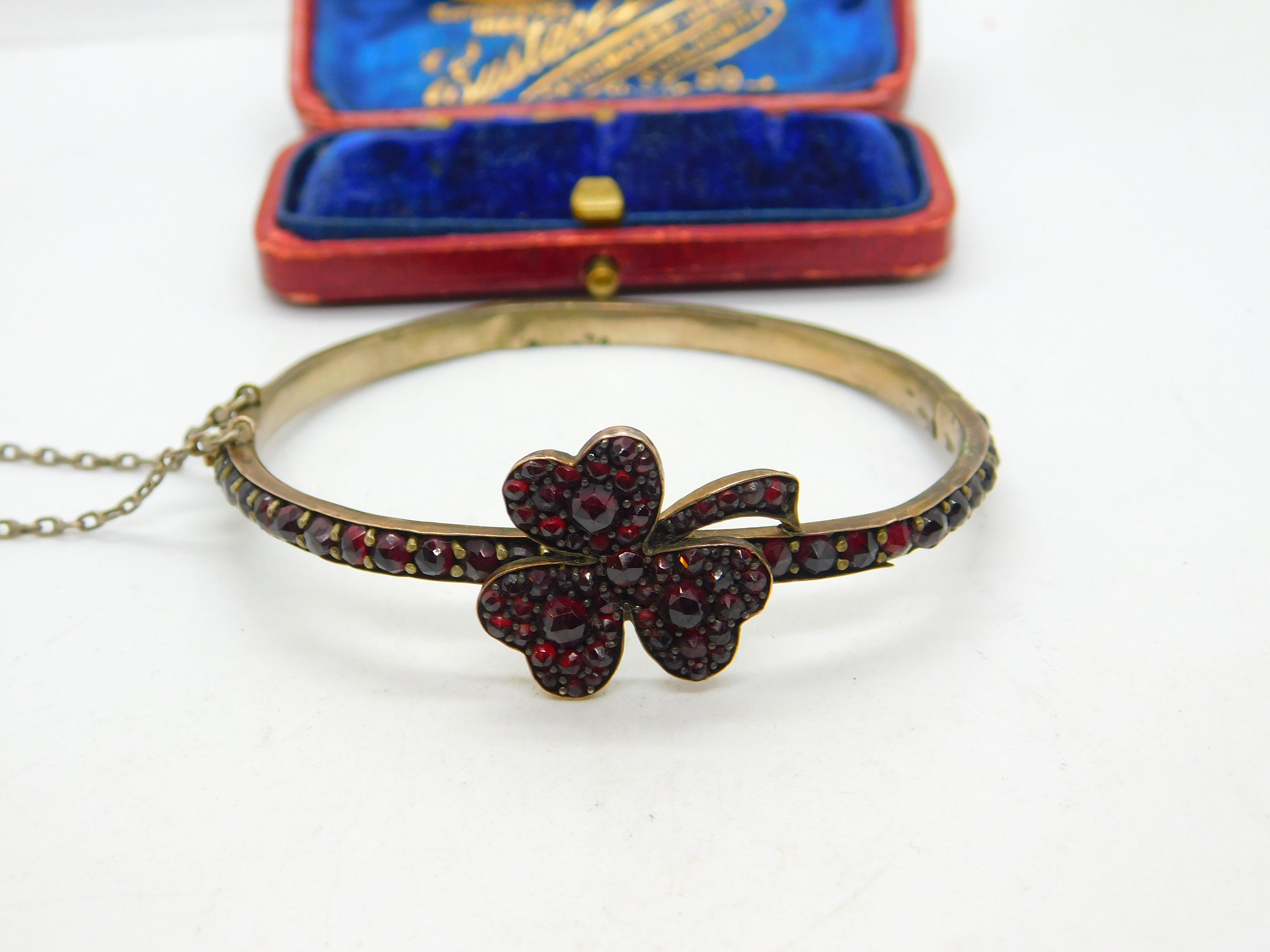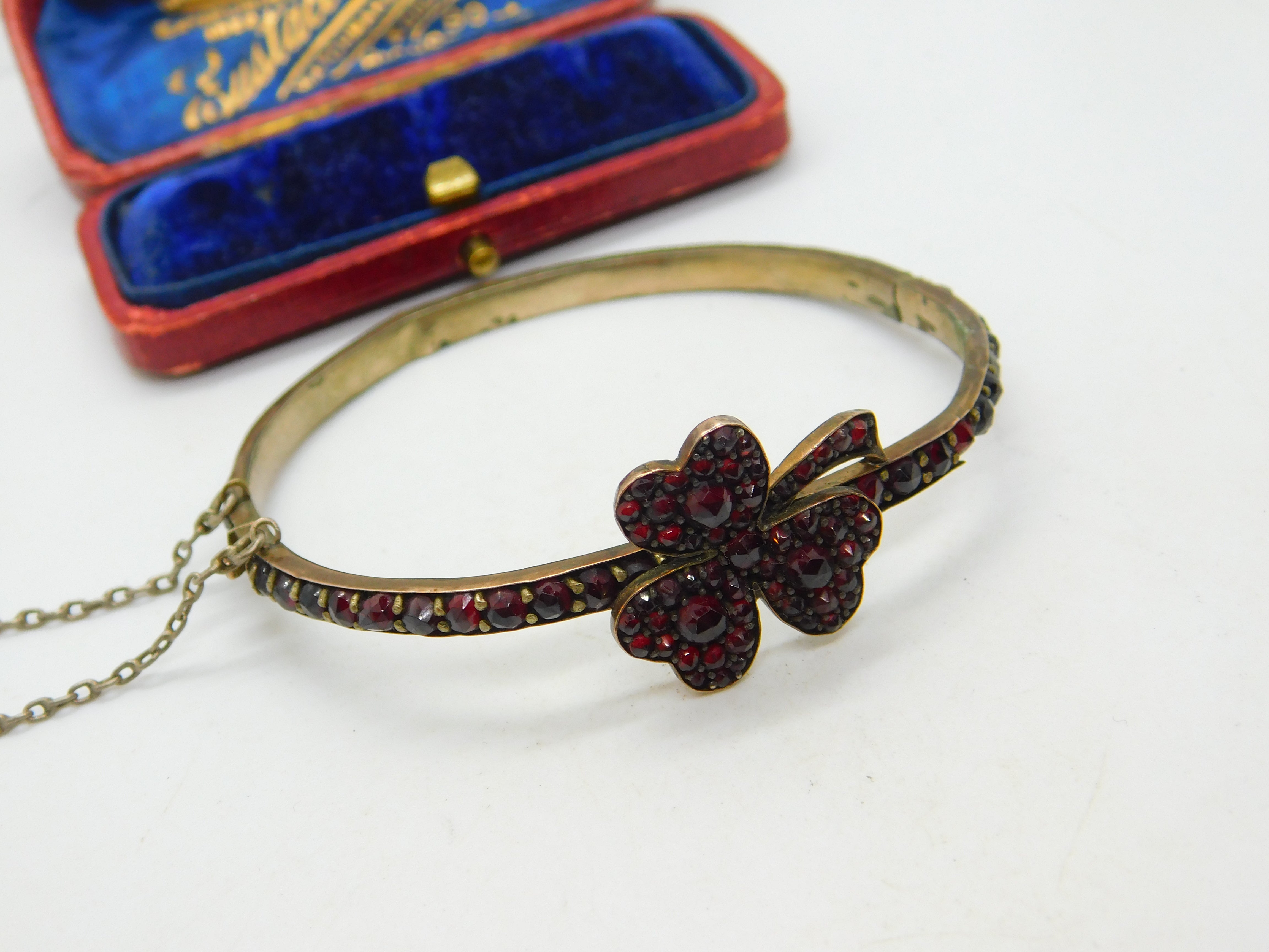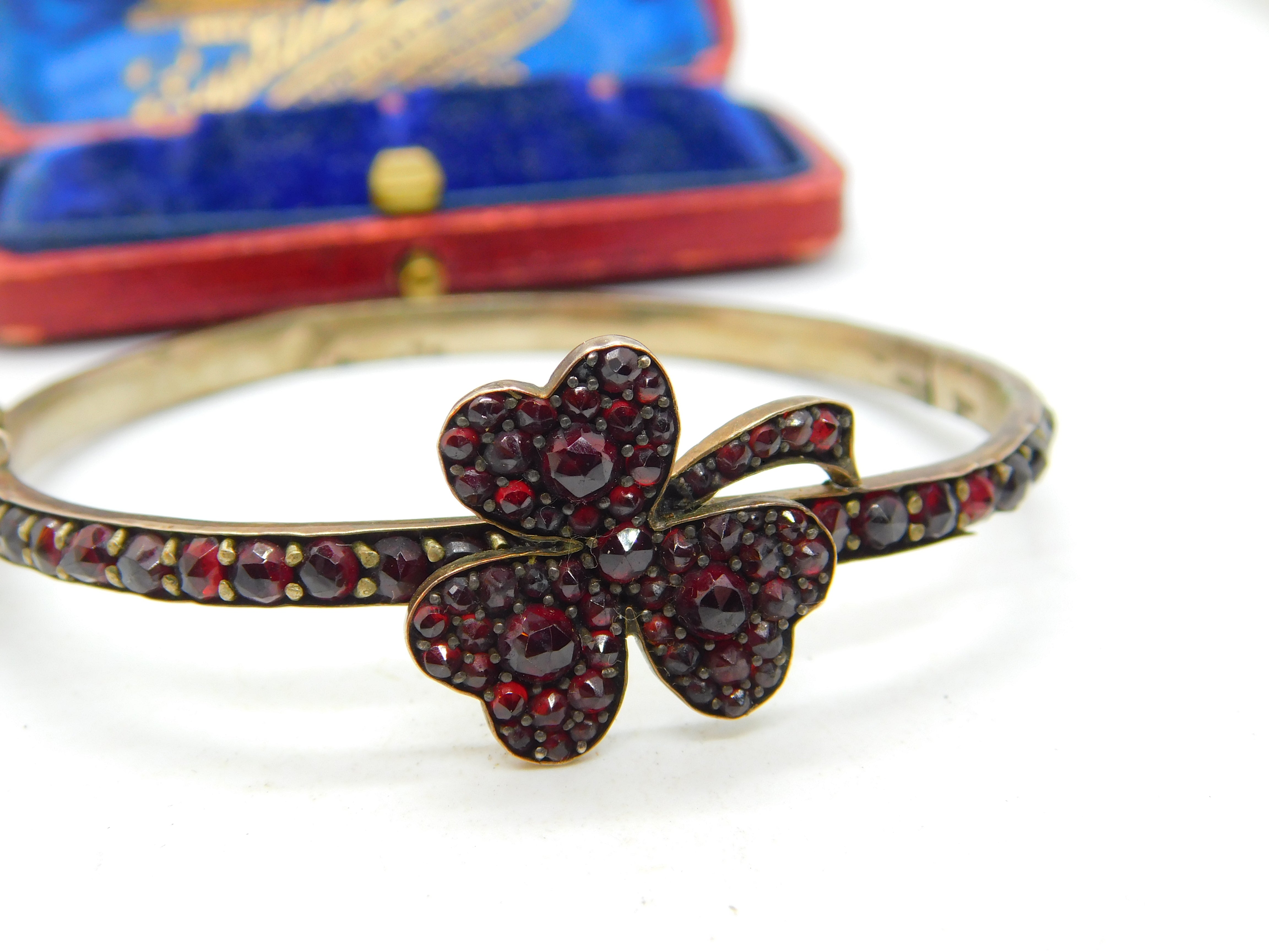 Victorian 8ct Gold & Bohemian Garnet Austro-Hungarian Shamrock Bangle c1860