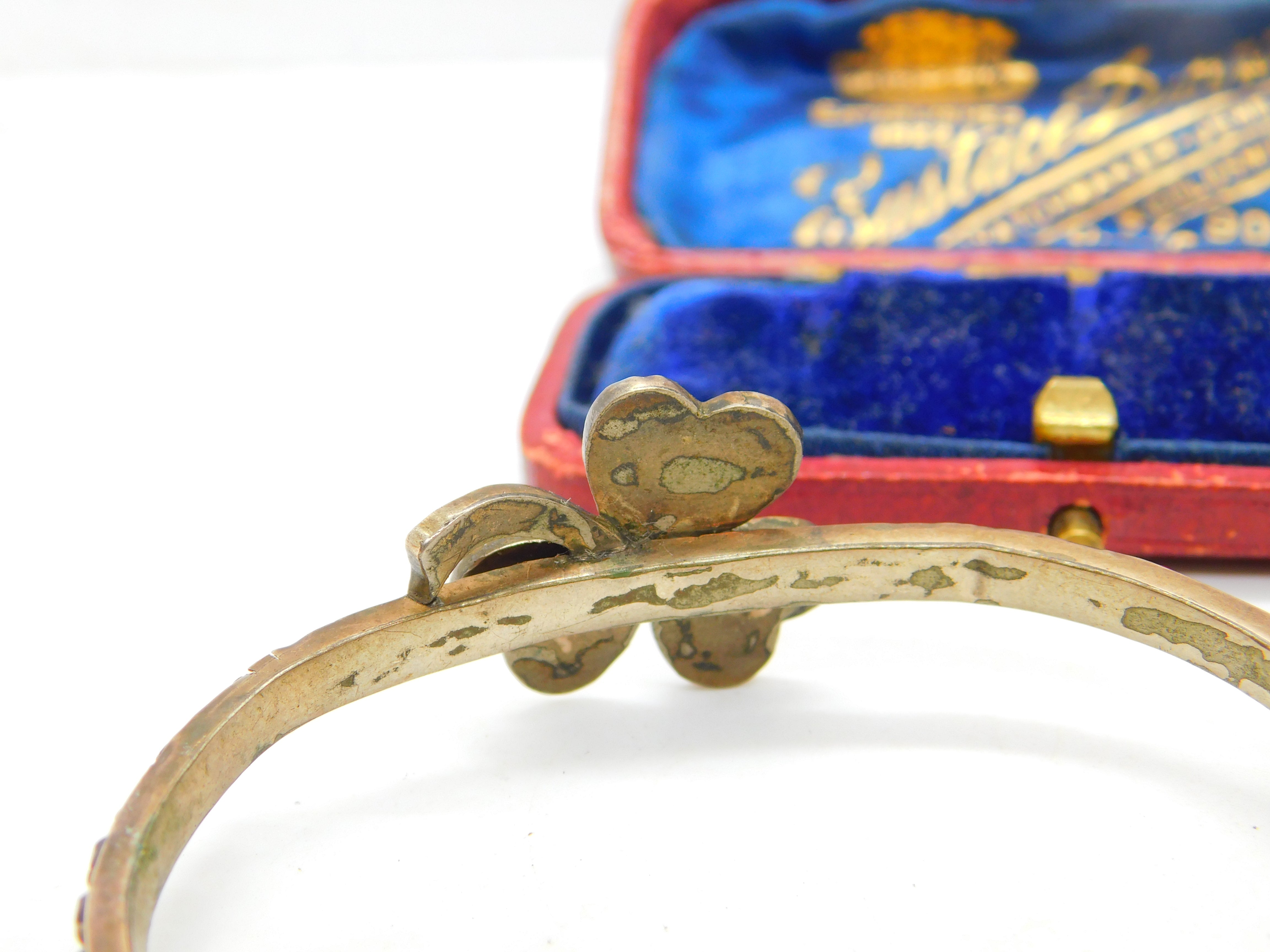 Details: A fantastic and wonderfully designed antique Victorian Austro-Hungarian 8ct yellow gold (garnet gold) bangle bracelet in the form of a good luck clover or shamrock set throughout with deep red Bohemian garnet stones c1860. The gold has been XRF tested. Minor dent to the back edge, slightly misshapen but generally a great example. This is a wonderful item that would make a perfect gift or addition to any collection. The BOX pictured is for PRESENTATION ONLY and is NOT included in the listings but used to frame the pictures unless specifically stated otherwise.