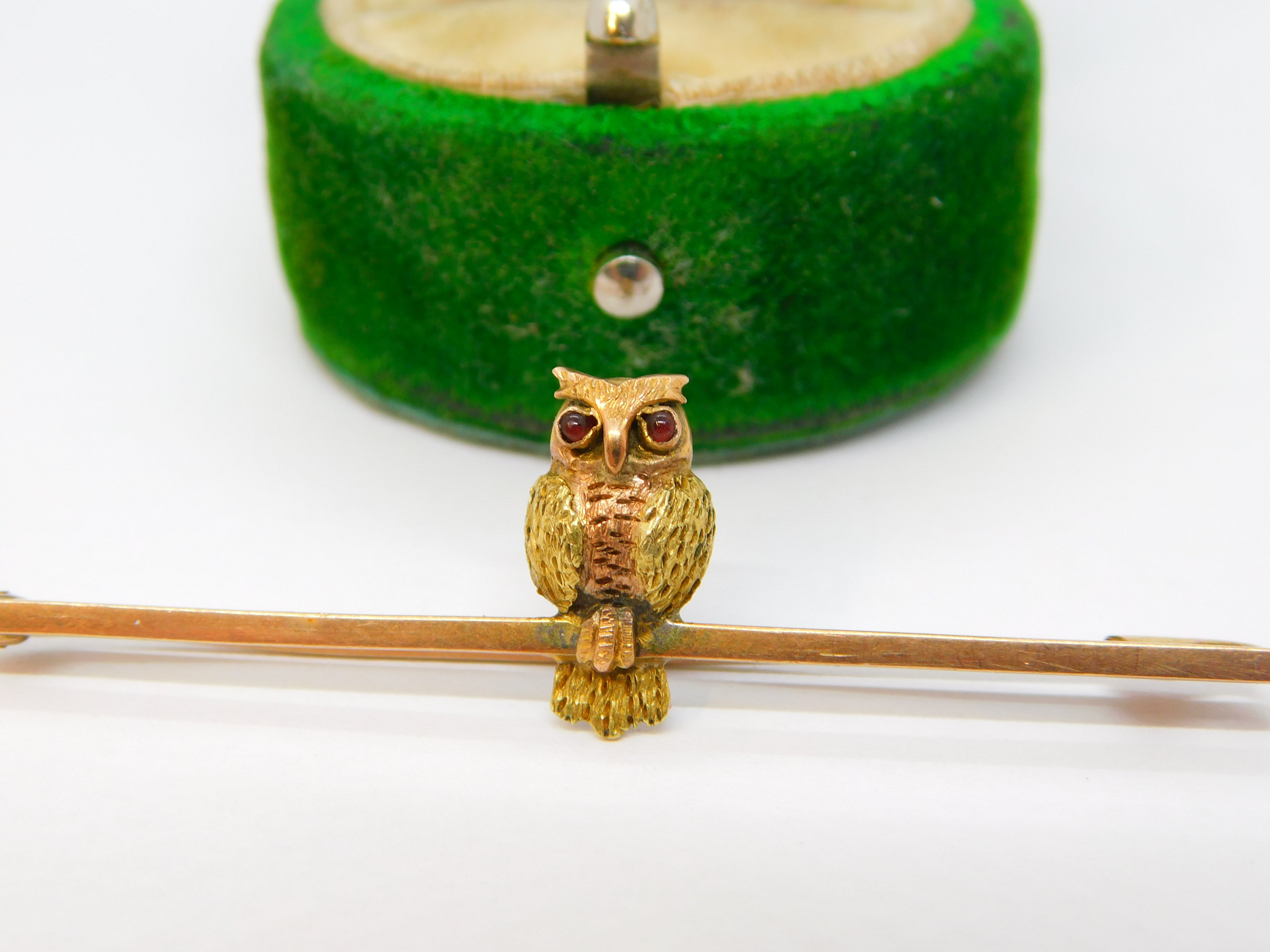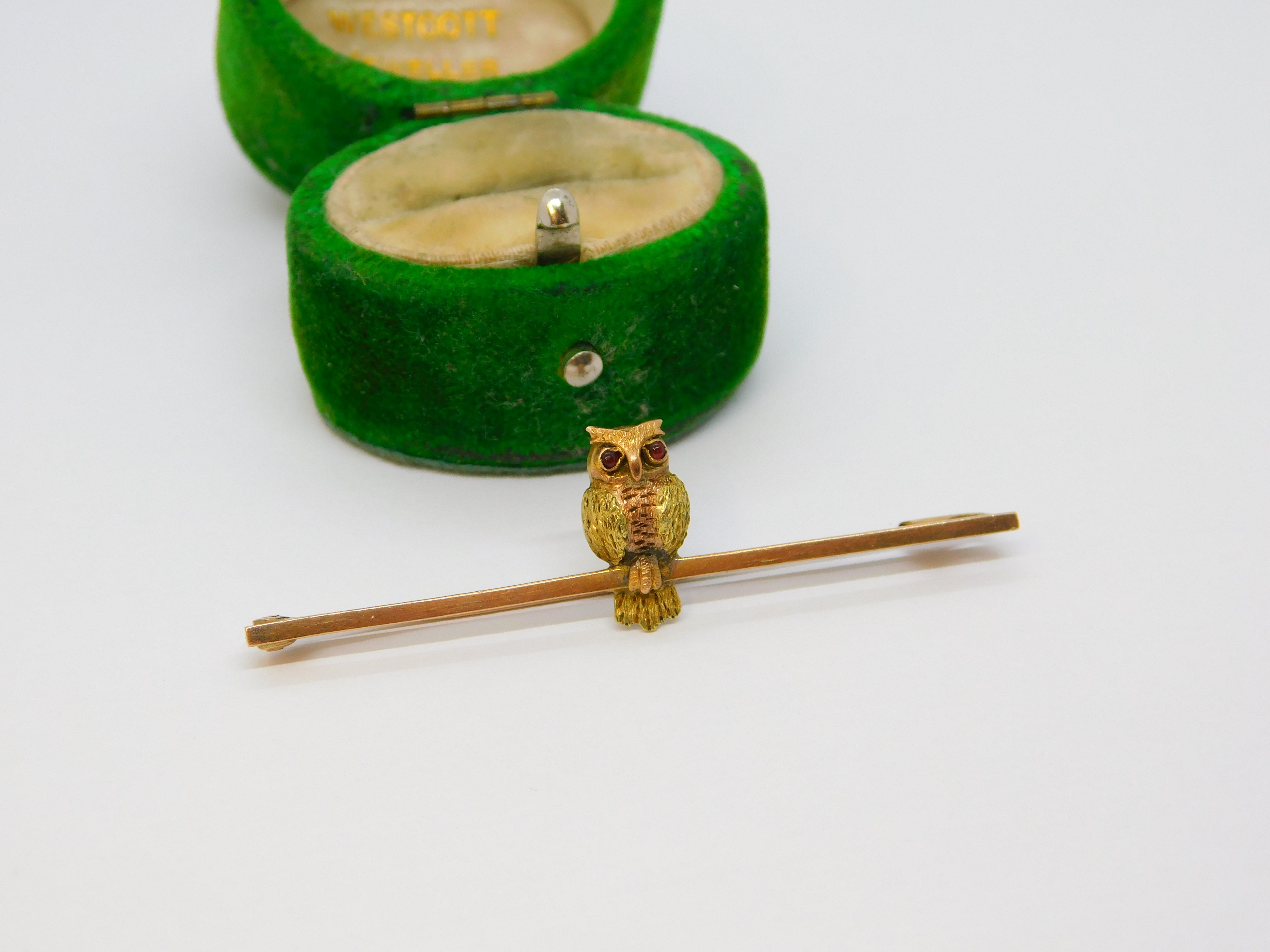 Details: A fantastic and wonderfully designed antique Victorian 9ct bi-colour gold perched owl sweetheart brooch with lovely detailing hallmarked '9ct' to the reverse c1890. This is a wonderful item that would make a perfect gift or addition to any collection. The BOX pictured is for PRESENTATION ONLY and is NOT included in the listings but used to frame the pictures unless specifically stated otherwise.