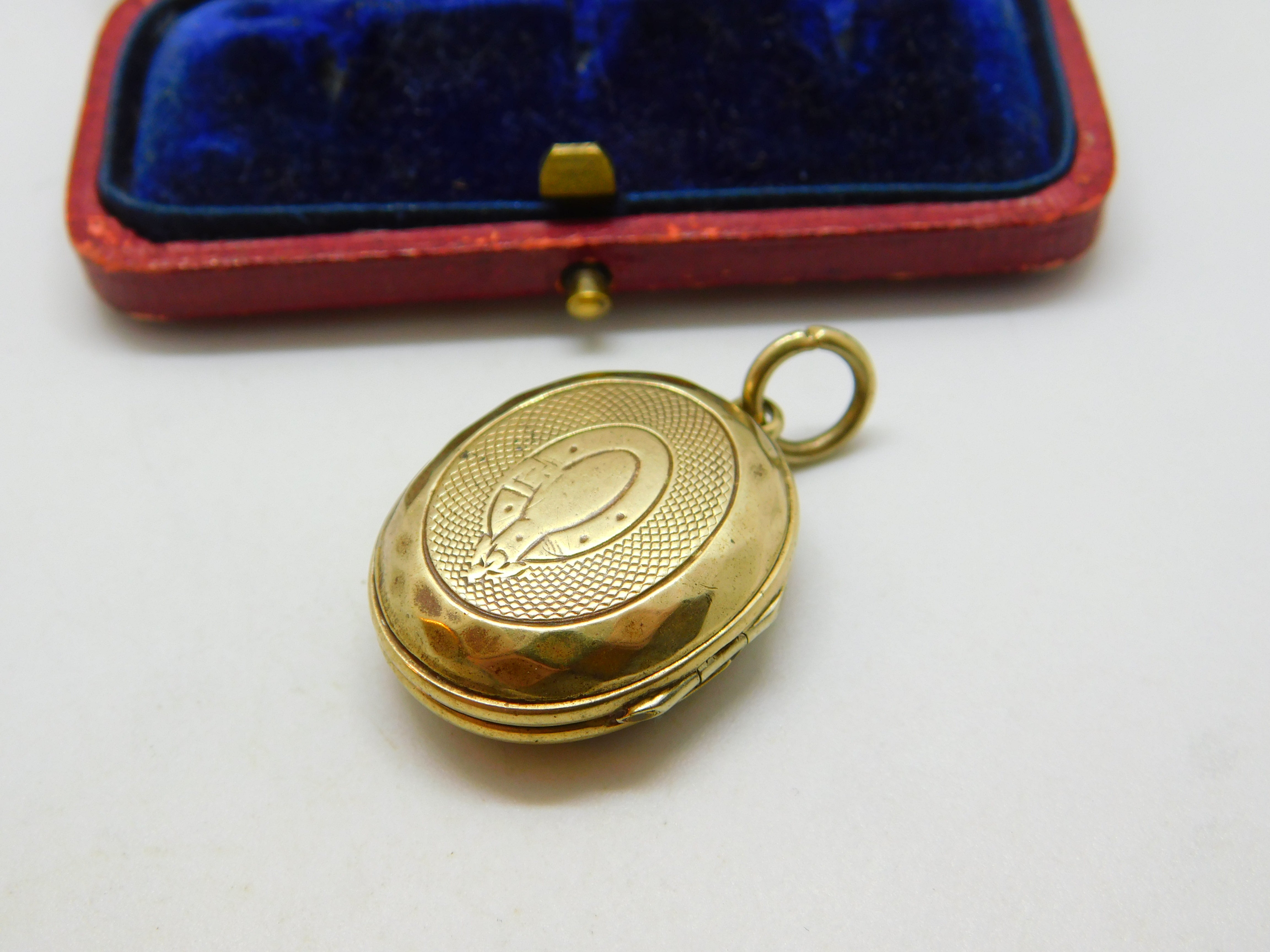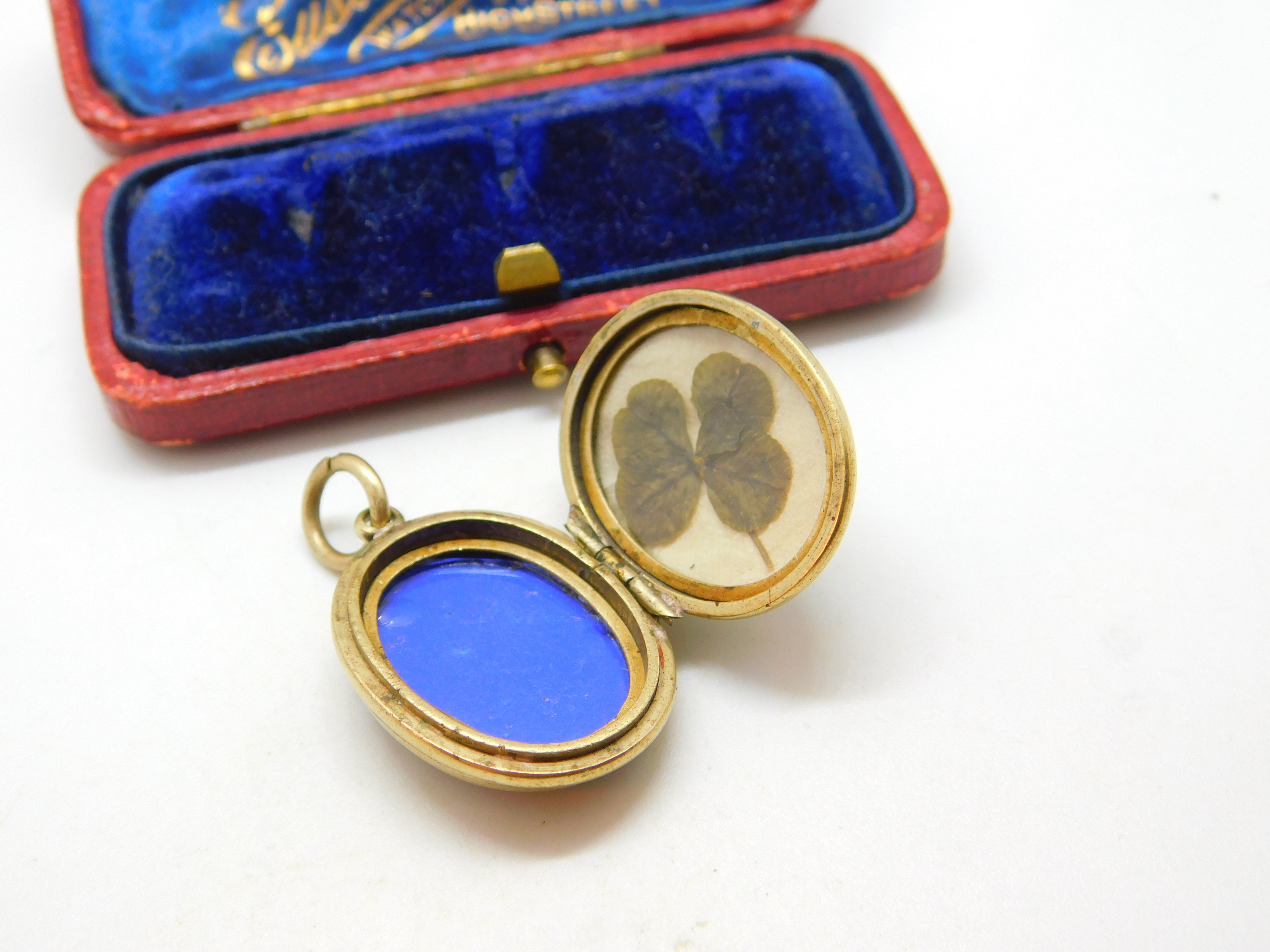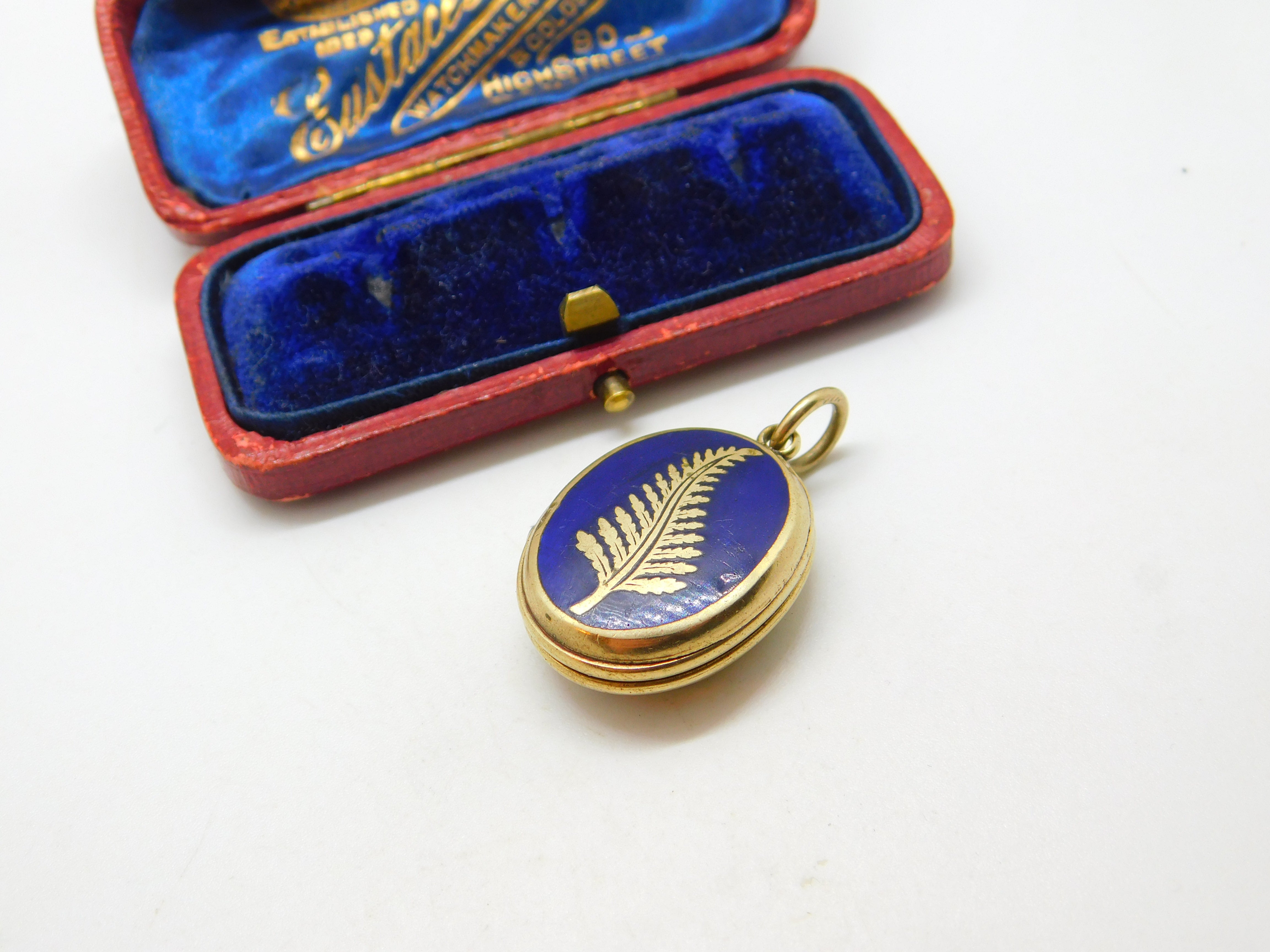 Victorian 9ct Gold Back & Front Fern Leaf Enamel Locket Antique c1890 Good Luck