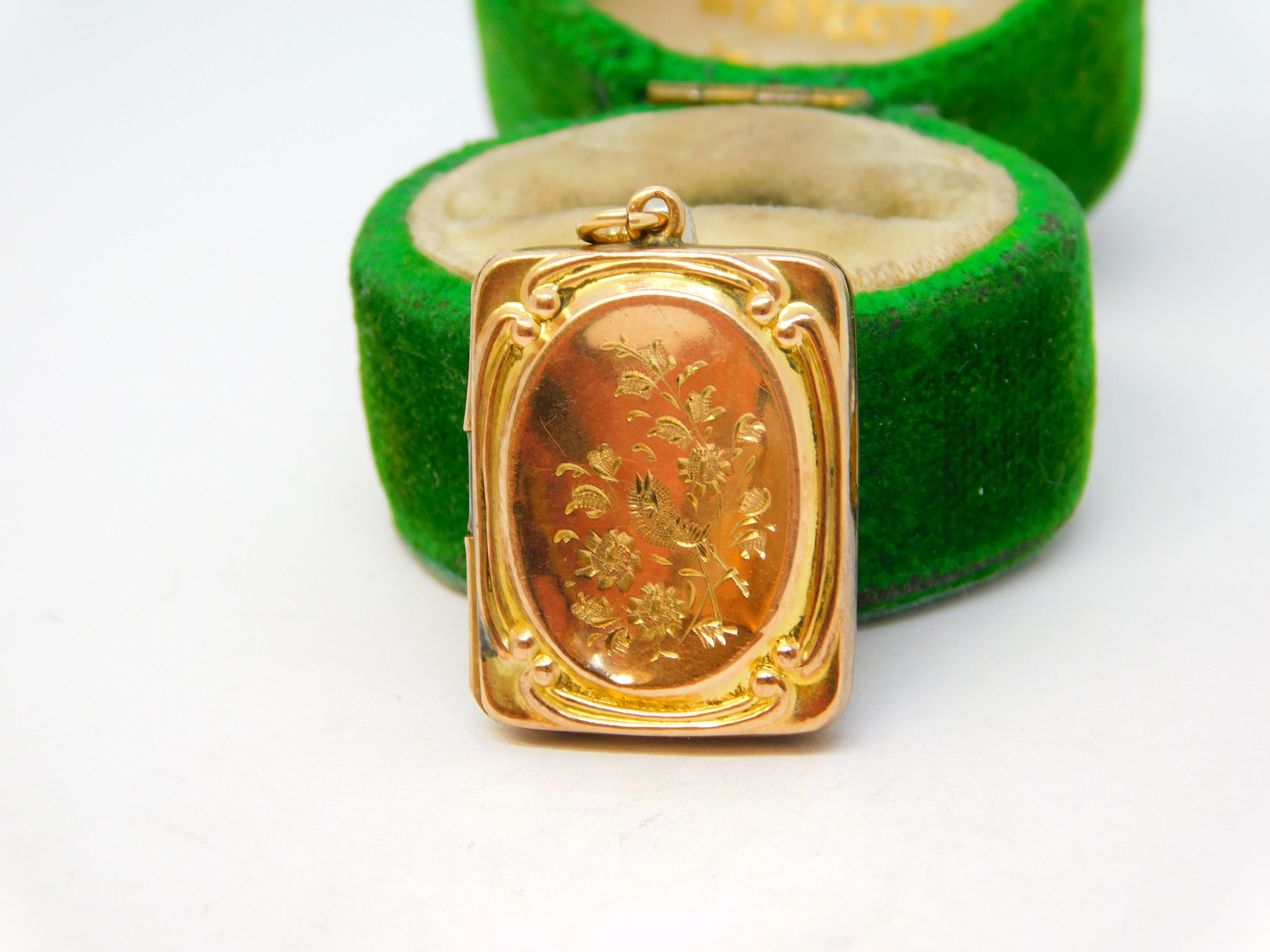 Victorian 9ct Gold Back & Front Swallow Sweetheart Locket Antique c1890