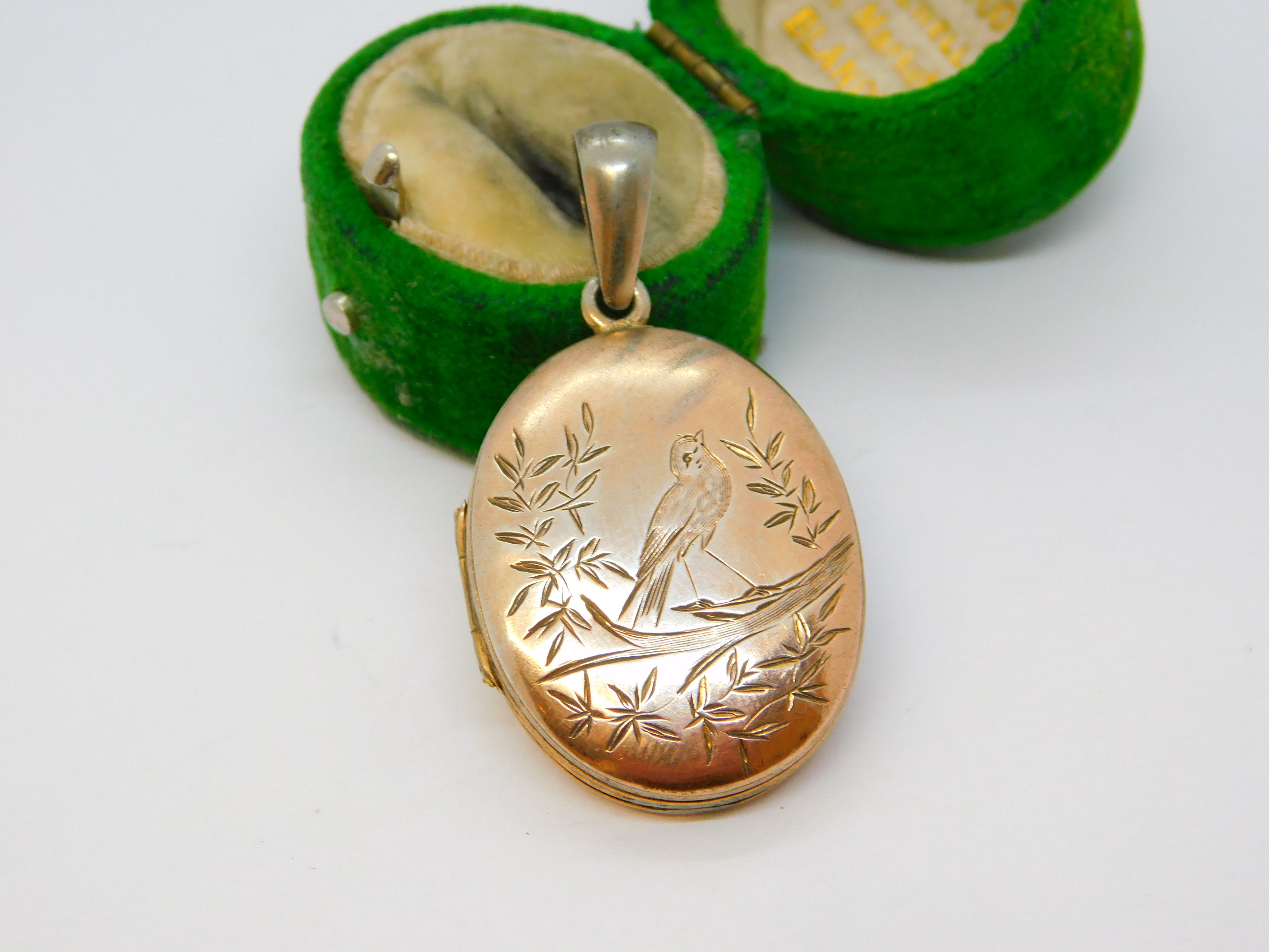 Details: A fantastic and wonderfully designed antique Victorian 9ct gold back and front locket pendant depicting a perched swallow in aesthetic movement style c1890, the gold has been XRF tested. This is a wonderful item that would make a perfect gift or addition to any collection. The BOX pictured is for PRESENTATION ONLY and is NOT included in the listings but used to frame the pictures unless specifically stated otherwise.
