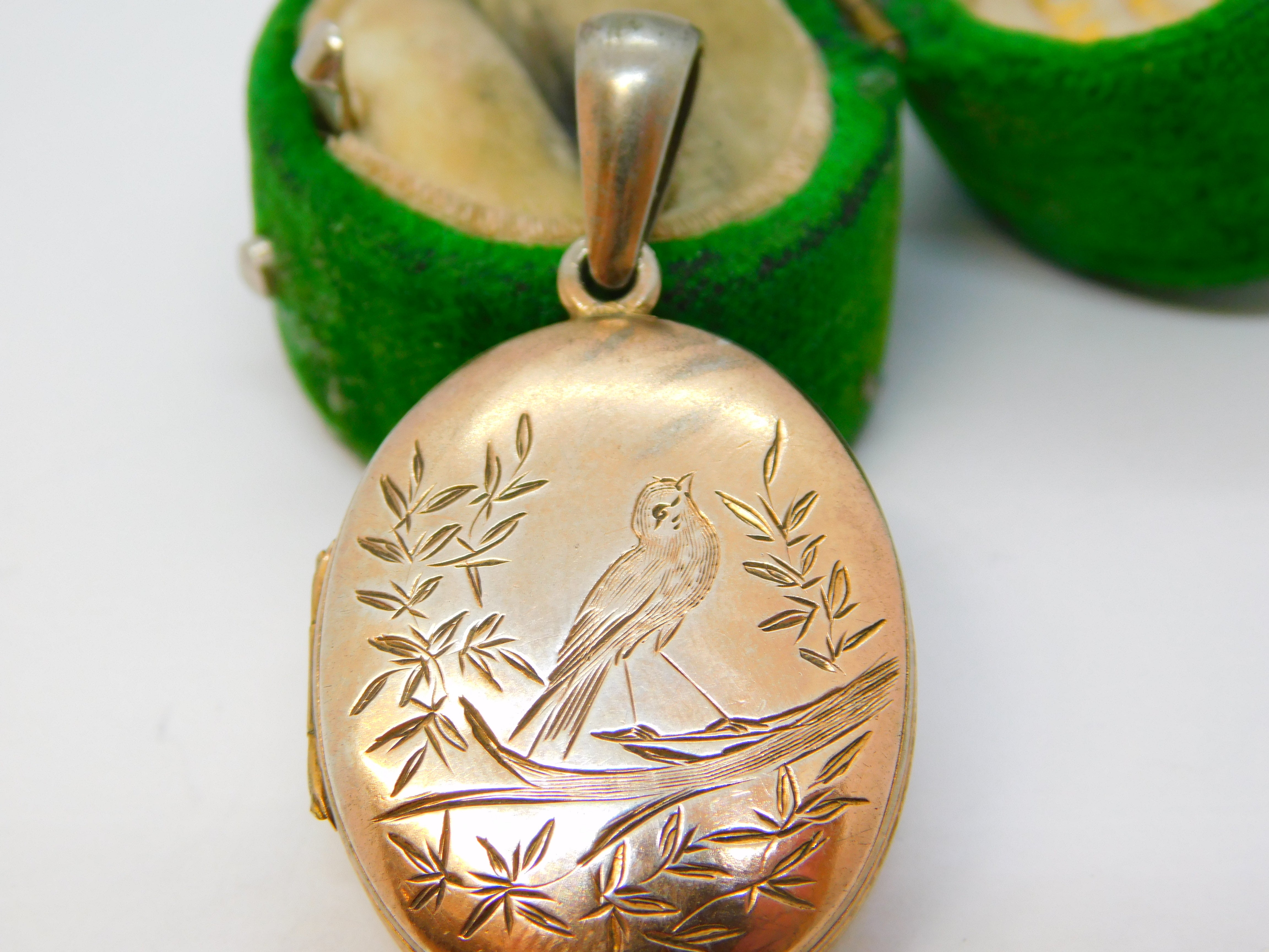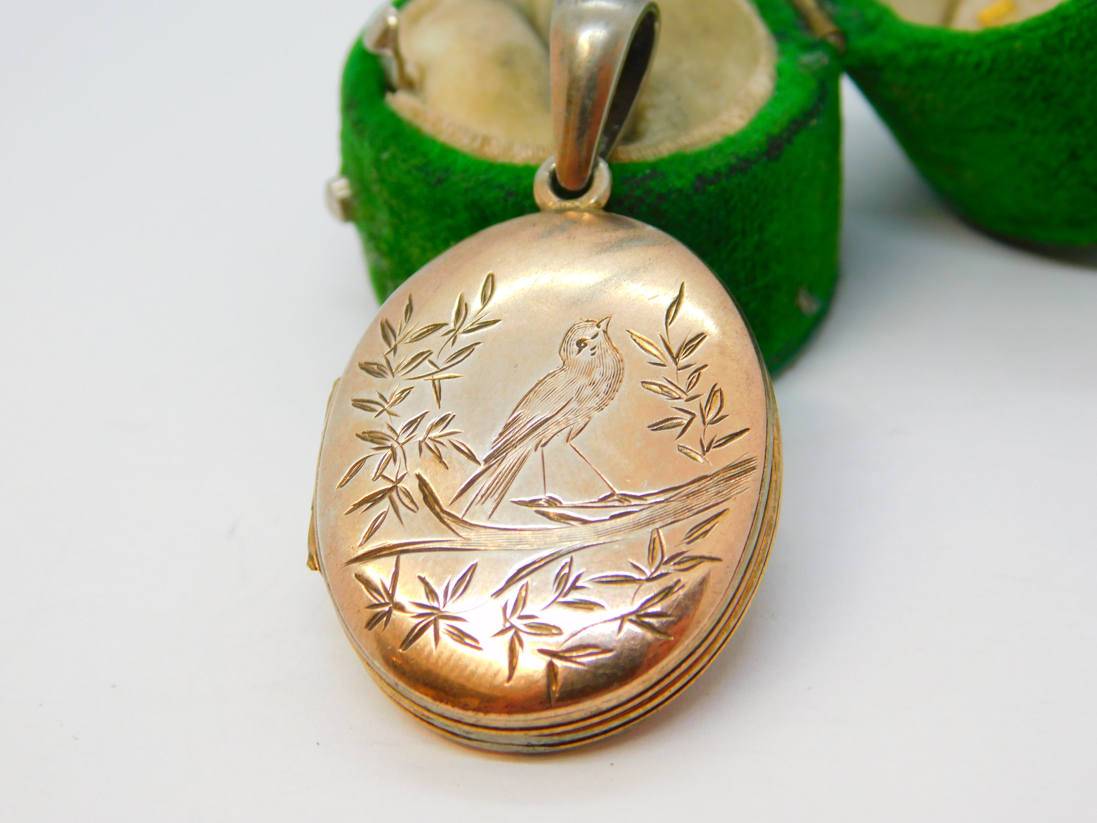 Victorian 9ct Gold Back & Front Swallow Sweetheart Locket Pendant Antique