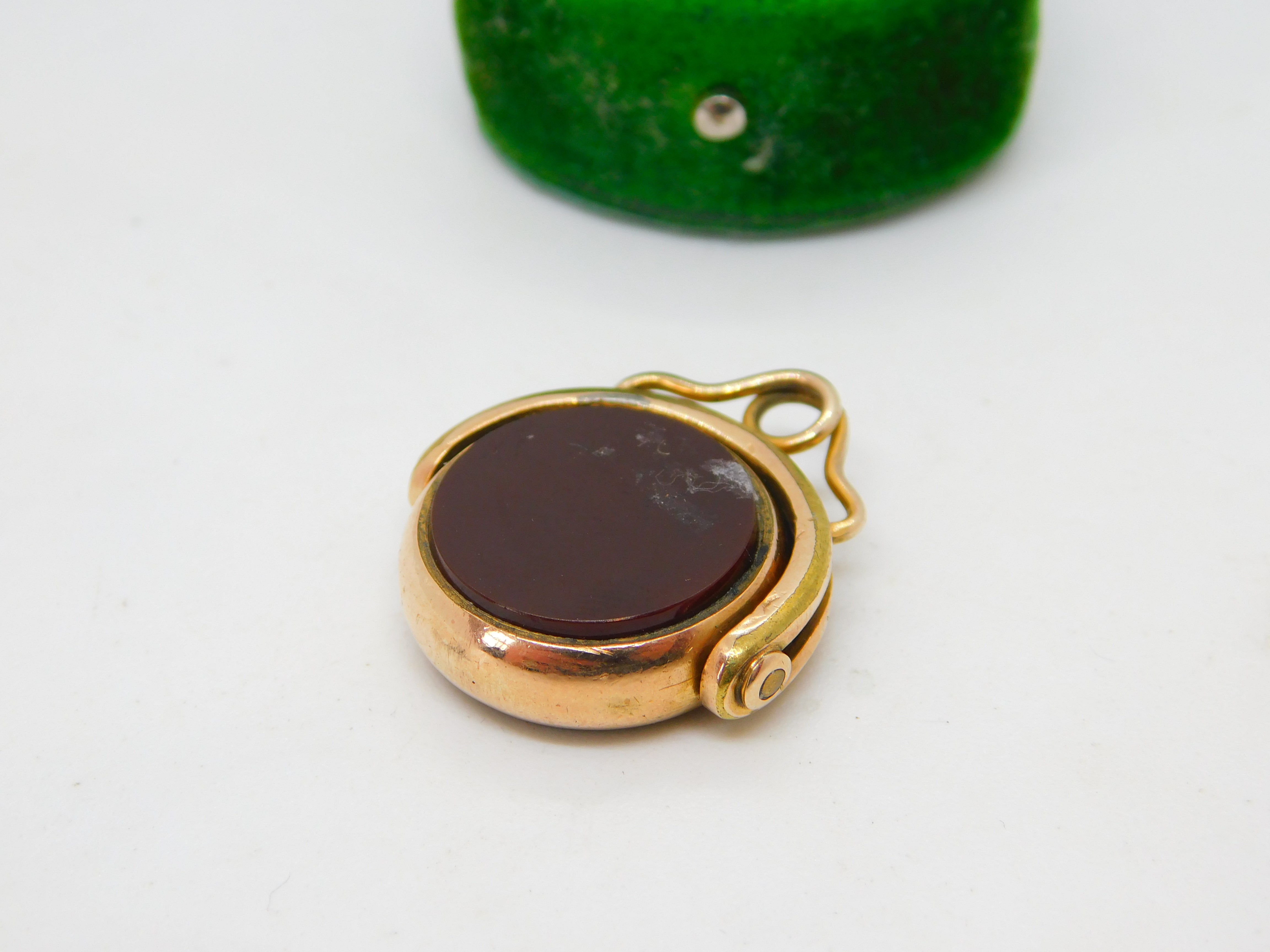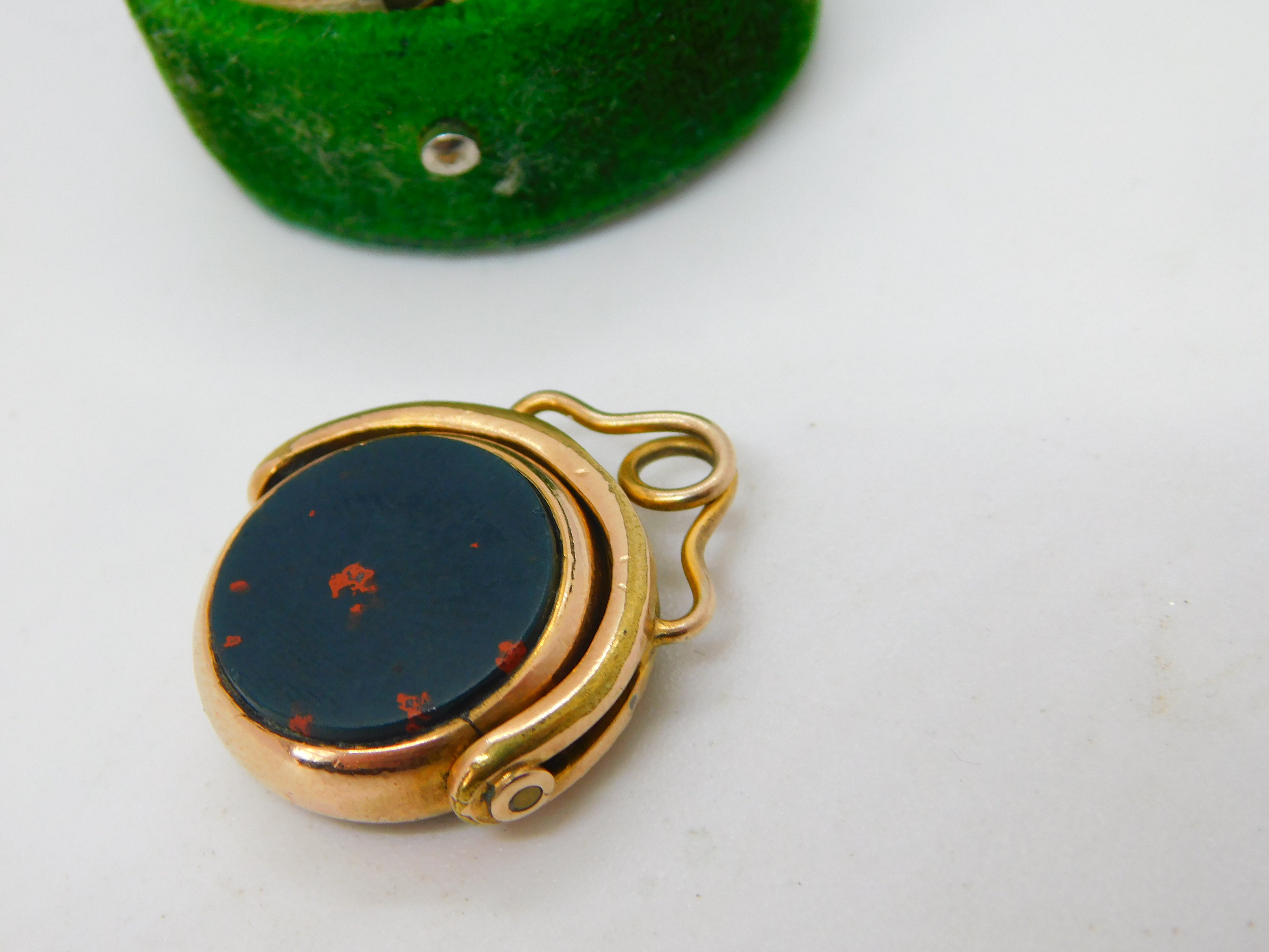 Victorian 9ct Gold, Bloodstone & Carnelian Spinner Fob Pendant Antique c1880