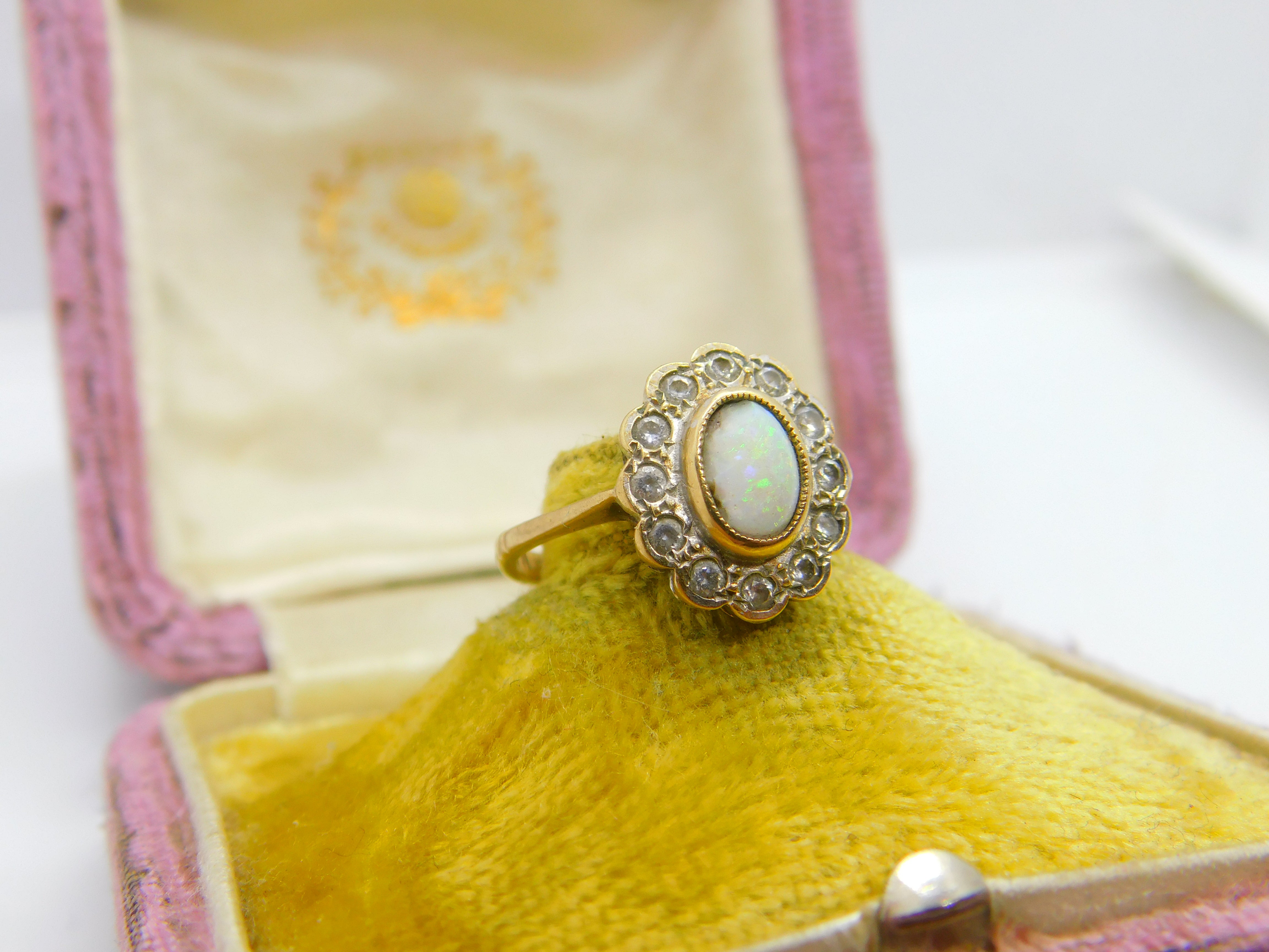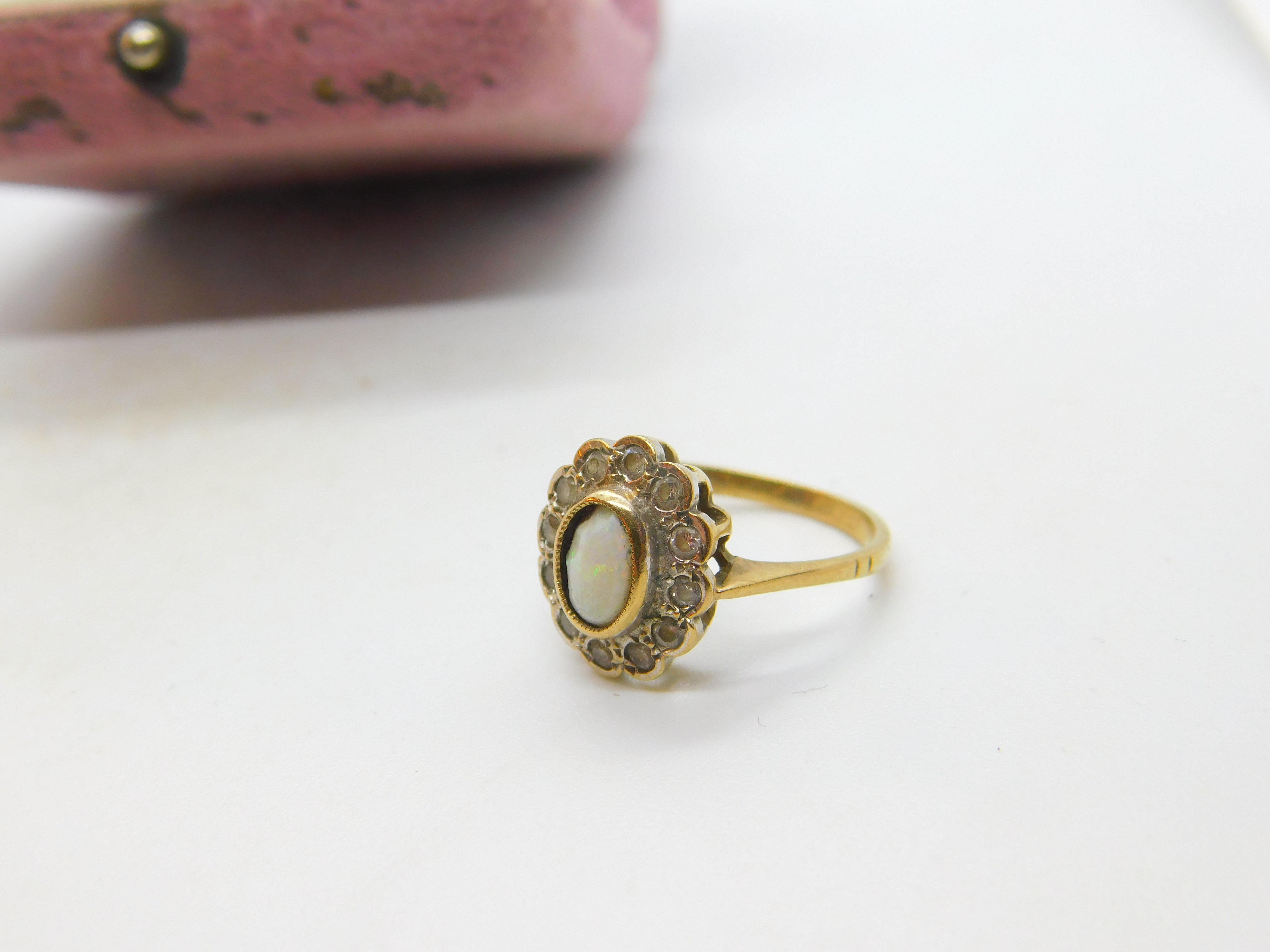 Victorian 9ct Gold, Cabochon Opal & White Spinel Floral Cluster Ring c1880