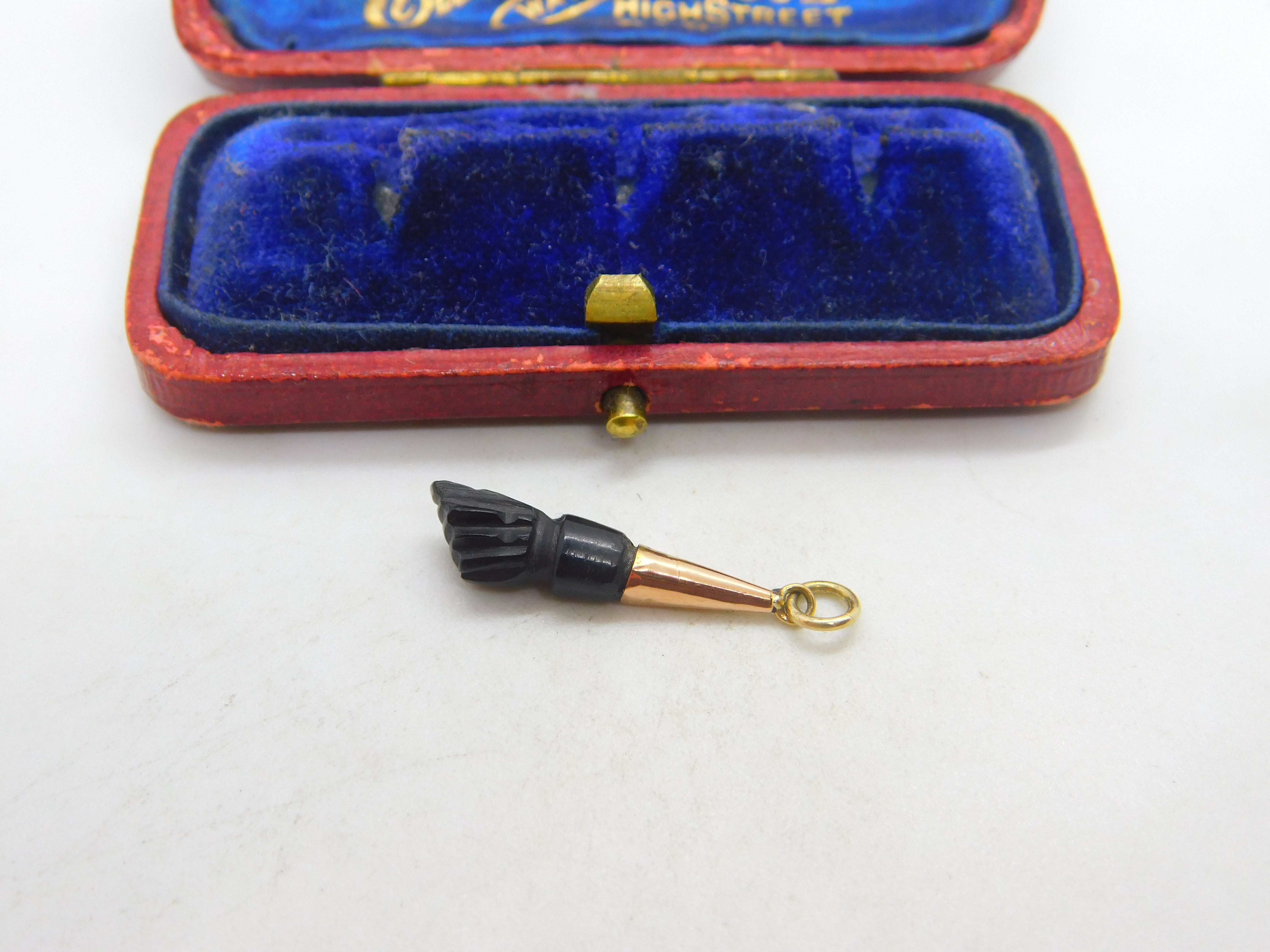 Details: A fantastic and wonderfully designed antique Victorian 9ct rose gold and carved black hardstone figa hand charm or pendant c1890 - the gold has been XRF tested. This is a wonderful item that would make a perfect gift or addition to any collection. The BOX pictured is for PRESENTATION ONLY and is NOT included in the listings but used to frame the pictures unless specifically stated otherwise.