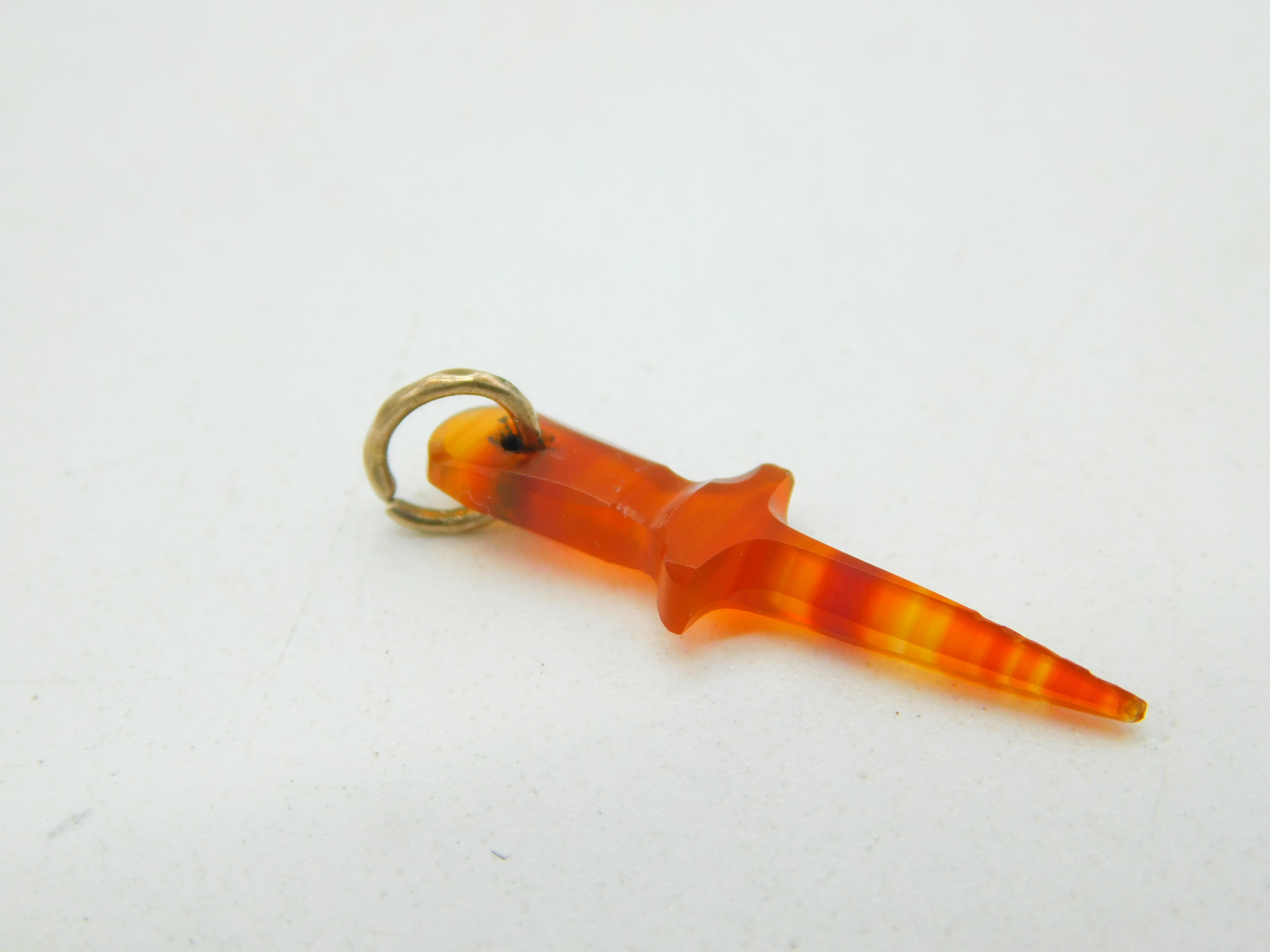 Victorian 9ct Gold & Carved Red Agate Miniature Dirk Charm Pendant Antique c1840