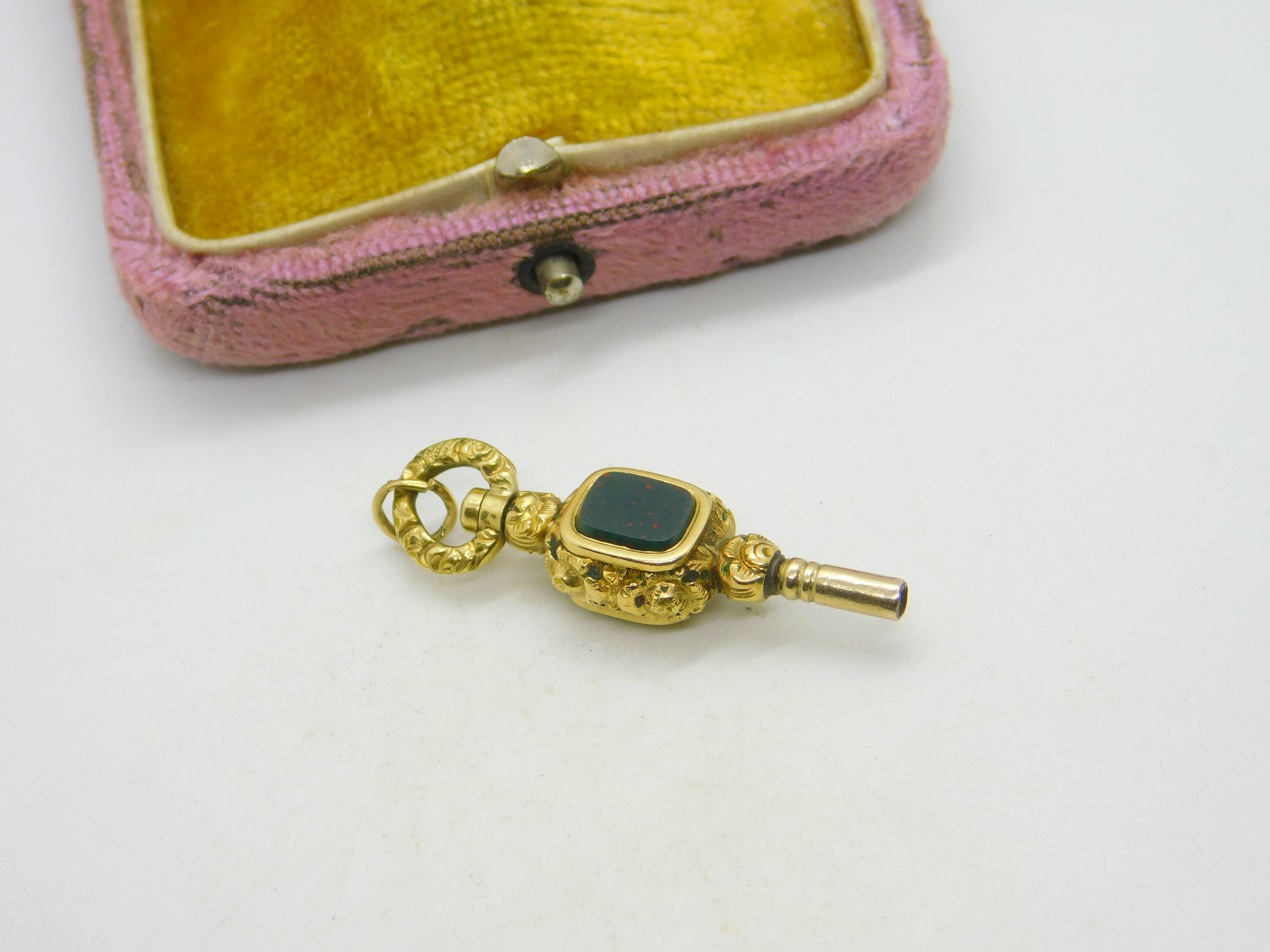 Victorian 9ct Gold Cased Bloodstone & Chalcedony Watch Key Fob Antique c1860