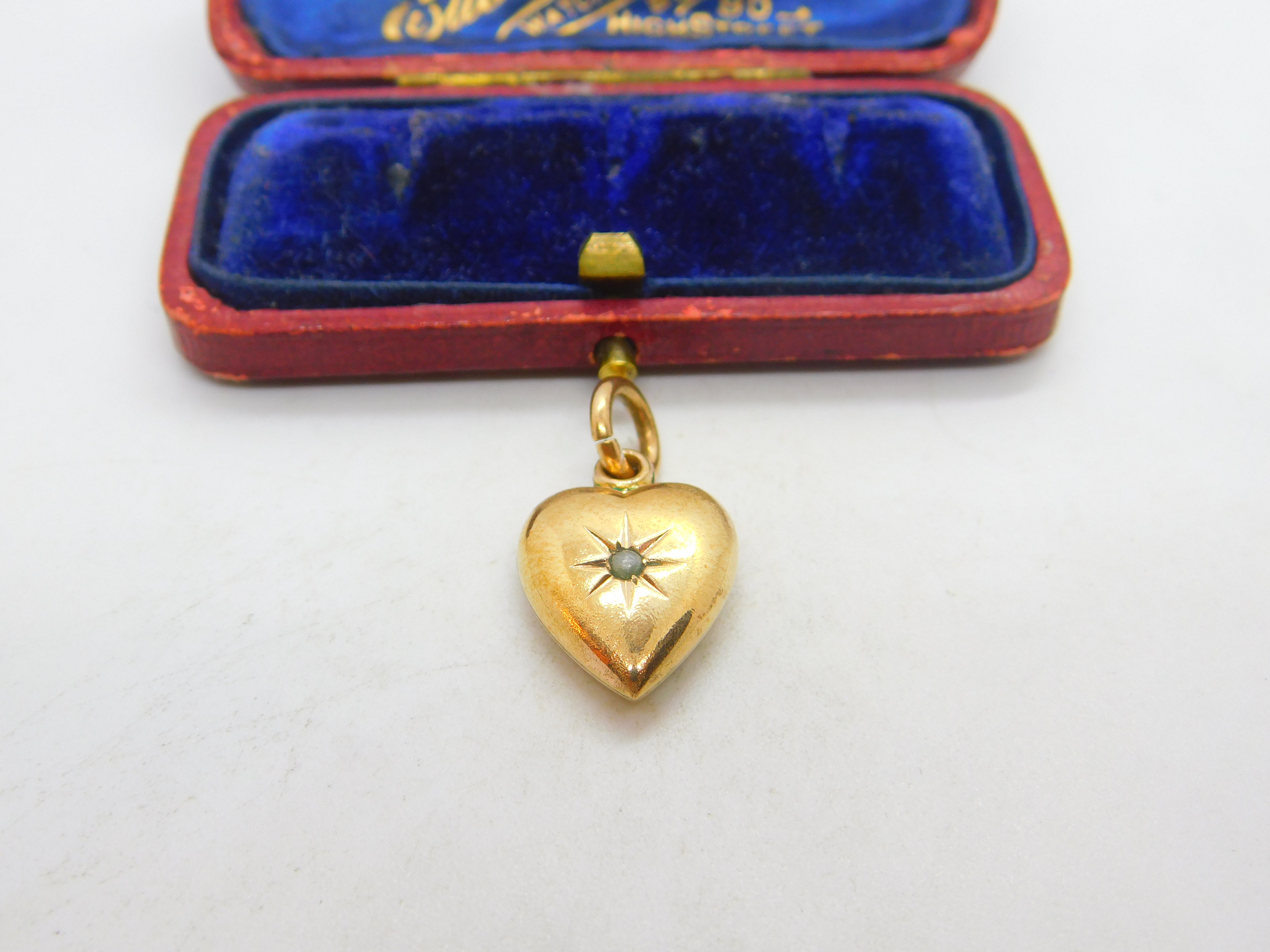 Victorian 9ct Gold Cased Seed Pearl Heart Charm or Pendant Antique c1890