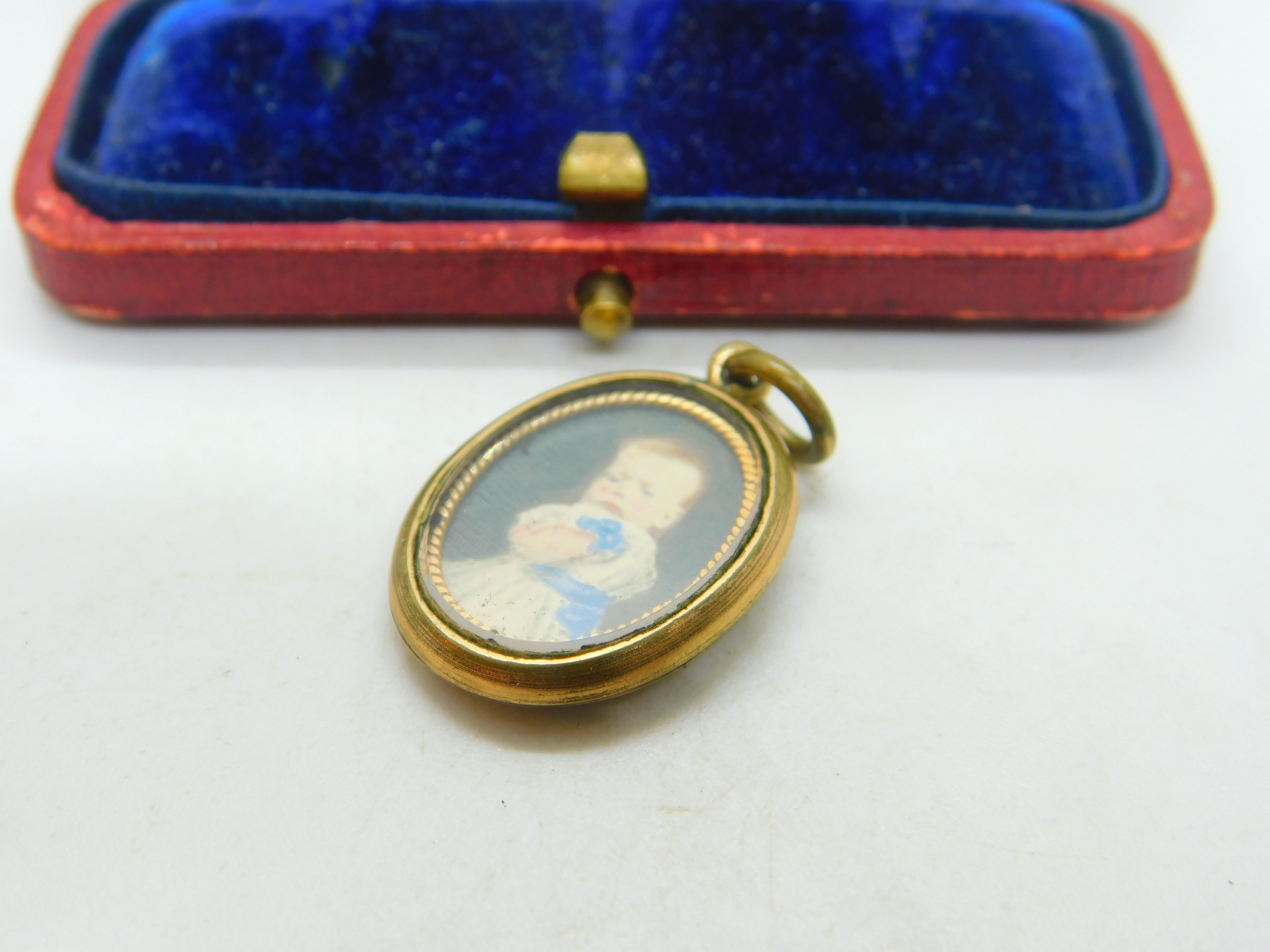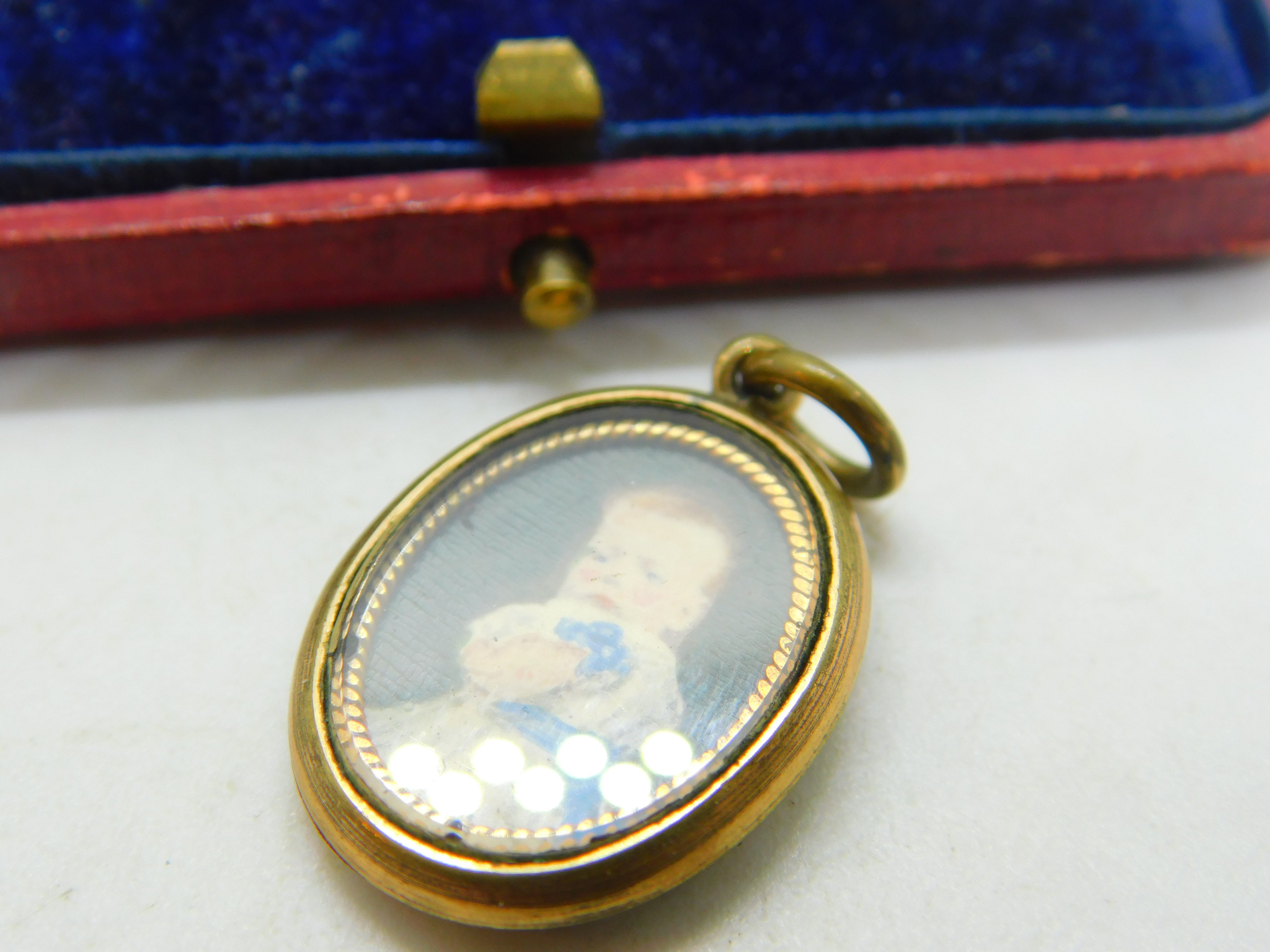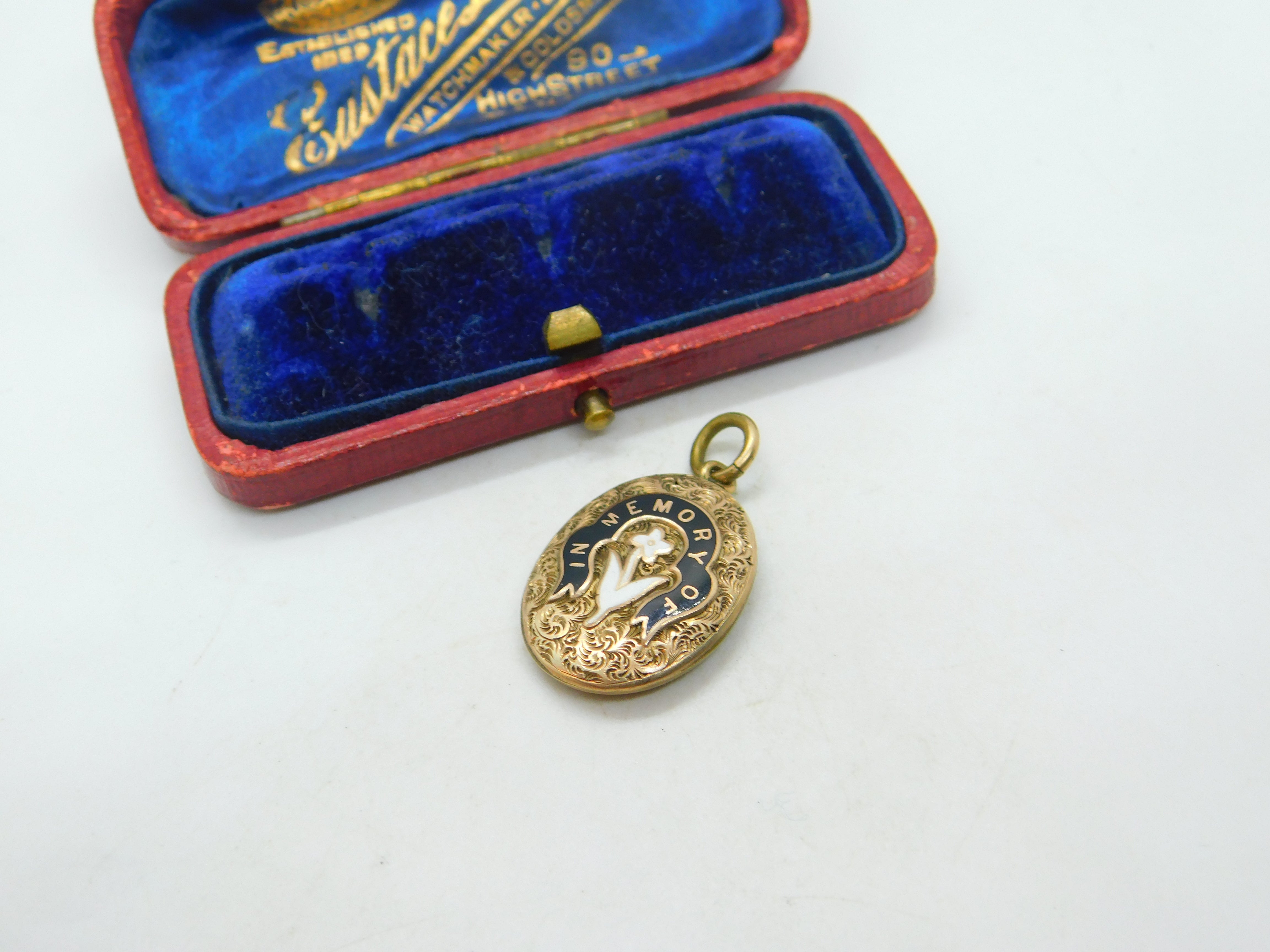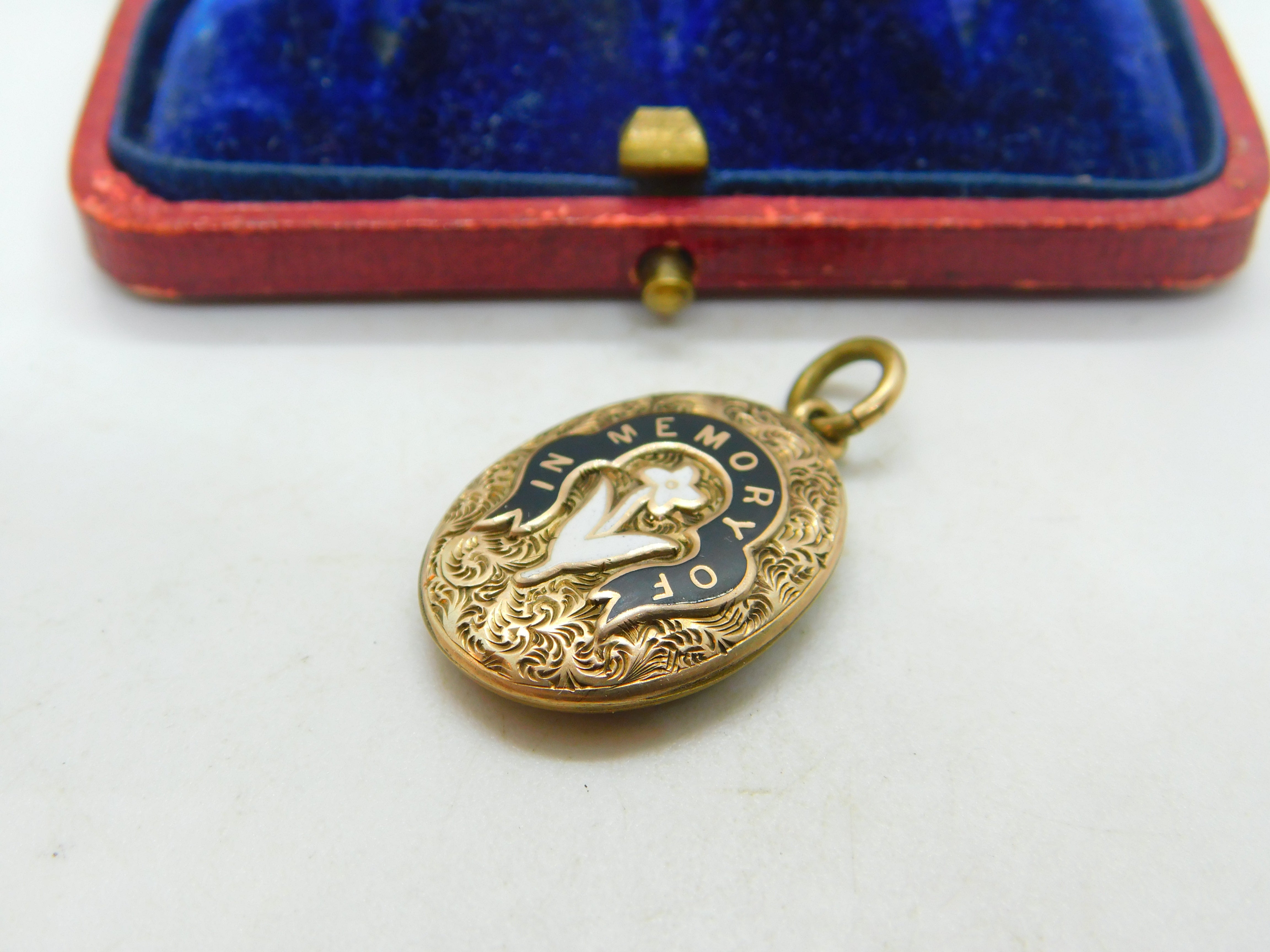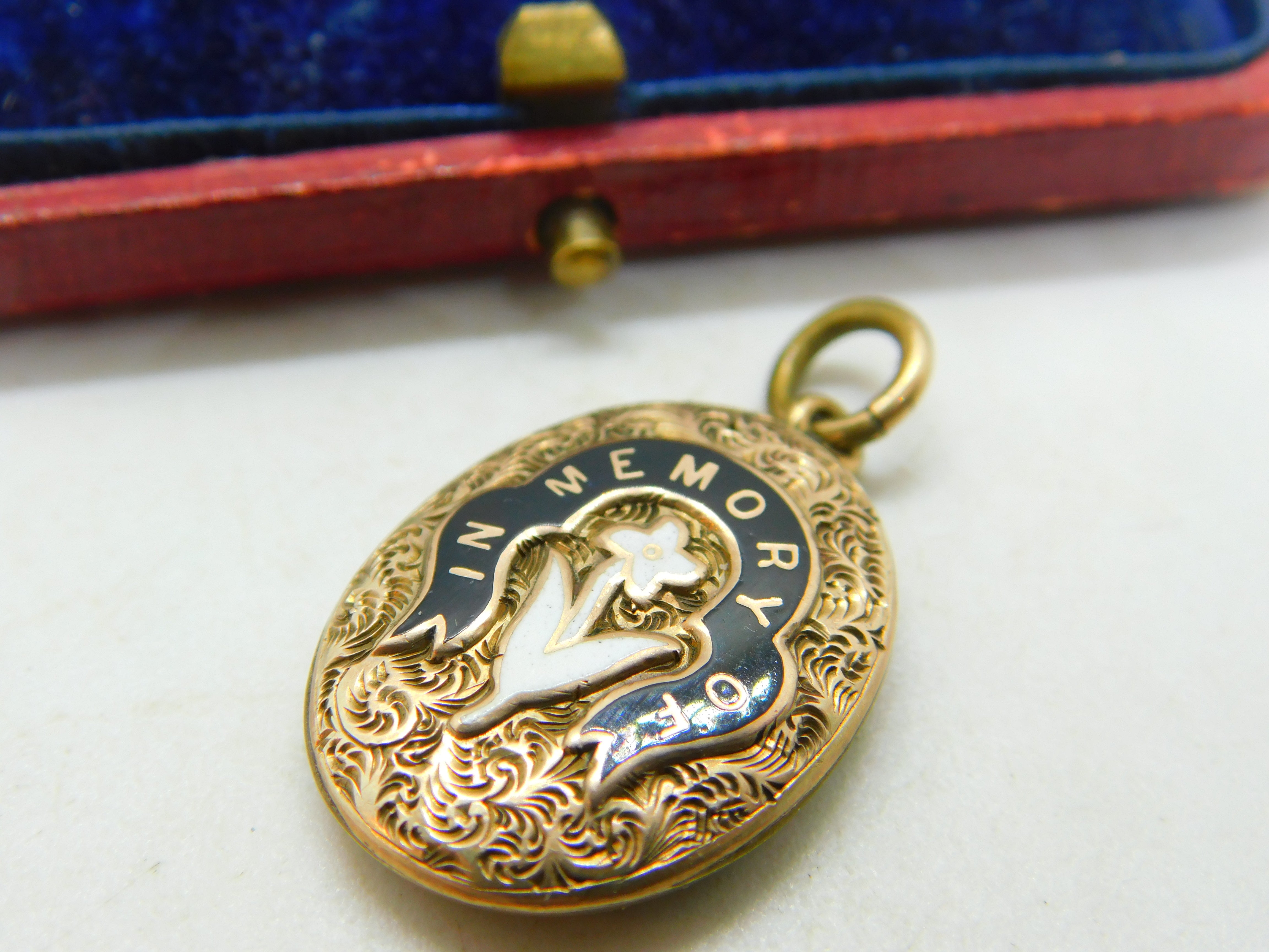 Victorian 9ct Gold & Enamel 'In Memory Of' Watercolour Miniature Locket Antique