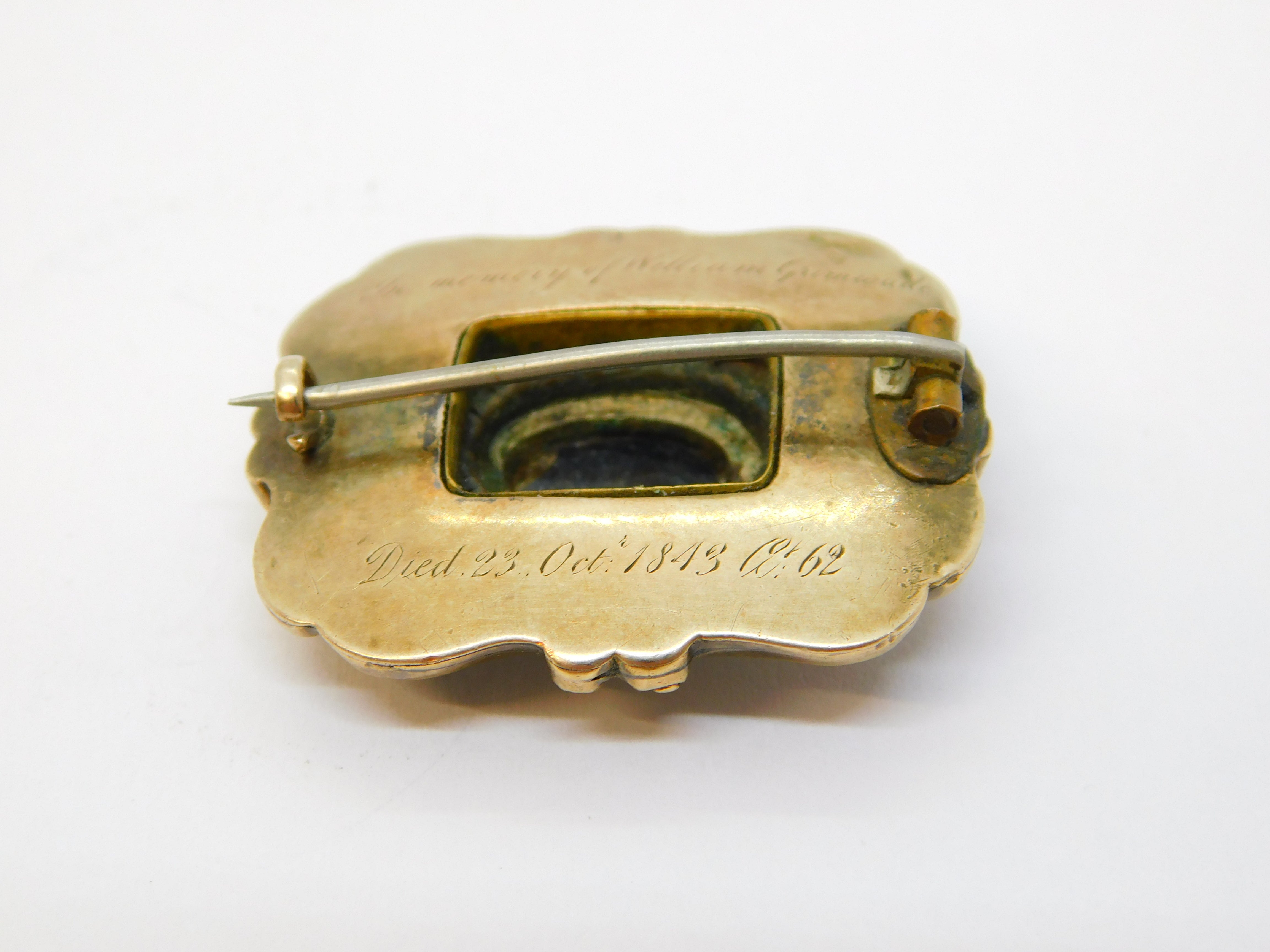 Victorian 9ct Gold, Enamel, Pearl, Hardstone Mourning Brooch Antique 1843 'William Grimwade'