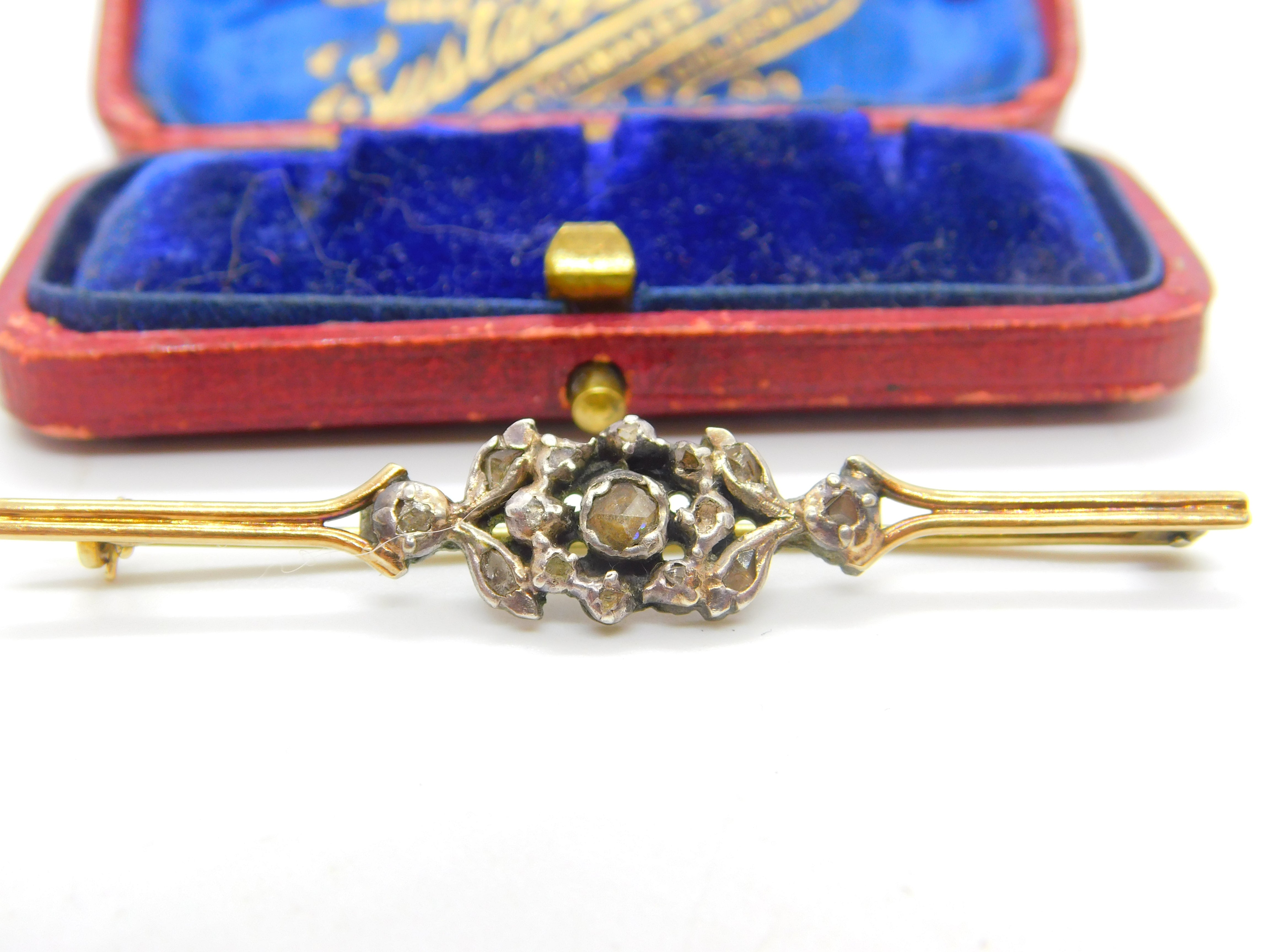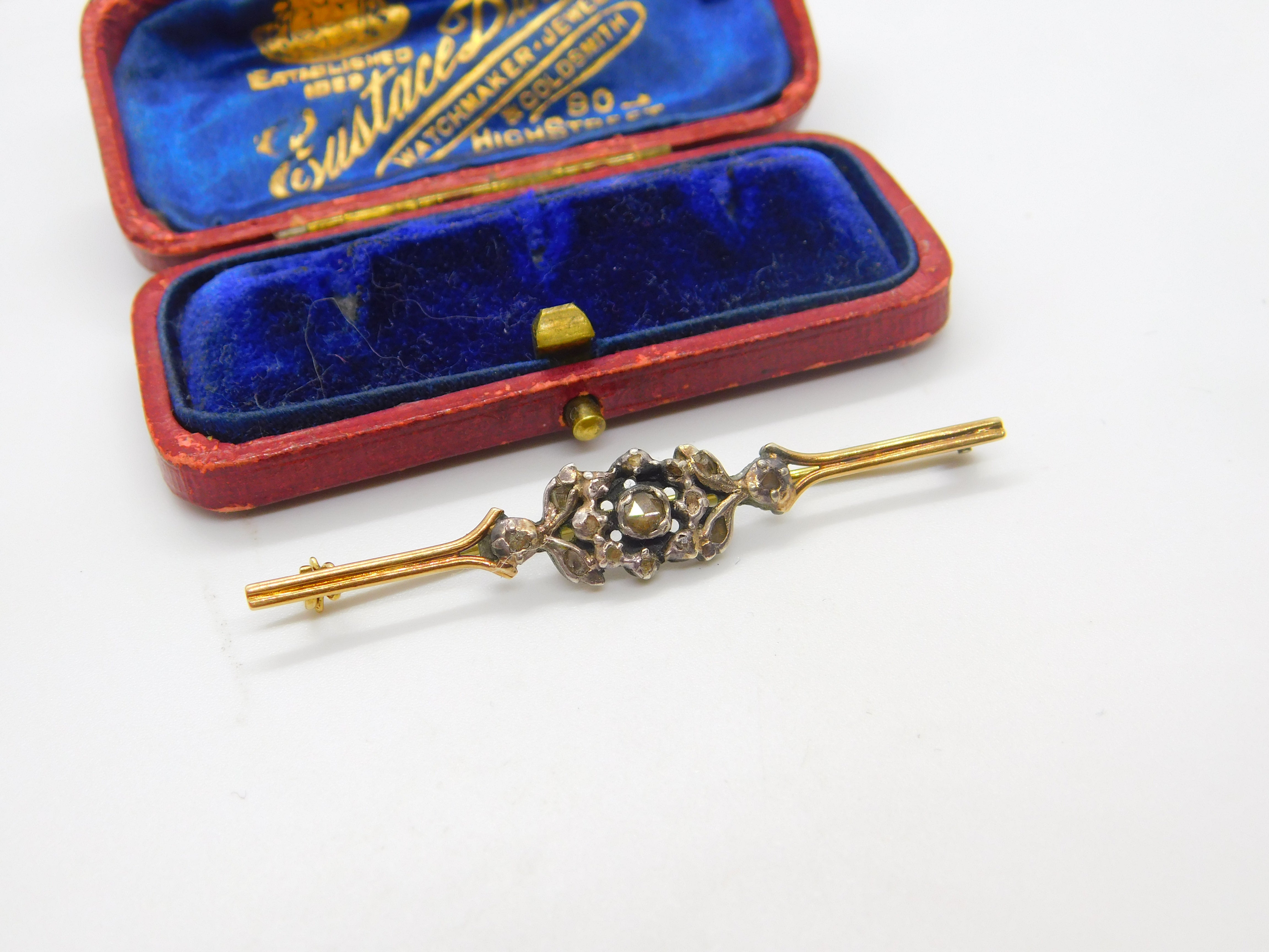 Details: A fantastic and wonderfully designed antique Victorian 9ct yellow gold conversion bar brooch set with gorgeous 18ct gold central set panel with approx 0.5ct of rose cut diamonds, the central stone measuring approx. 0.2ct c1860. The diamonds have all been tested and the brooch has been acid tested. This is a wonderful item that would make a perfect gift or addition to any collection. The BOX pictured is for PRESENTATION ONLY and is NOT included in the listings but used to frame the pictures unless specifically stated otherwise.