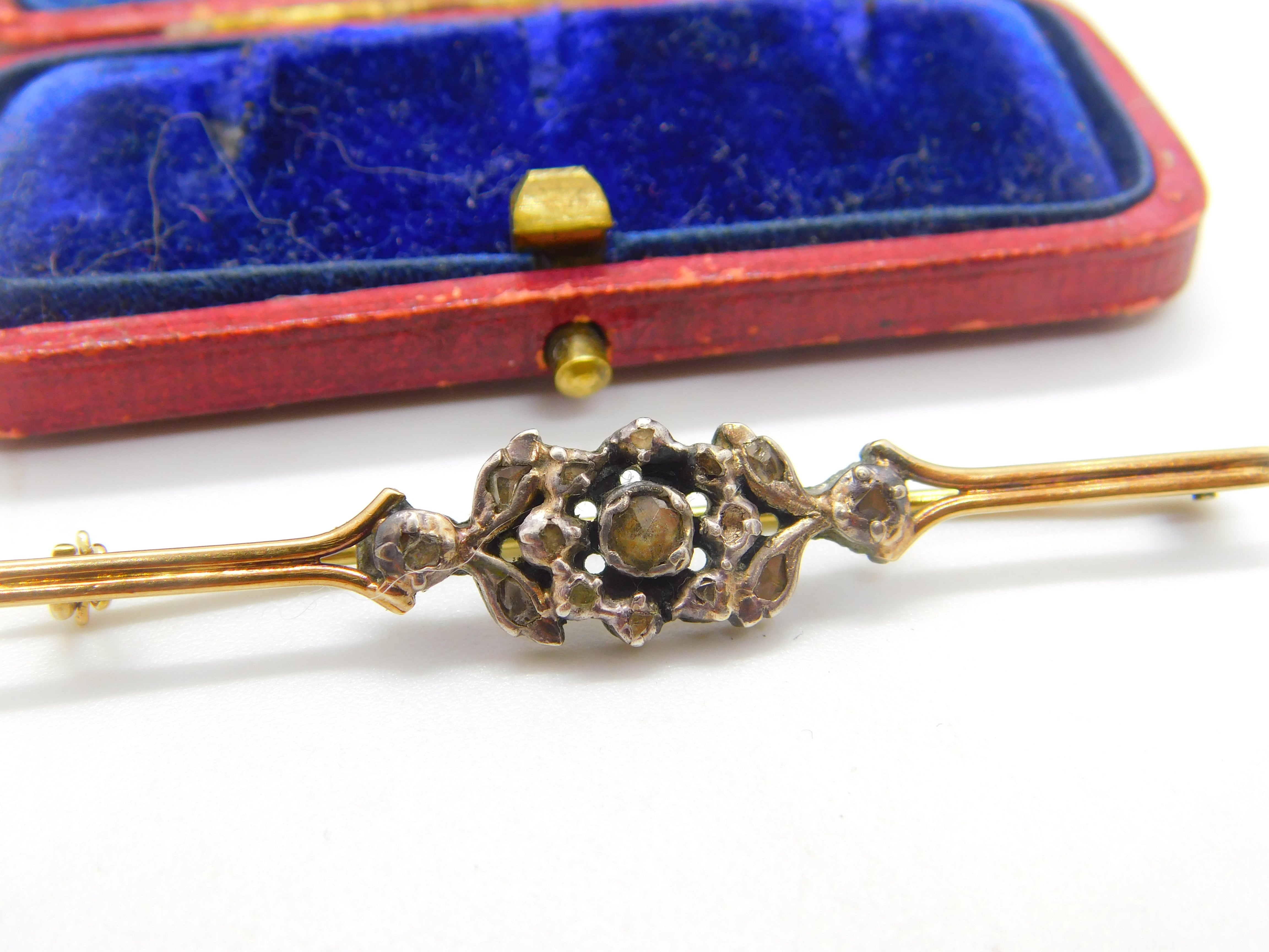 Victorian 9ct Gold Floral Brooch with 0.5ct Rose Cut Diamonds Antique c1860
