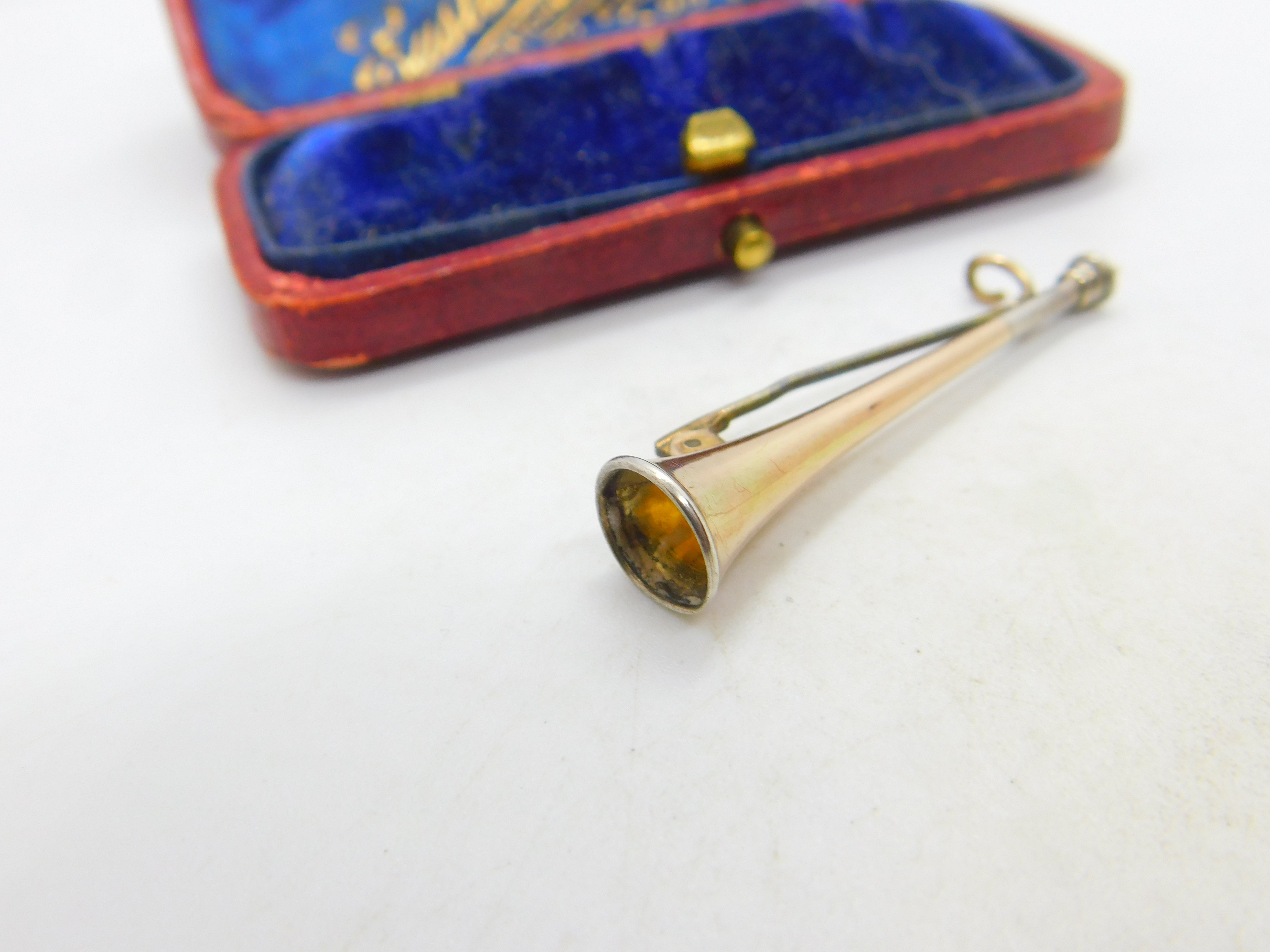 Victorian 9ct Gold Hunting Horn Stock Pin Brooch Antique c1890 Silver Tips