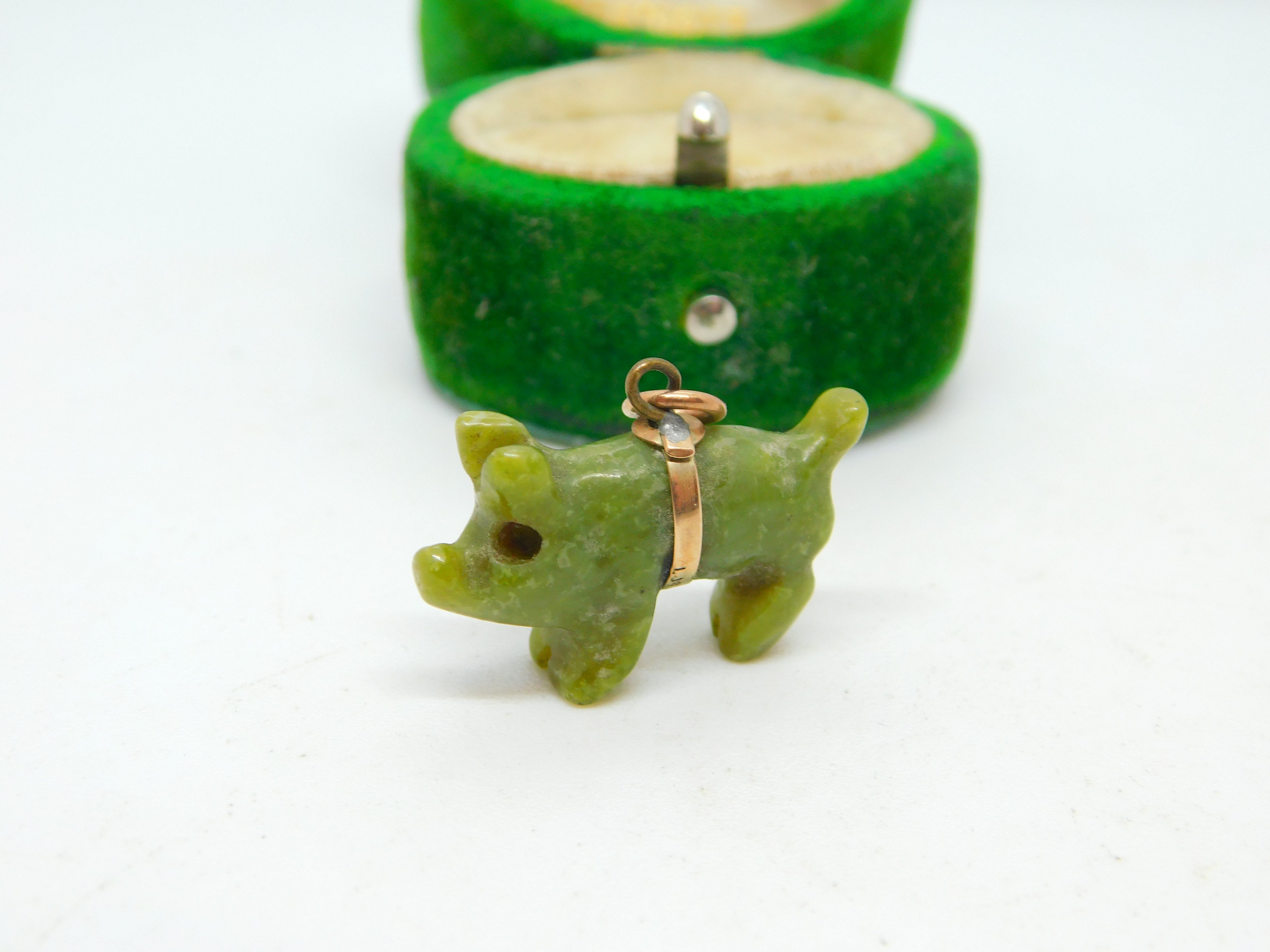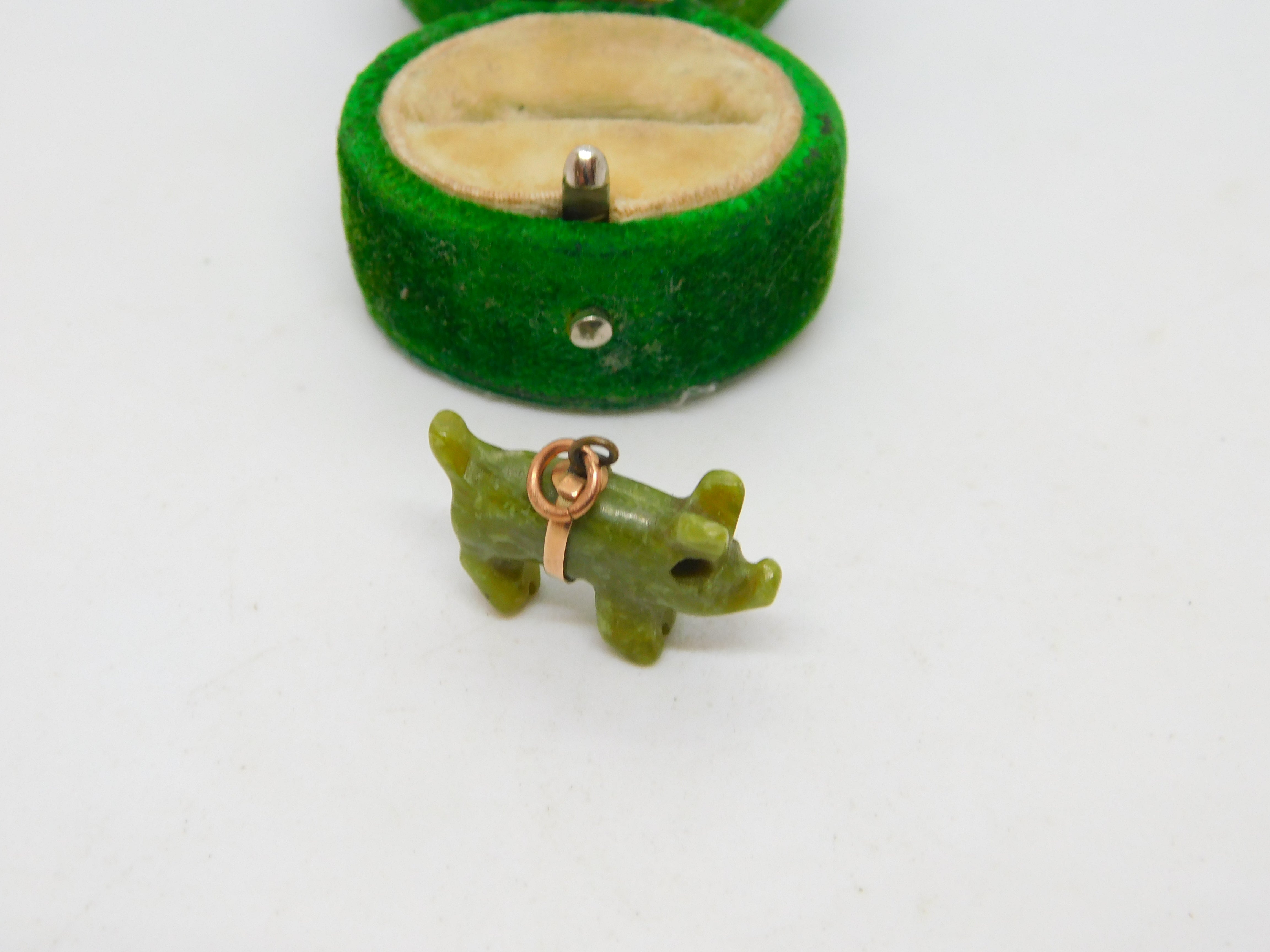 Details: A fantastic and wonderfully designed antique Victorian 9ct rose gold mounted connemara marble carved pig charm pendant hallmarked to the bottom edge c1880. This is a wonderful item that would make a perfect gift or addition to any collection. The BOX pictured is for PRESENTATION ONLY and is NOT included in the listings but used to frame the pictures unless specifically stated otherwise.