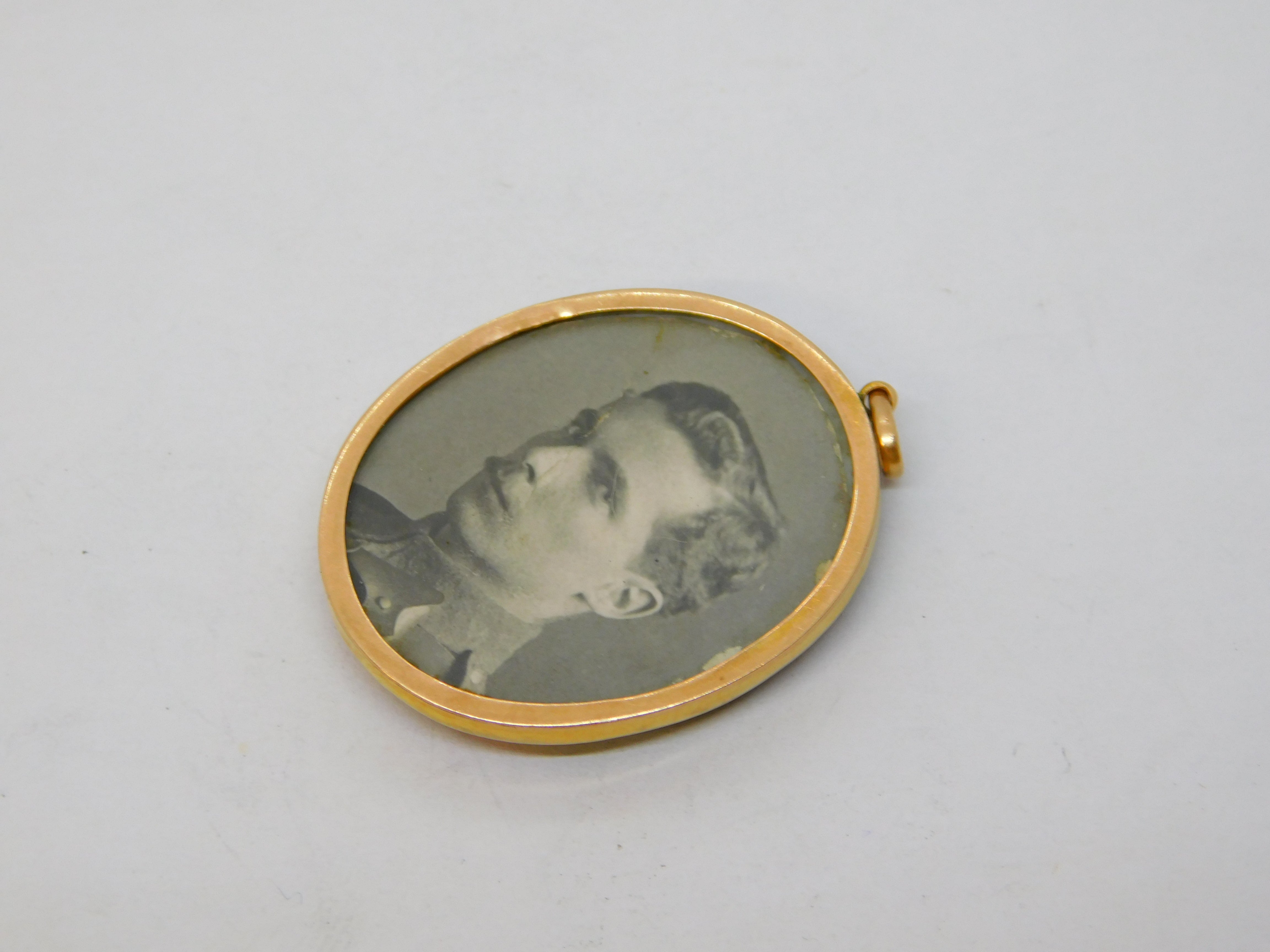 Victorian 9ct Gold Mounted Porcelain Portrait Mourning Locket Pendant Antique