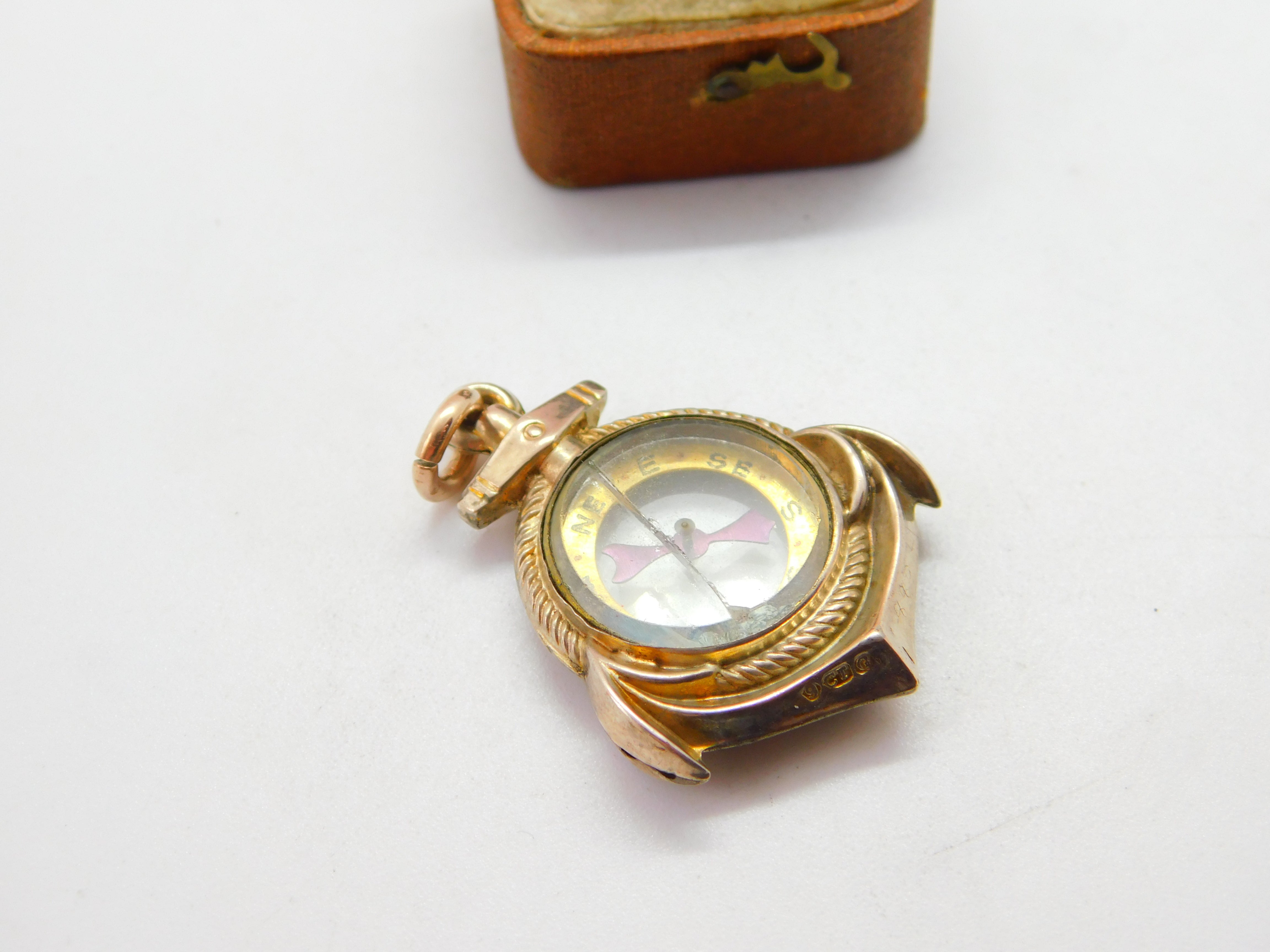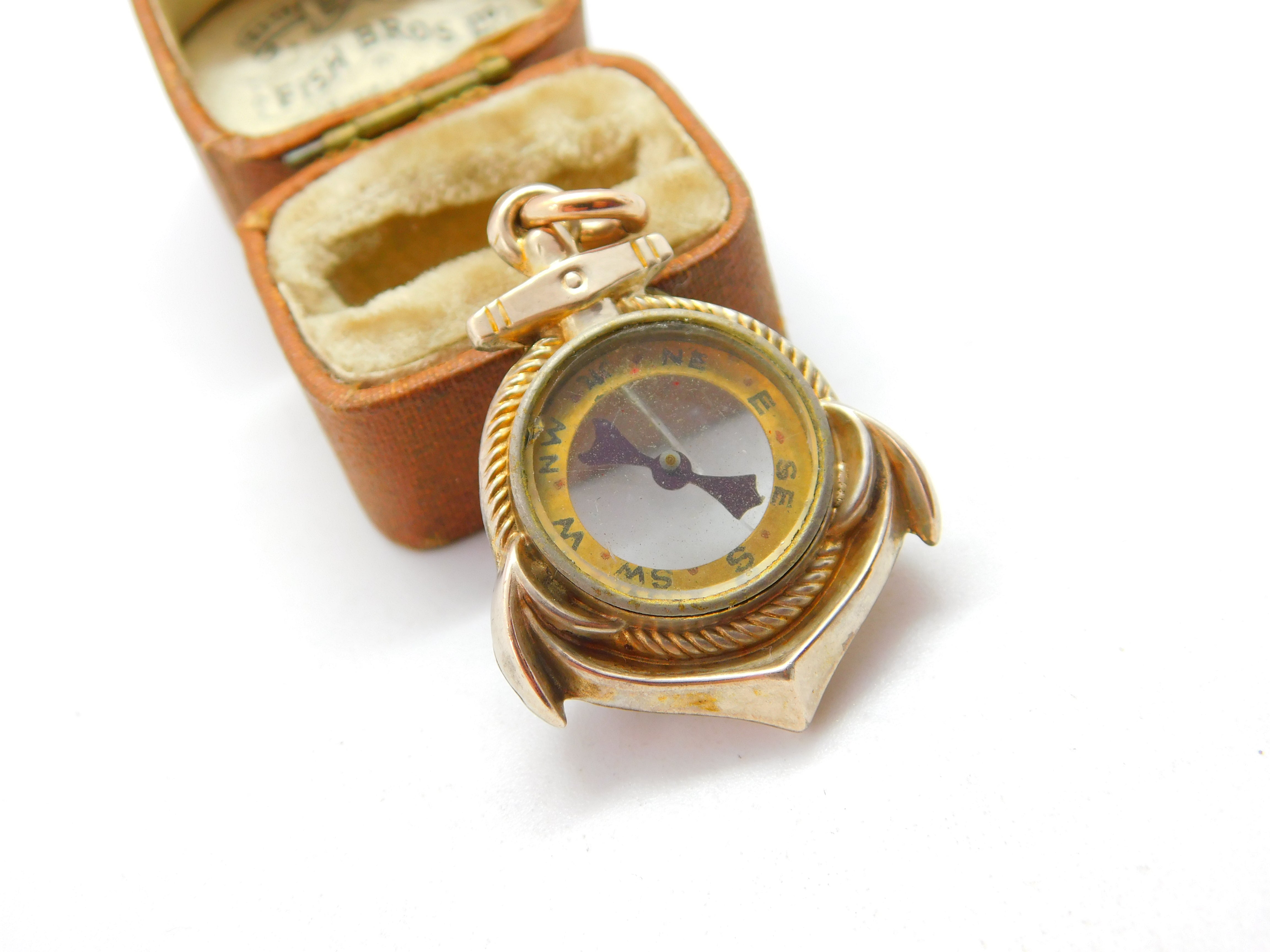 Victorian 9ct Gold Naval Anchor of Hope Compass Fob Pendant c1890 Antique AF