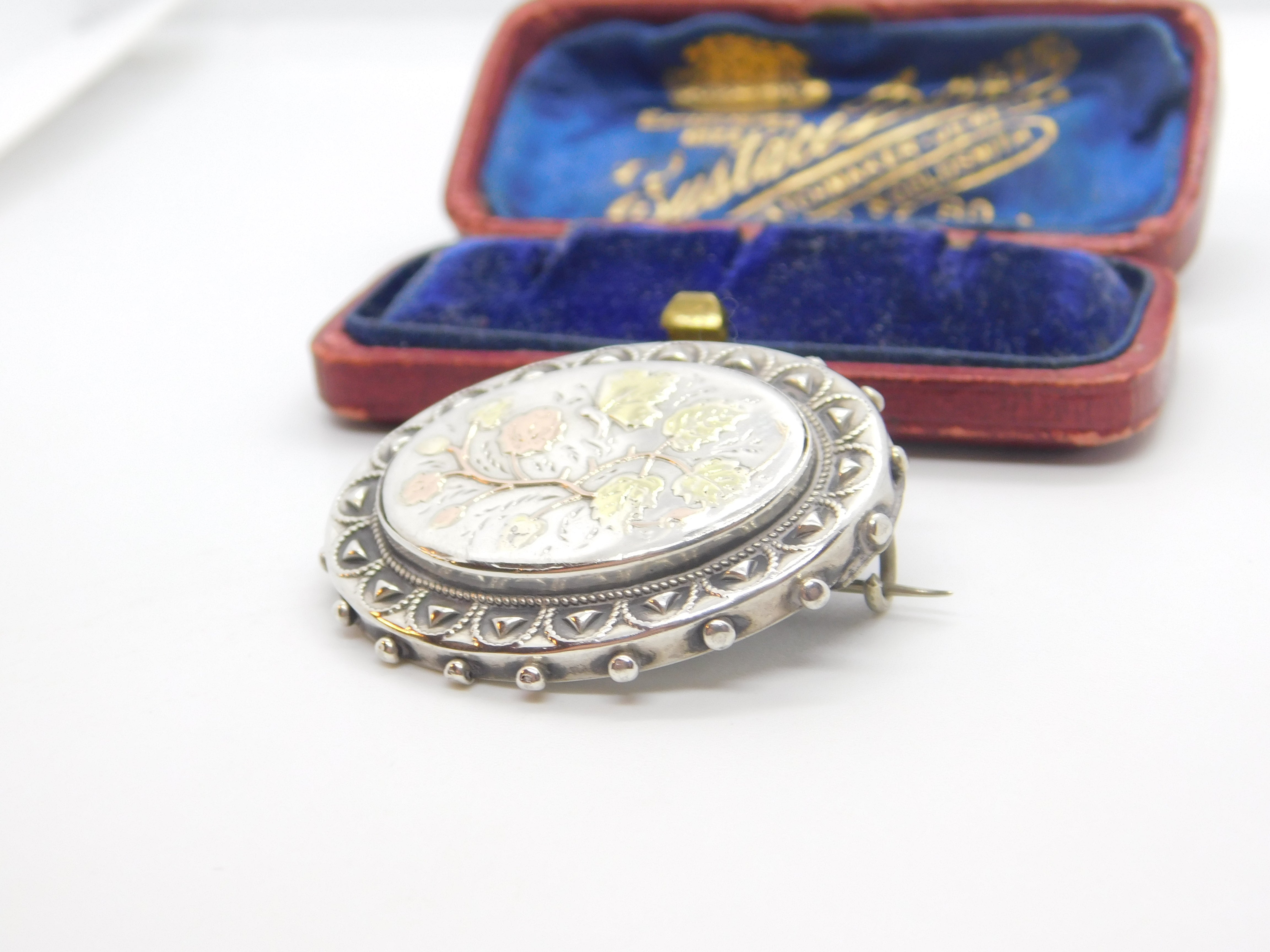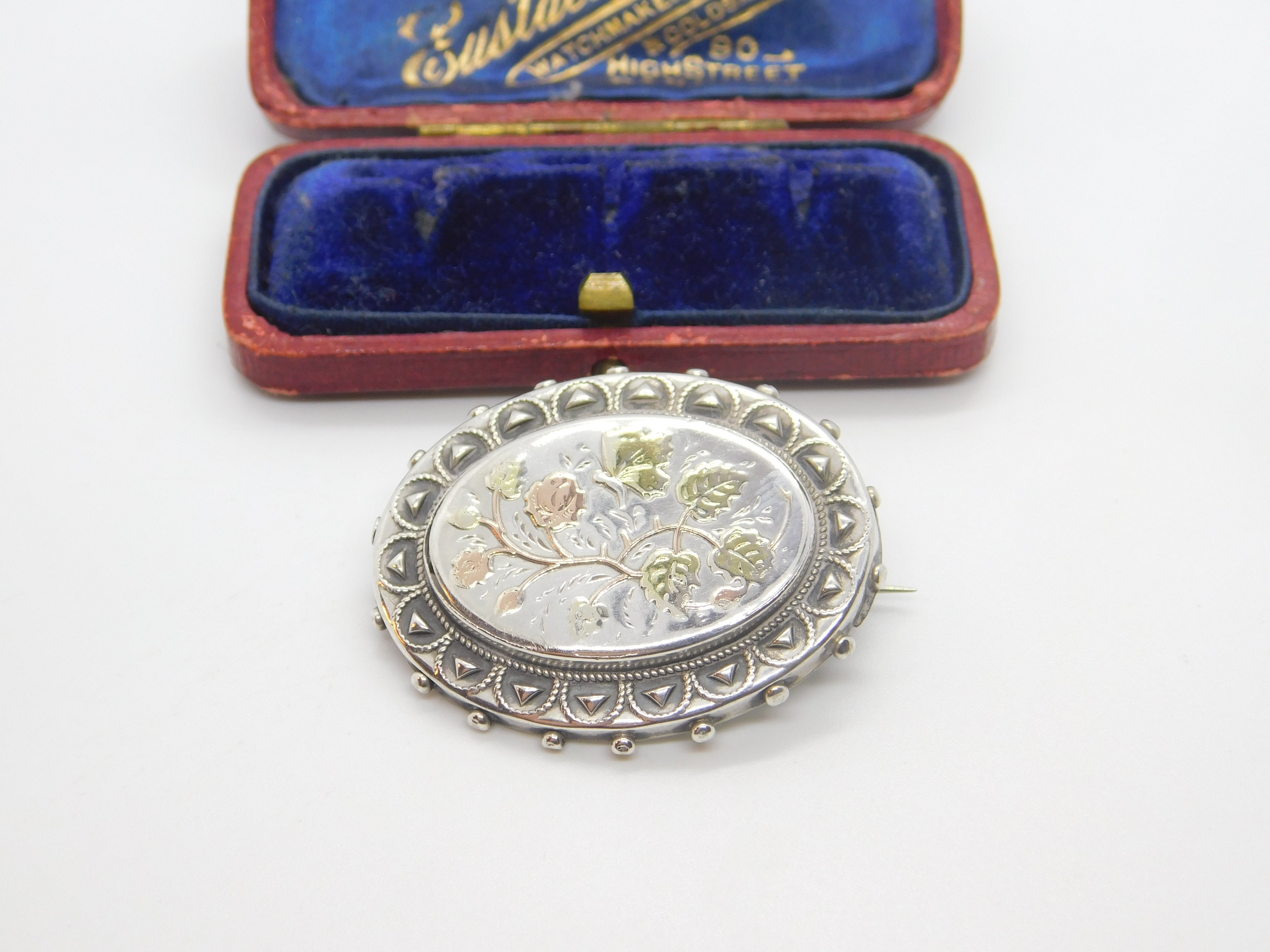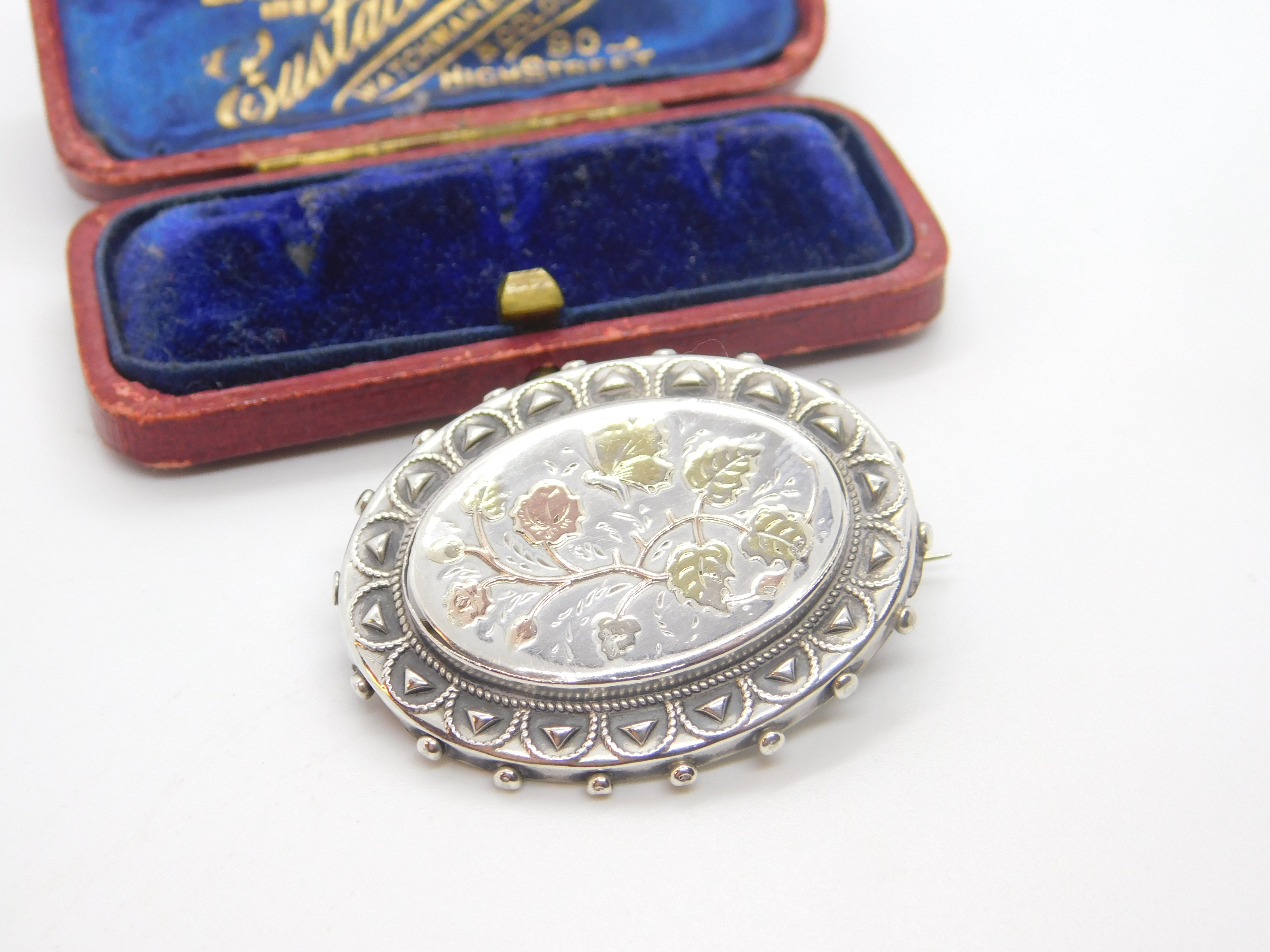 Victorian 9ct Gold on Sterling Silver Floral Aesthetic Brooch Antique c1880