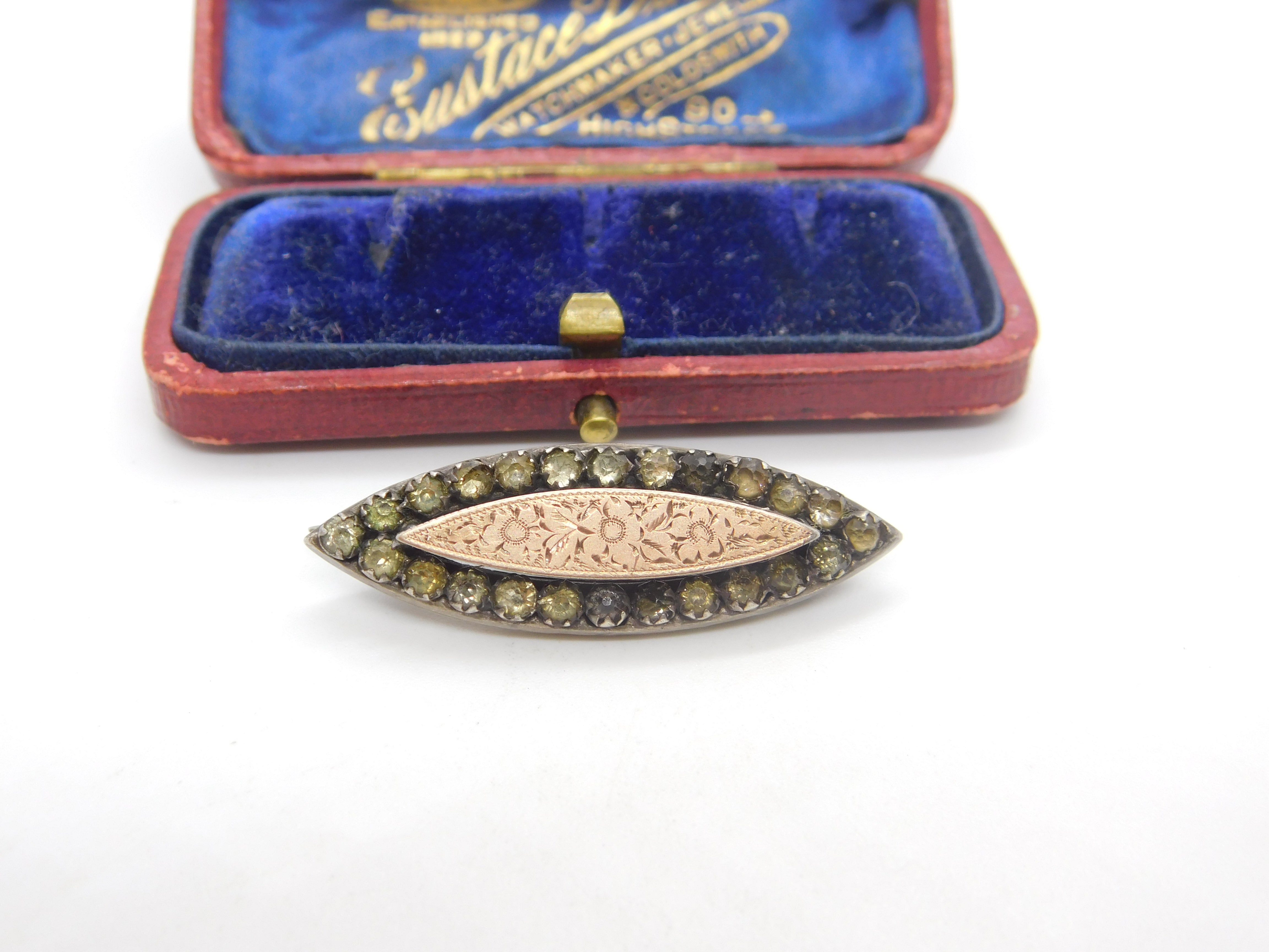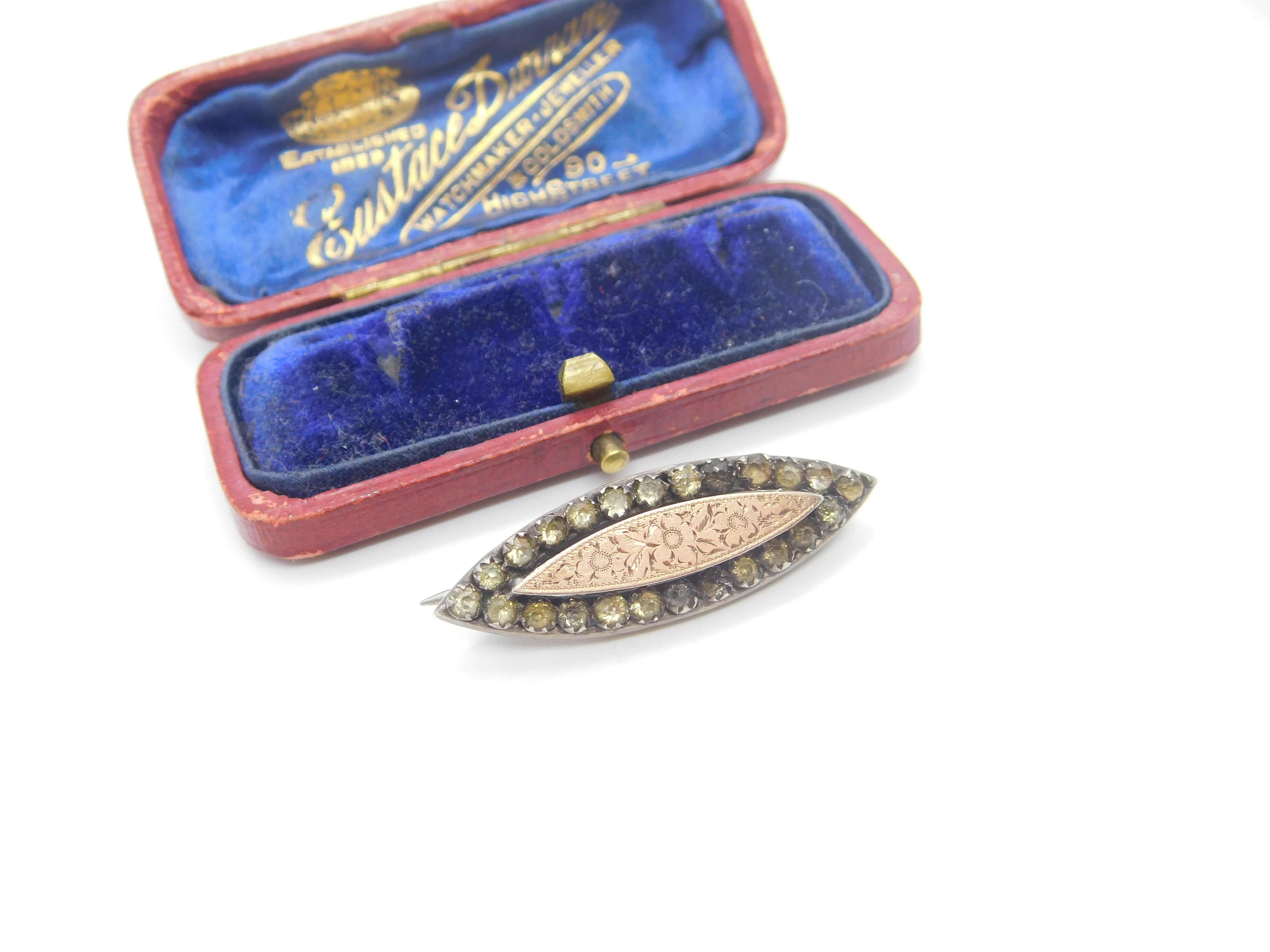 Victorian 9ct Gold, Paste & Sterling Silver Floral Brooch 1896 Chester