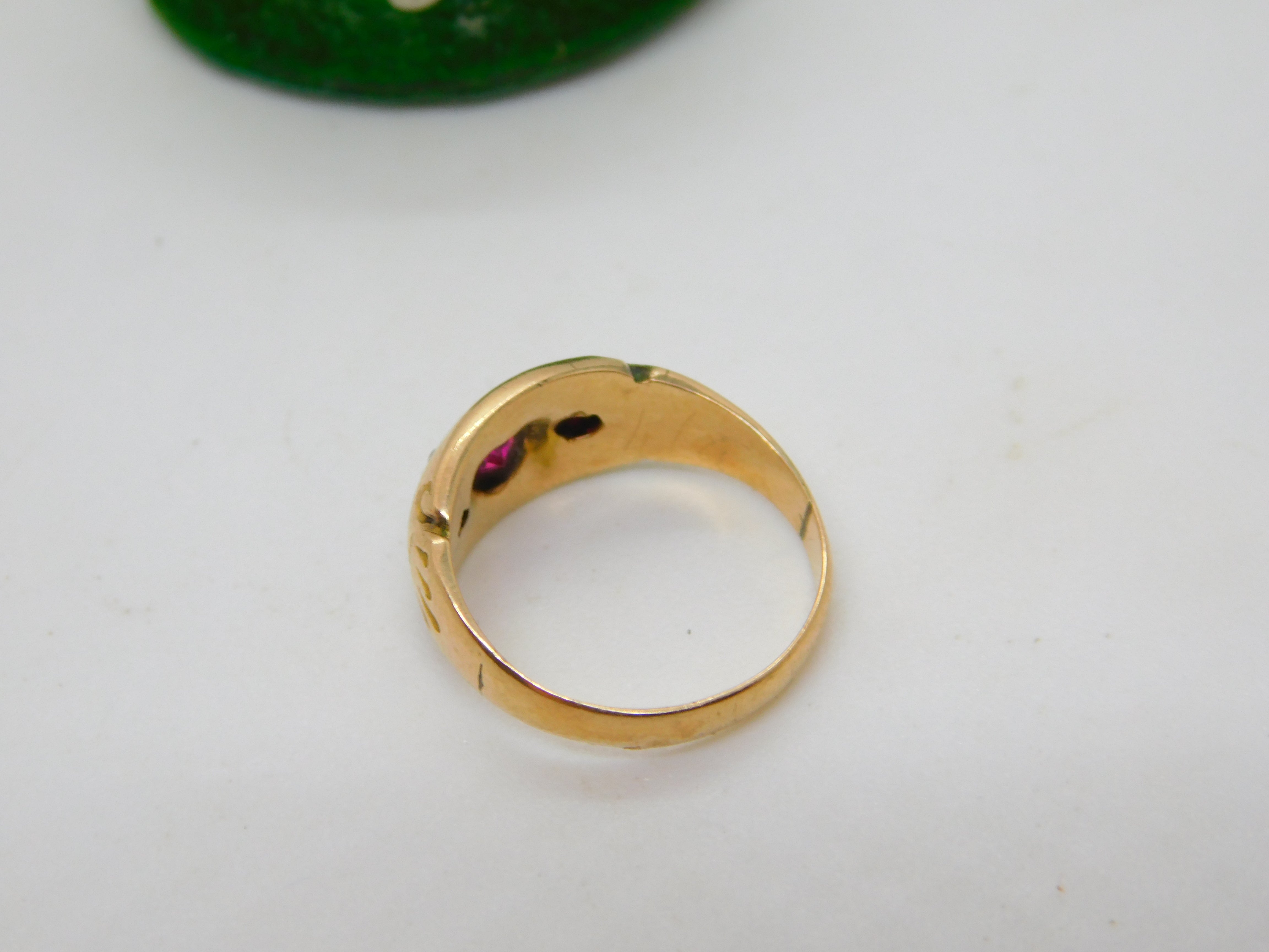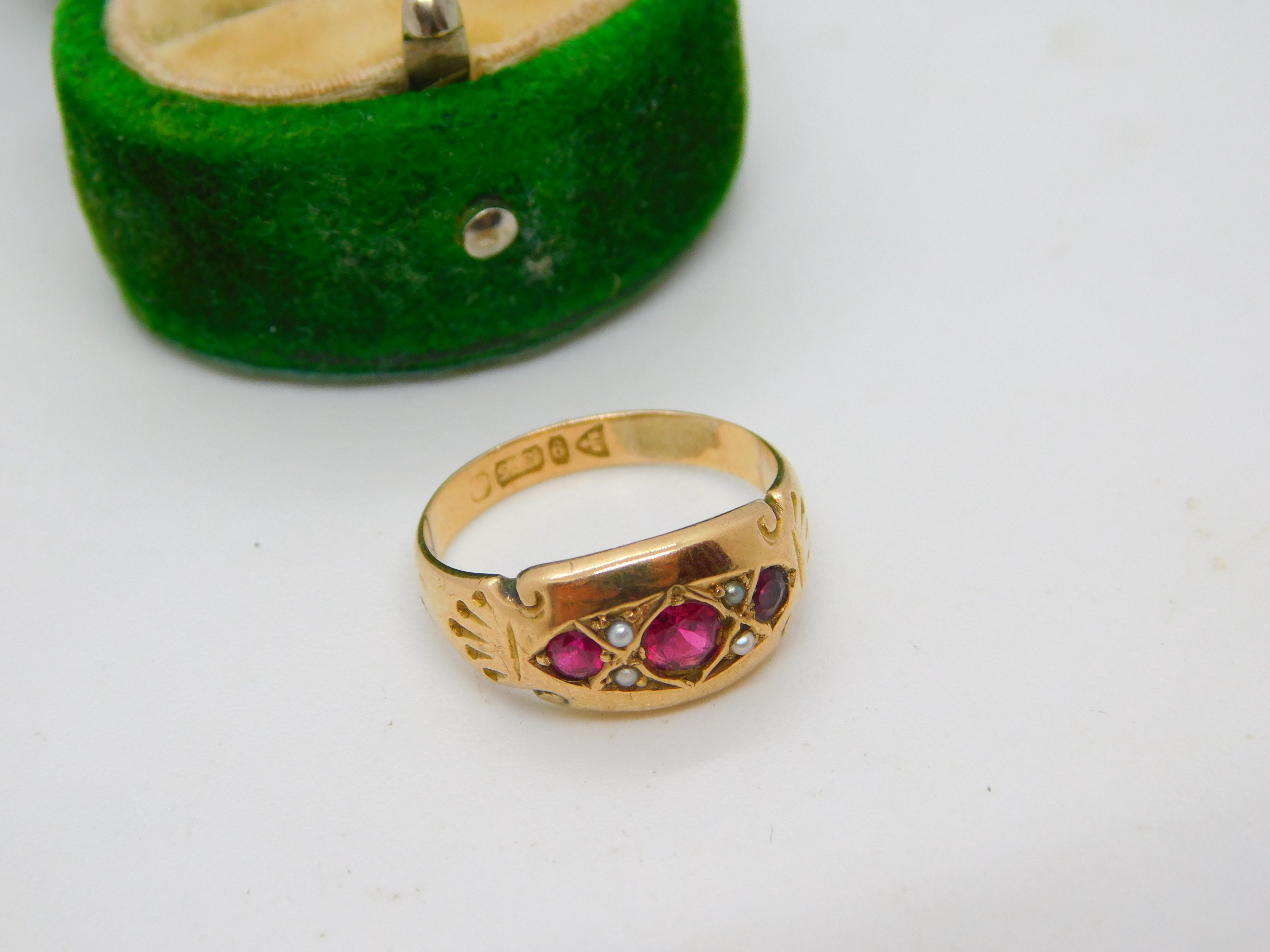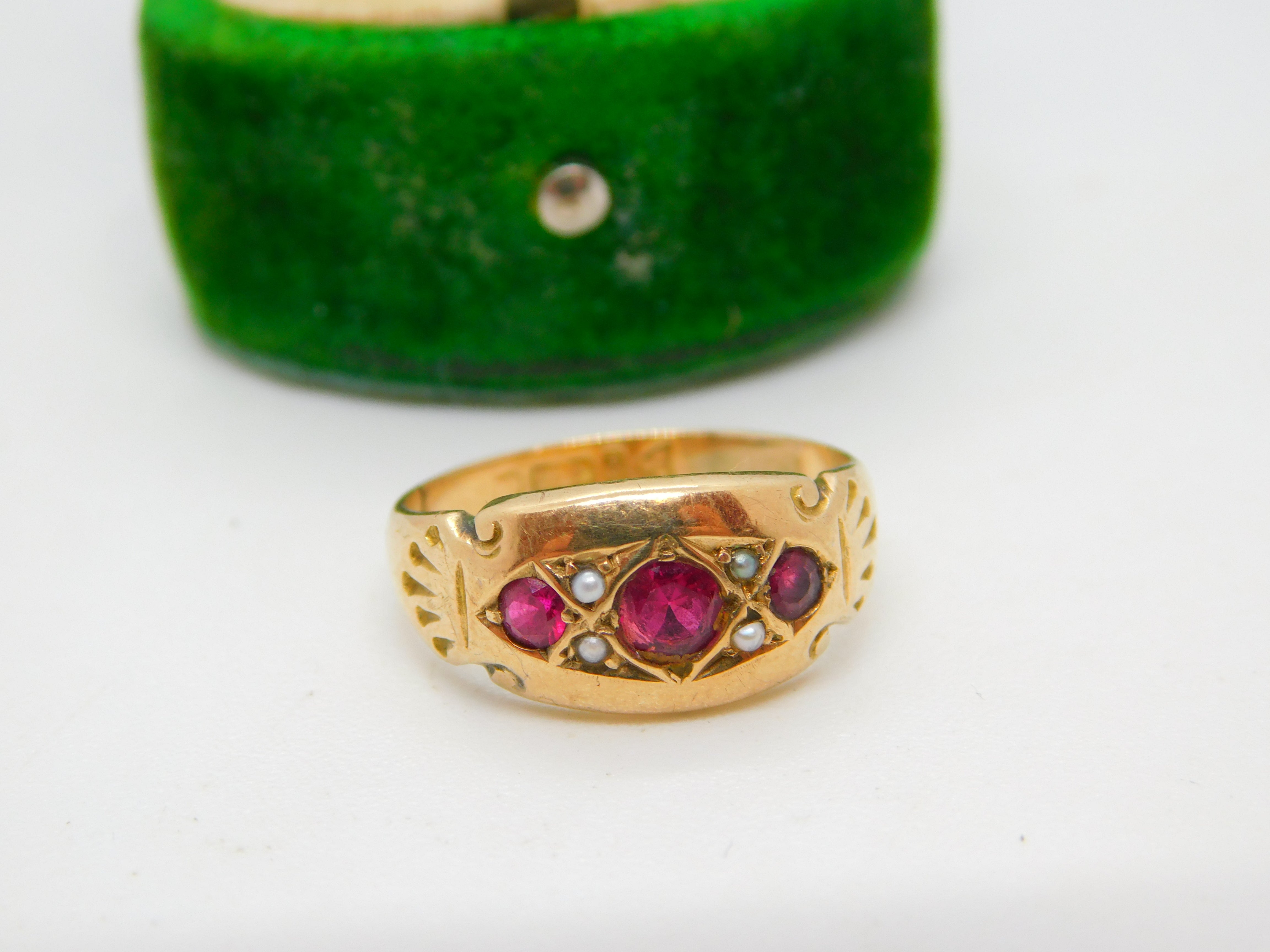 Victorian 9ct Gold, Ruby & Seed Pearl Boat Ring Antique c1890 Chester