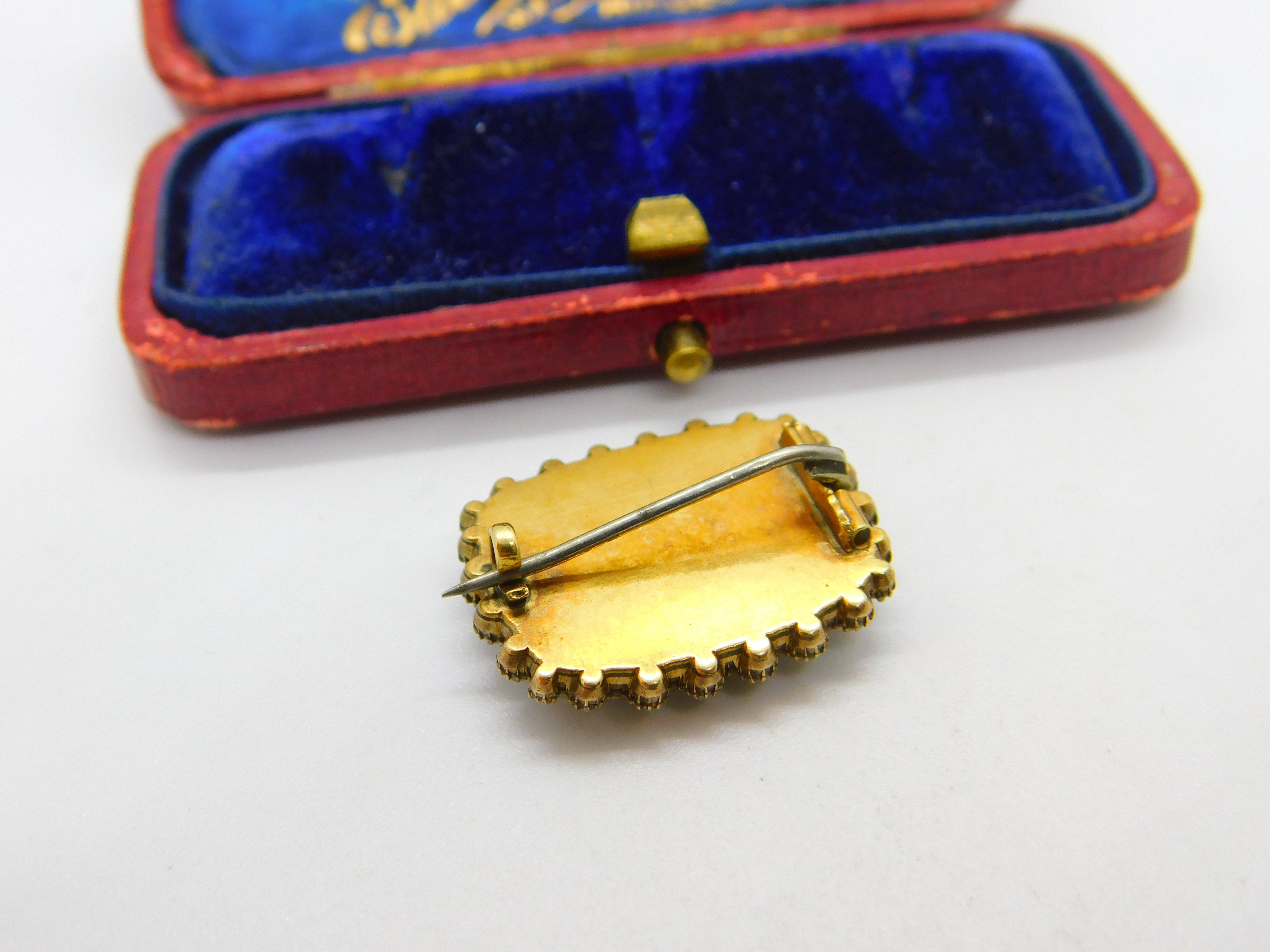 Victorian 9ct Gold, Seed Pearl & Hair Mourning Brooch Antique c1850