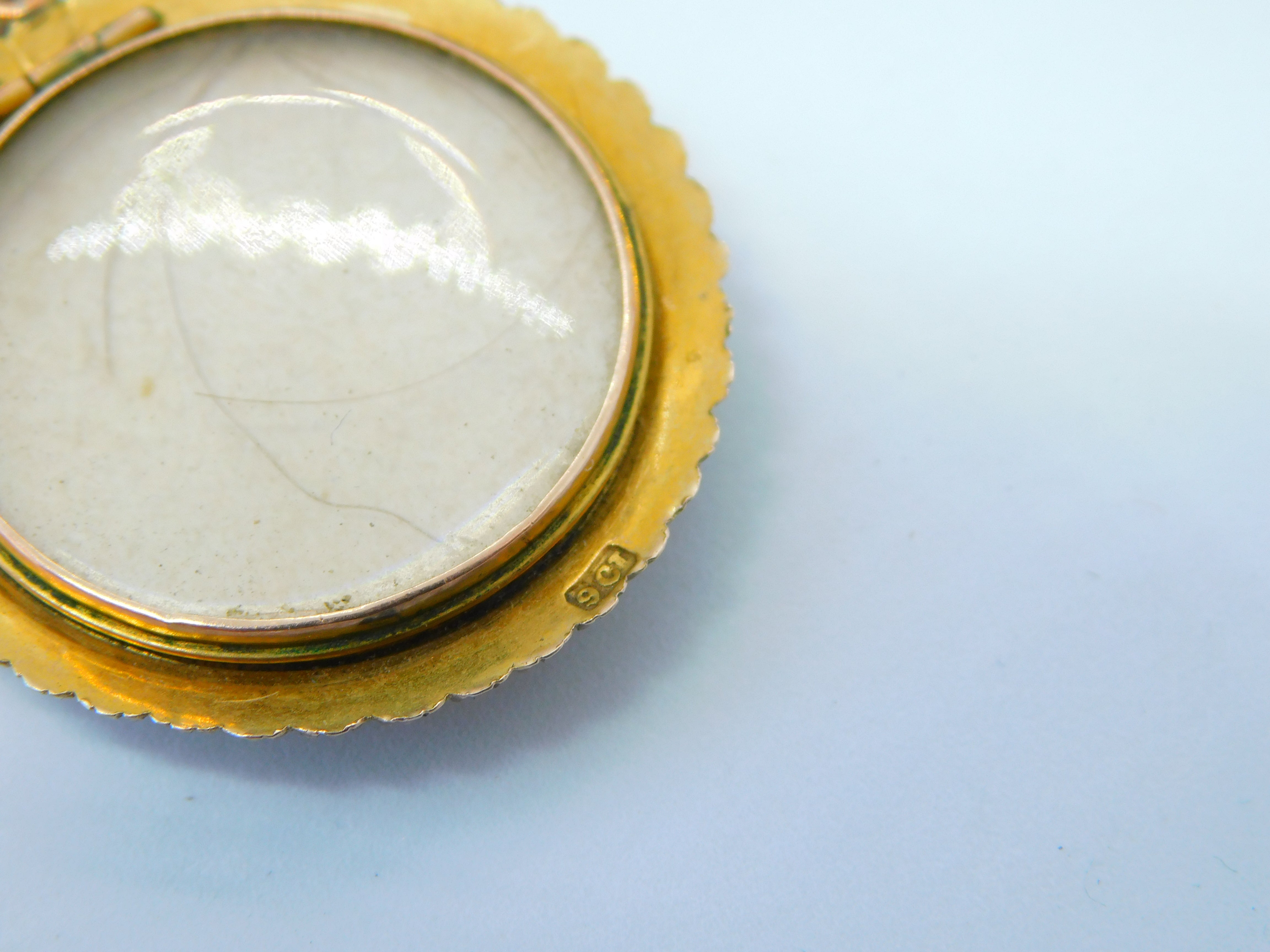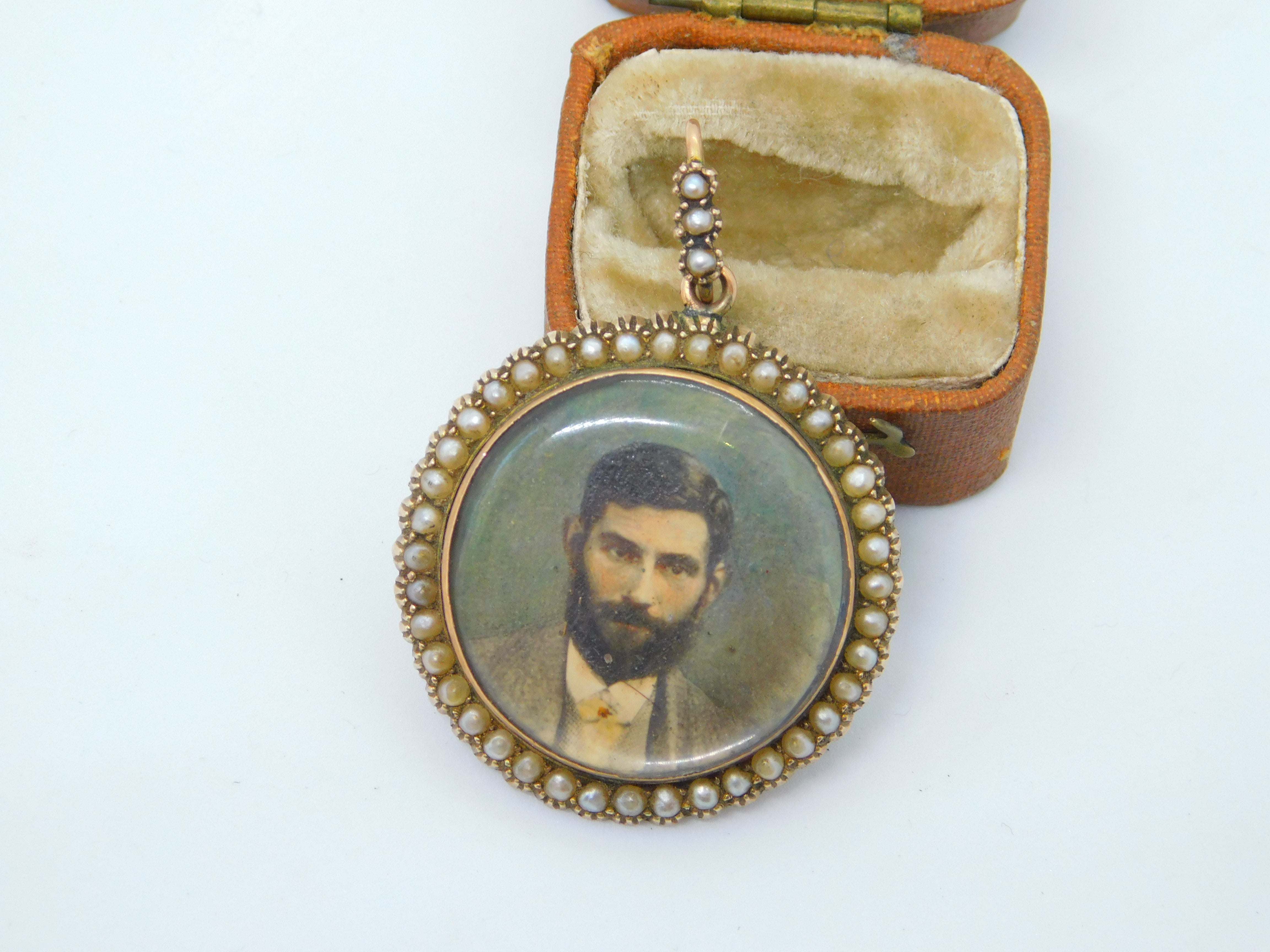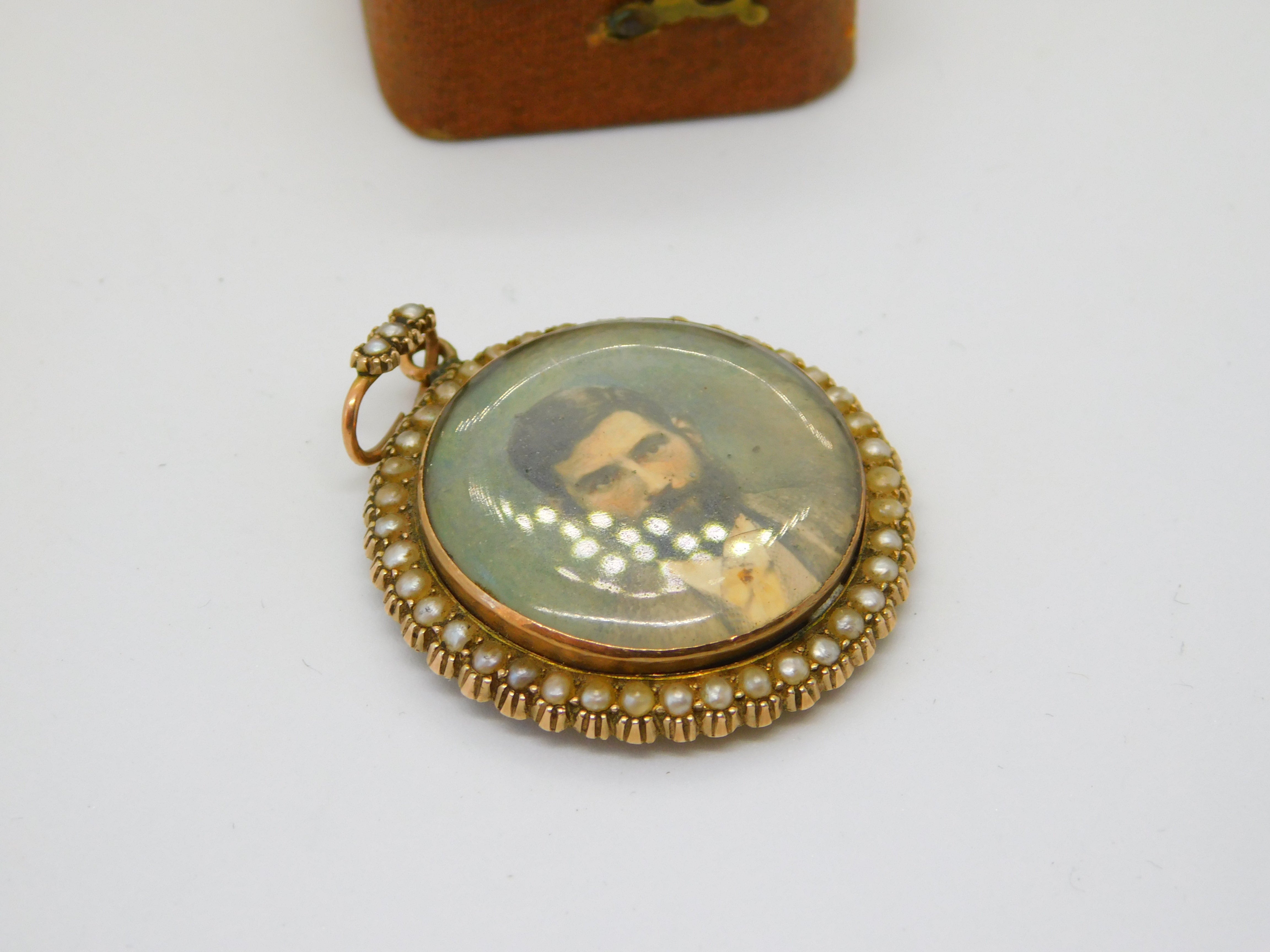 Victorian 9ct Gold Seed Pearl Watercolour Miniature Mourning Pendant Antique