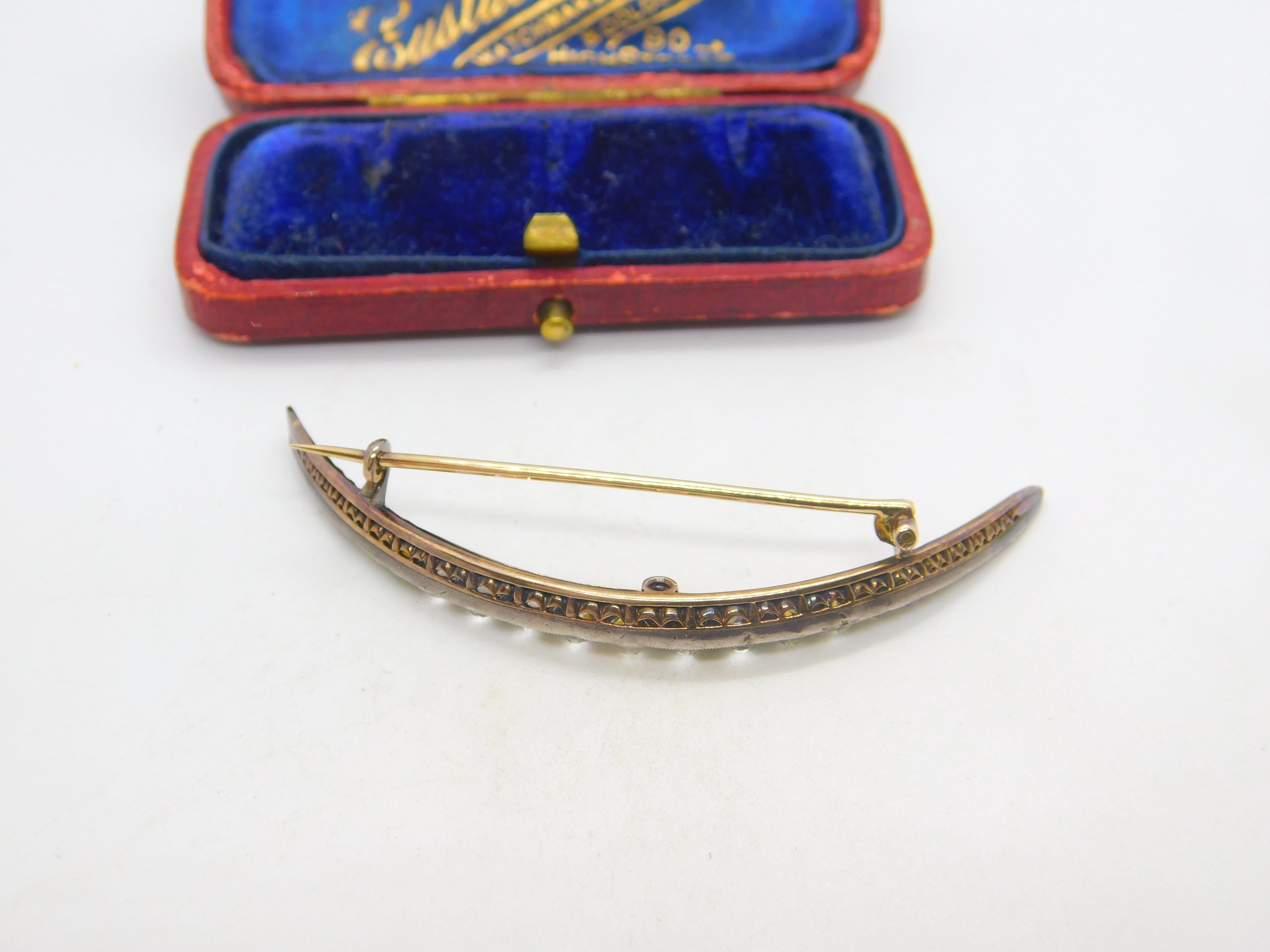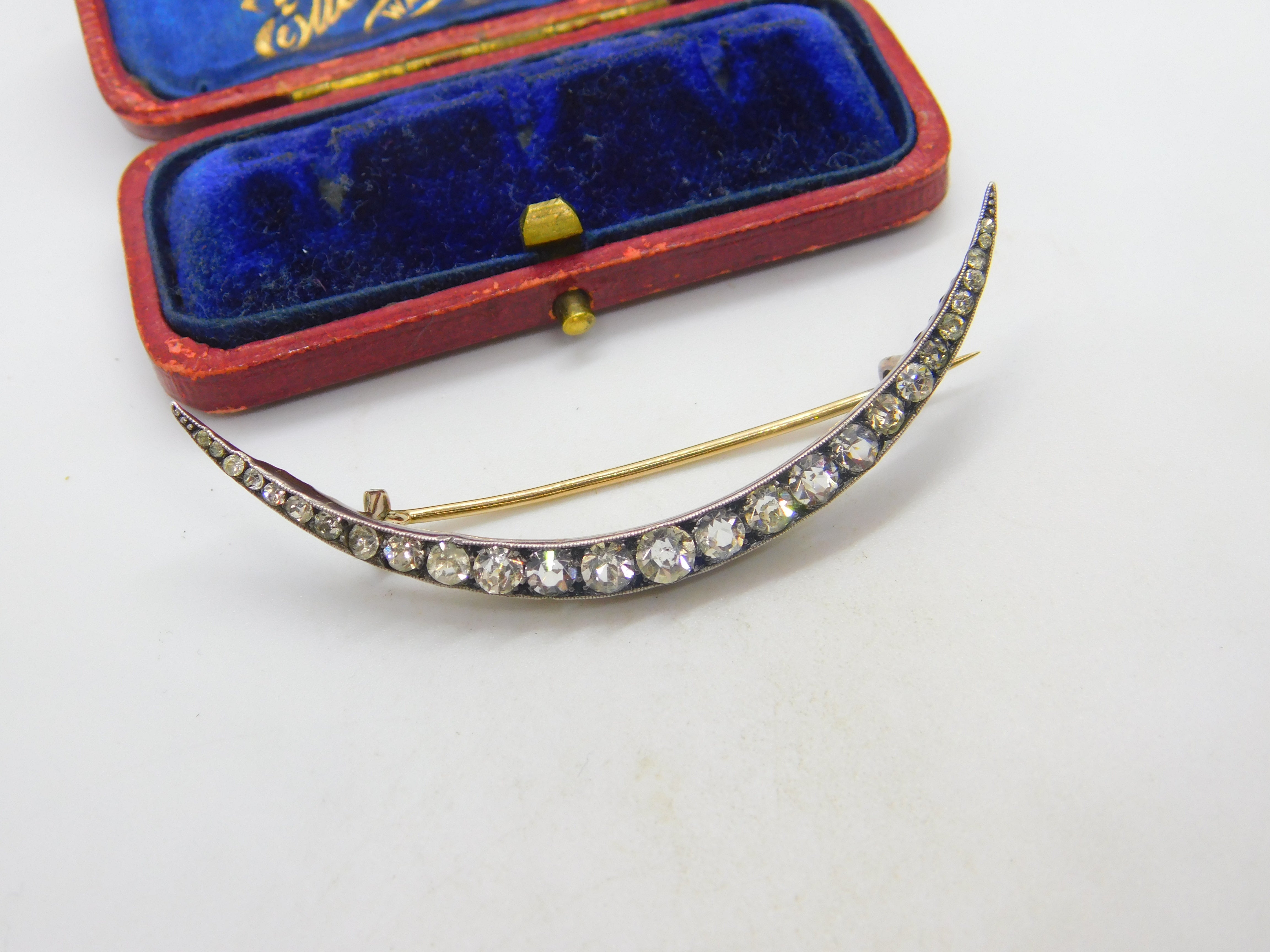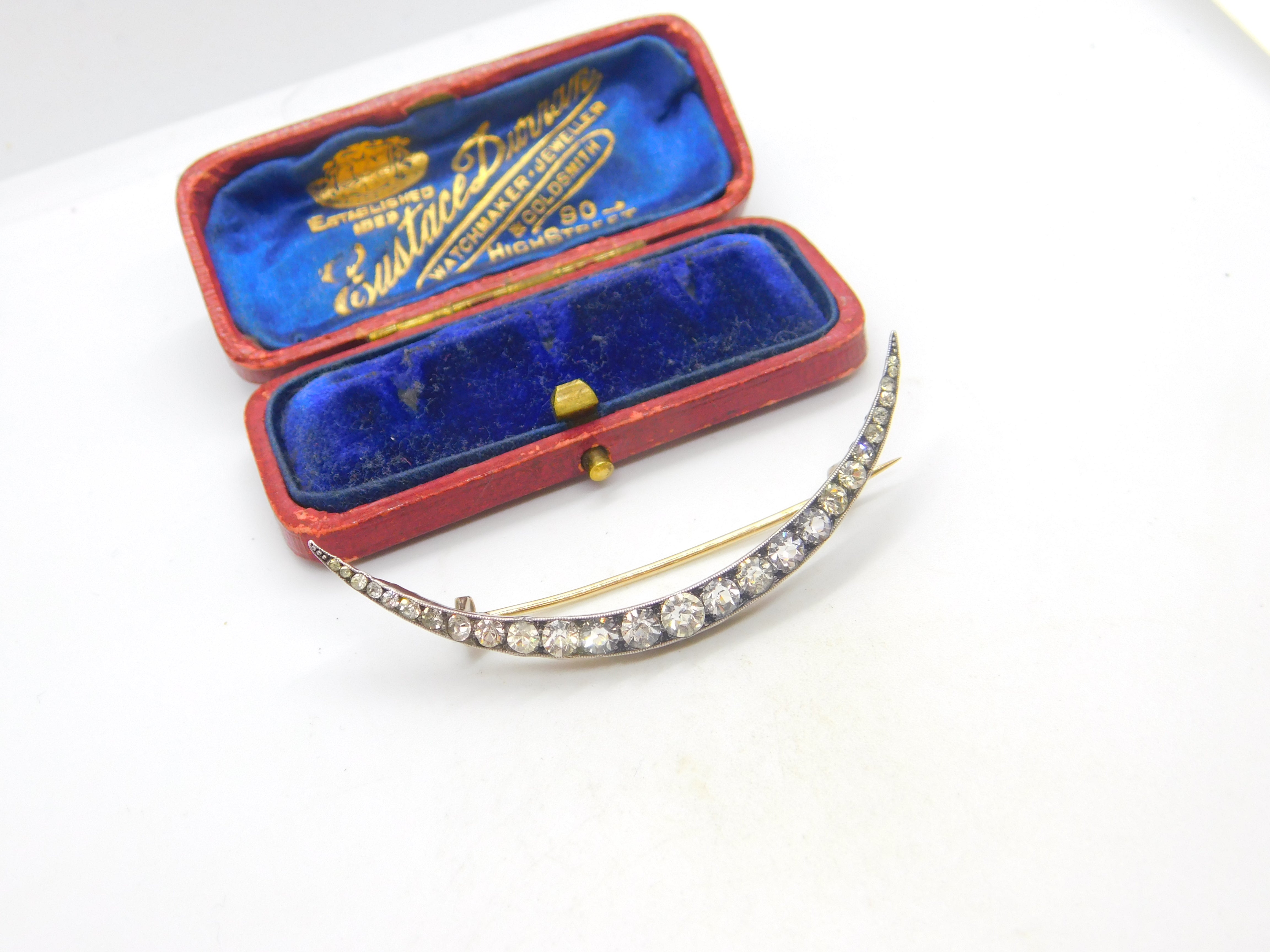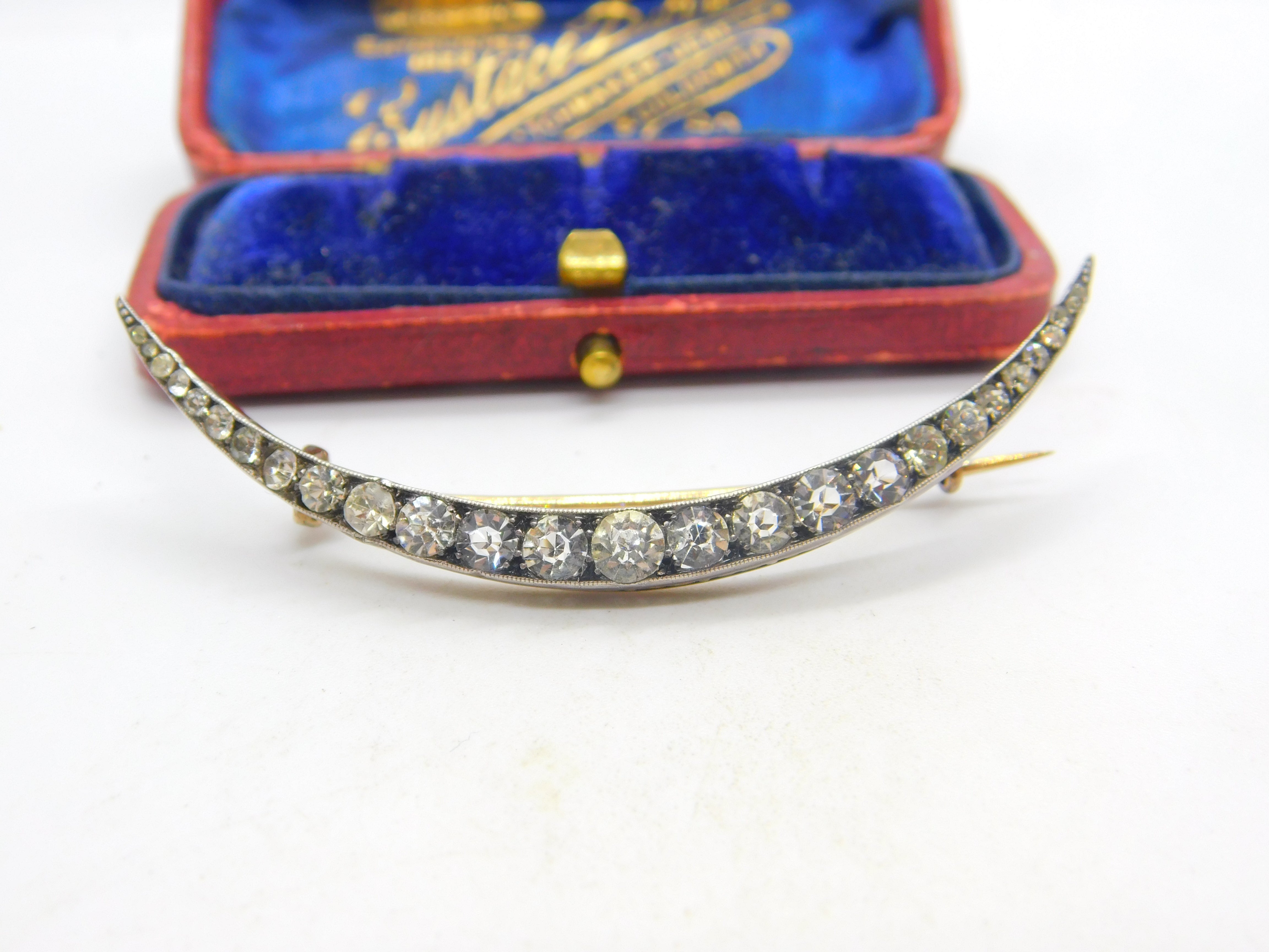 Victorian 9ct Gold & Silver Set Paste Set Crescent Moon Brooch c1860 Antique