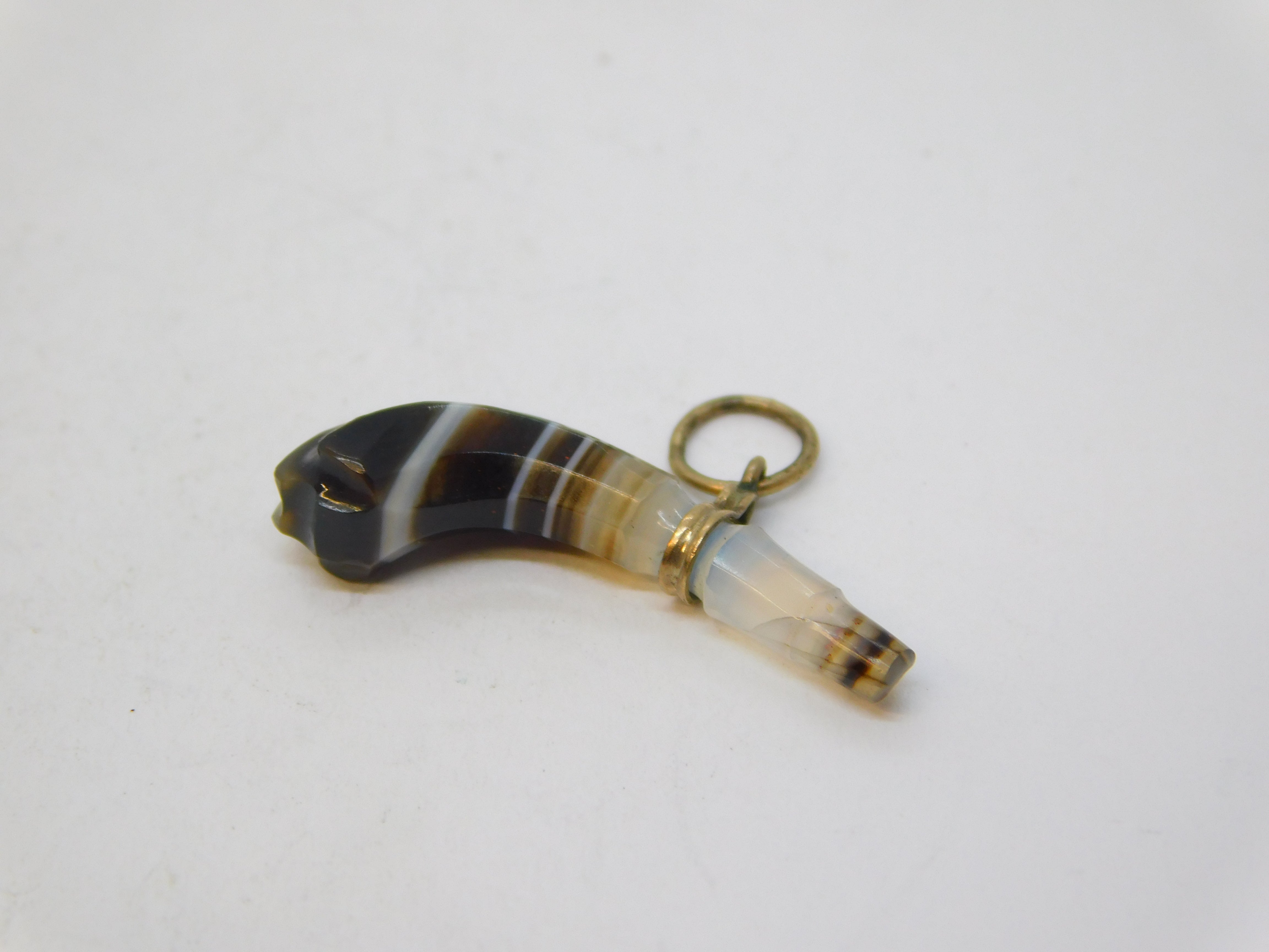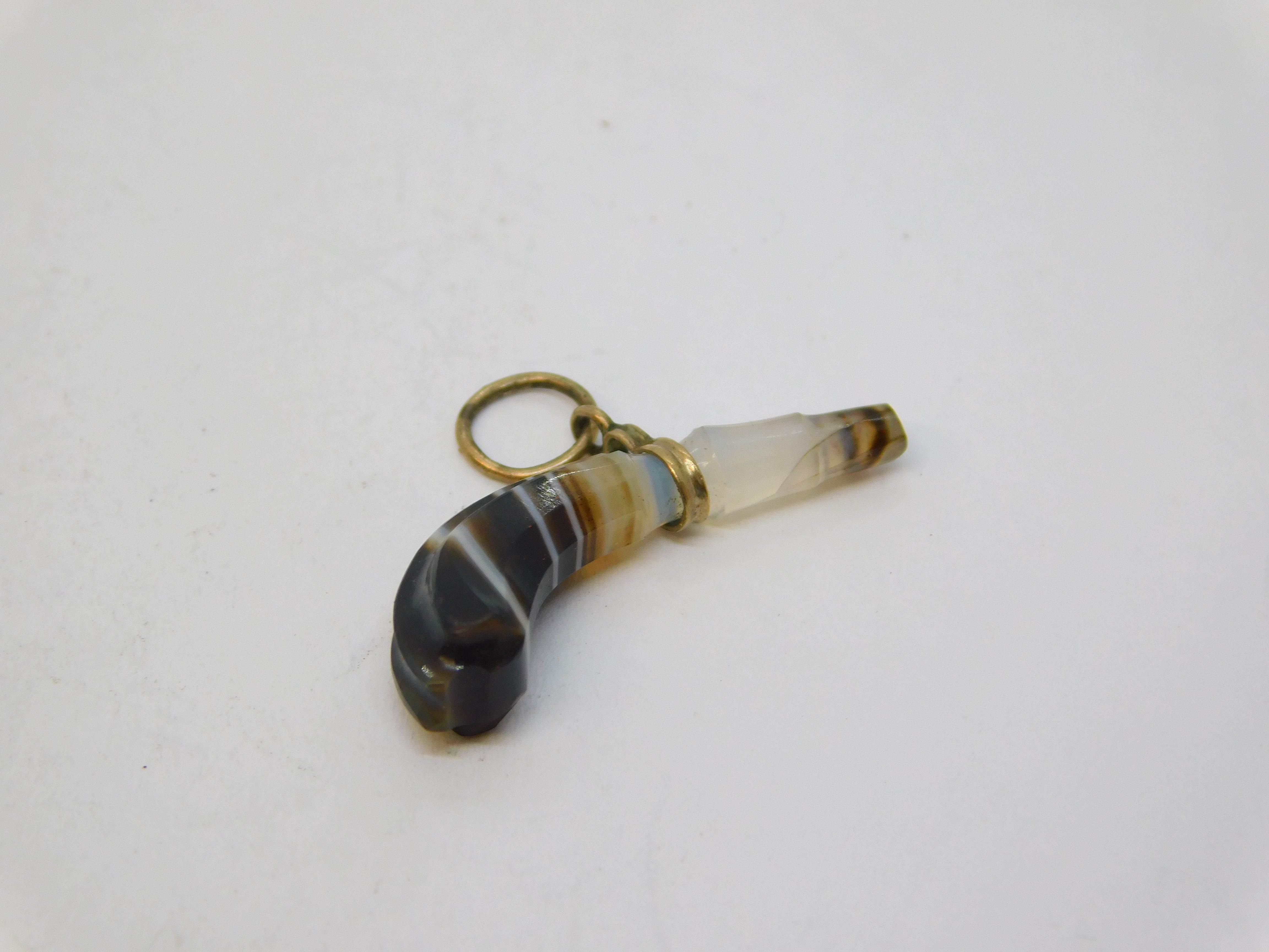 Victorian 9ct Gold Small Carved Banded Agate Pipe Charm Pendant Antique