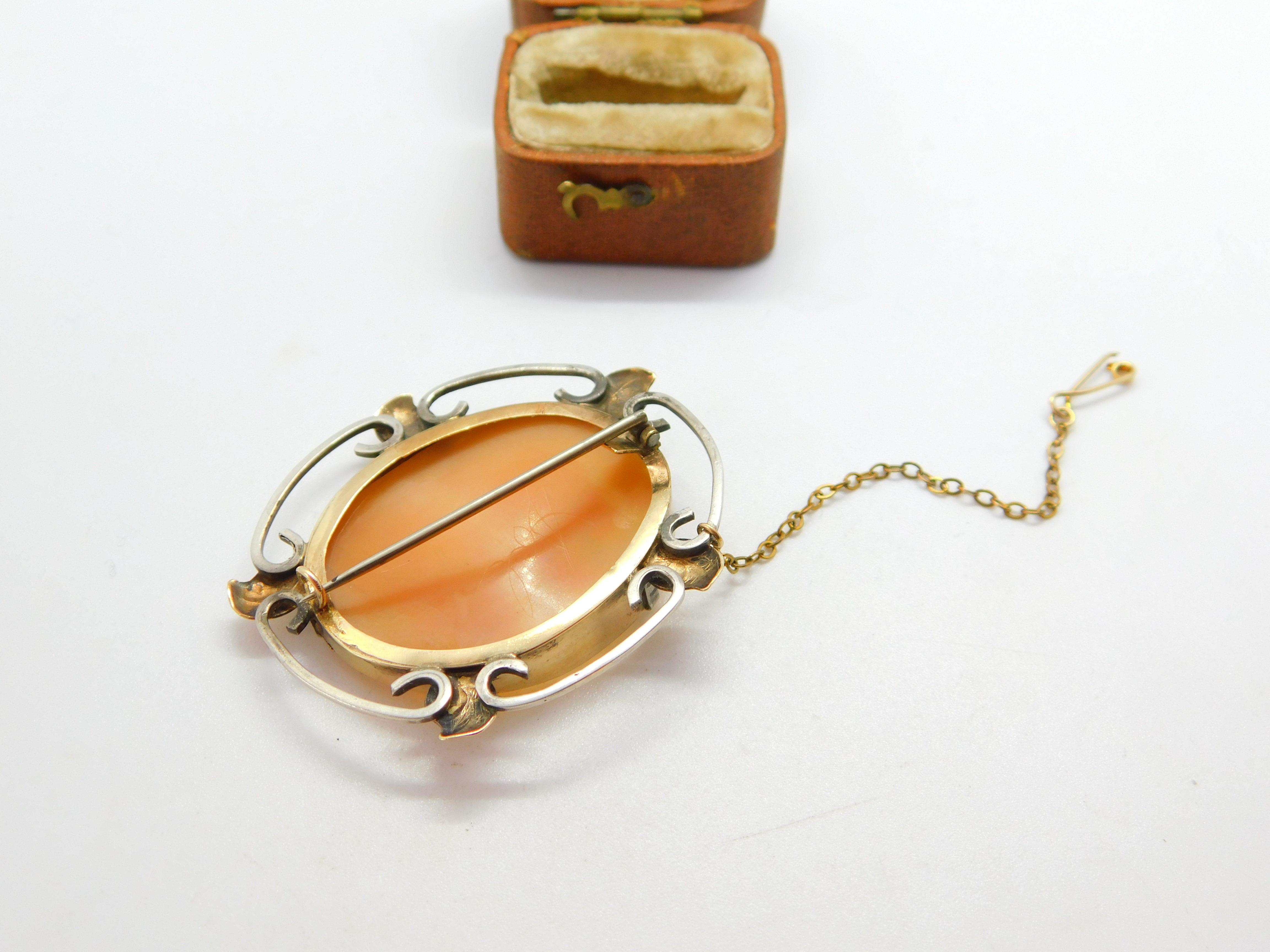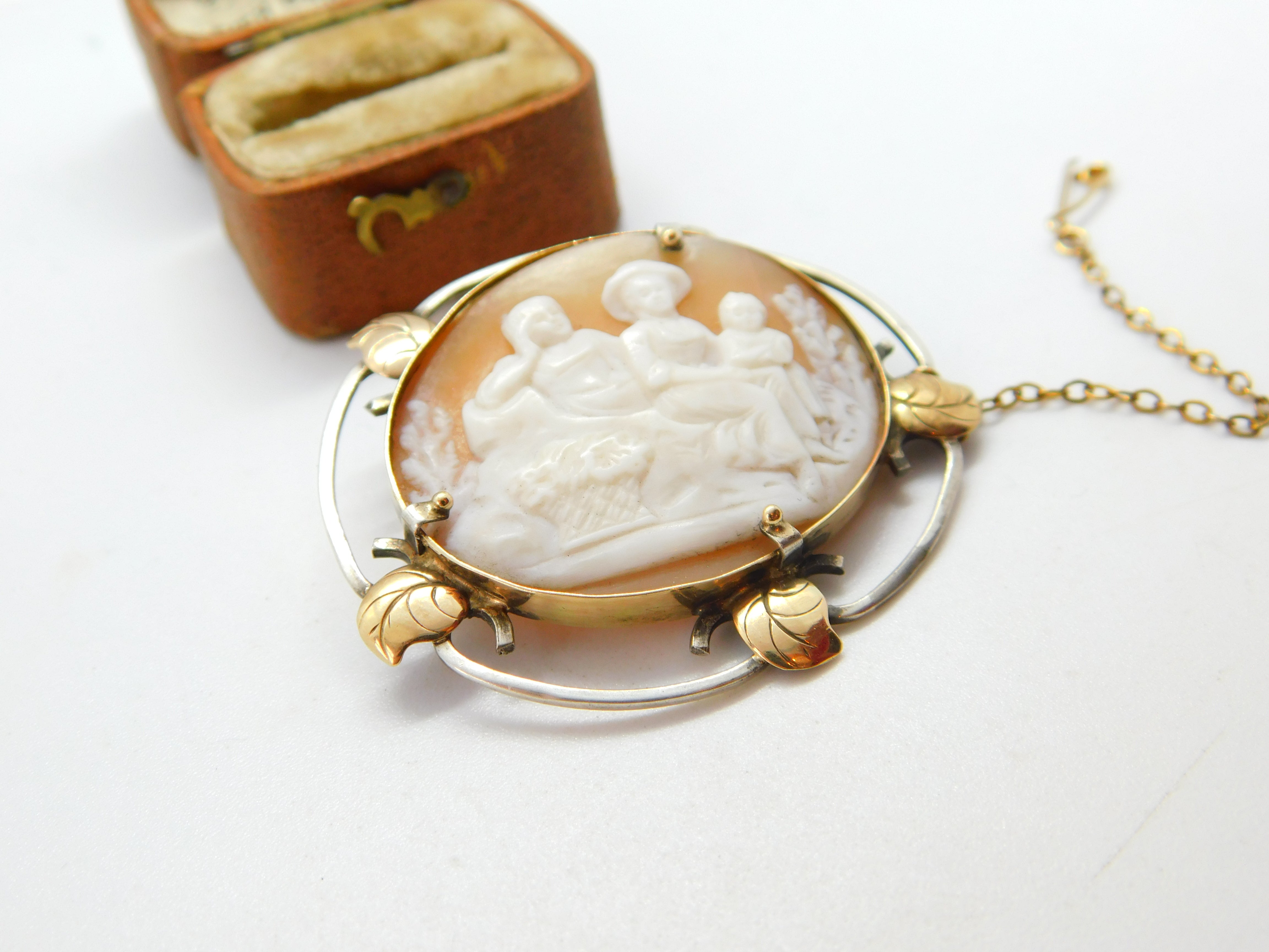 Victorian 9ct Gold & Sterling Silver Art Nouveau Cameo Brooch c1880 Antique